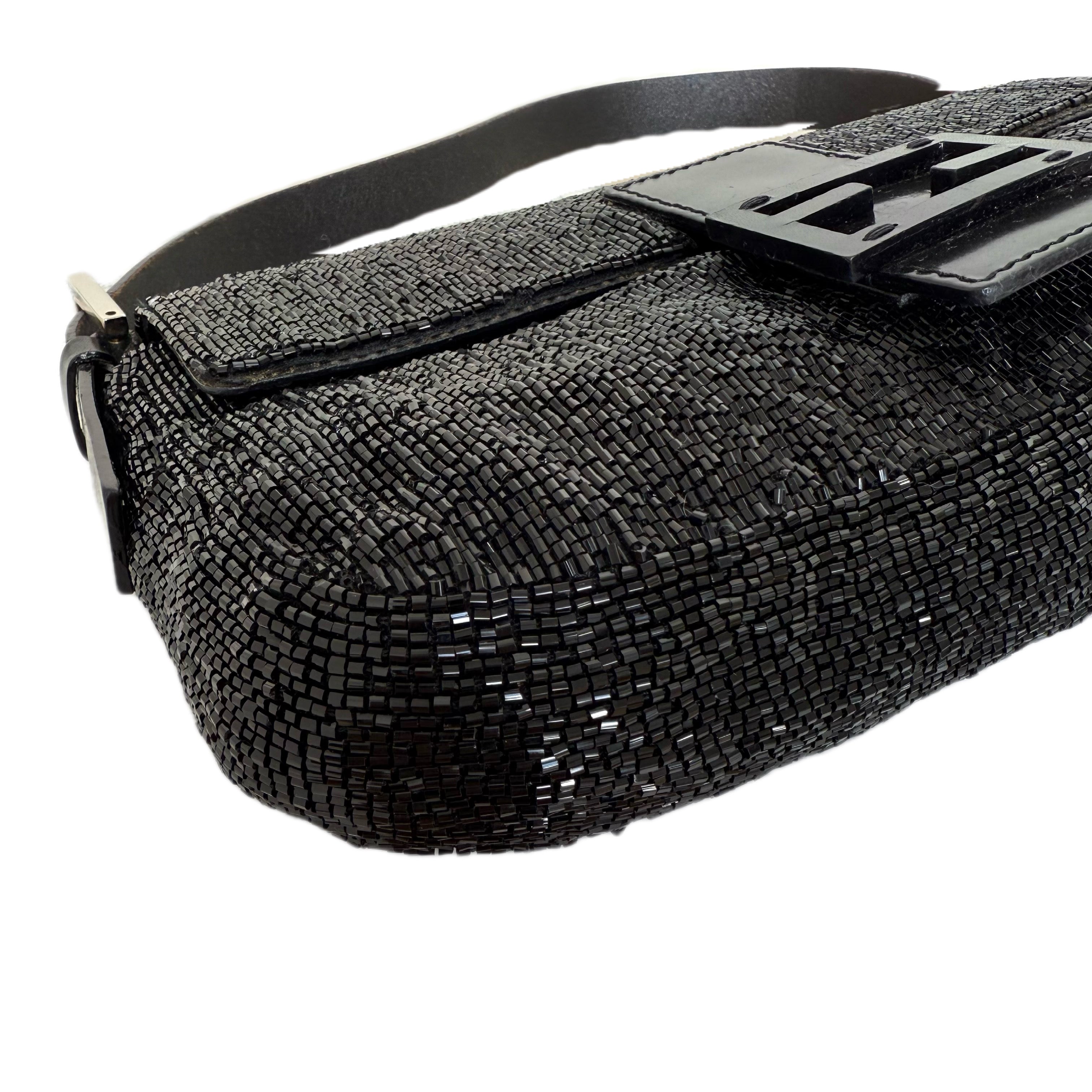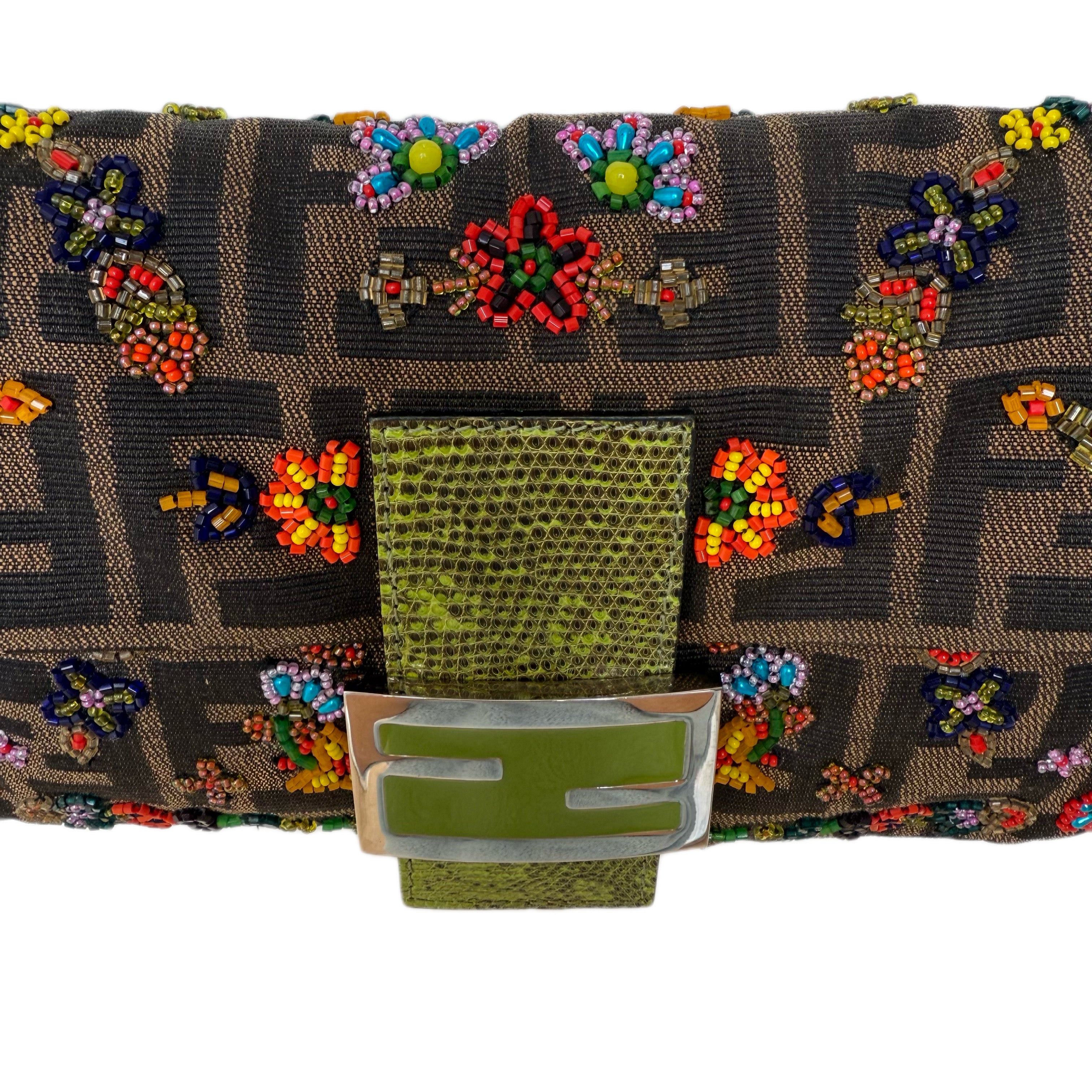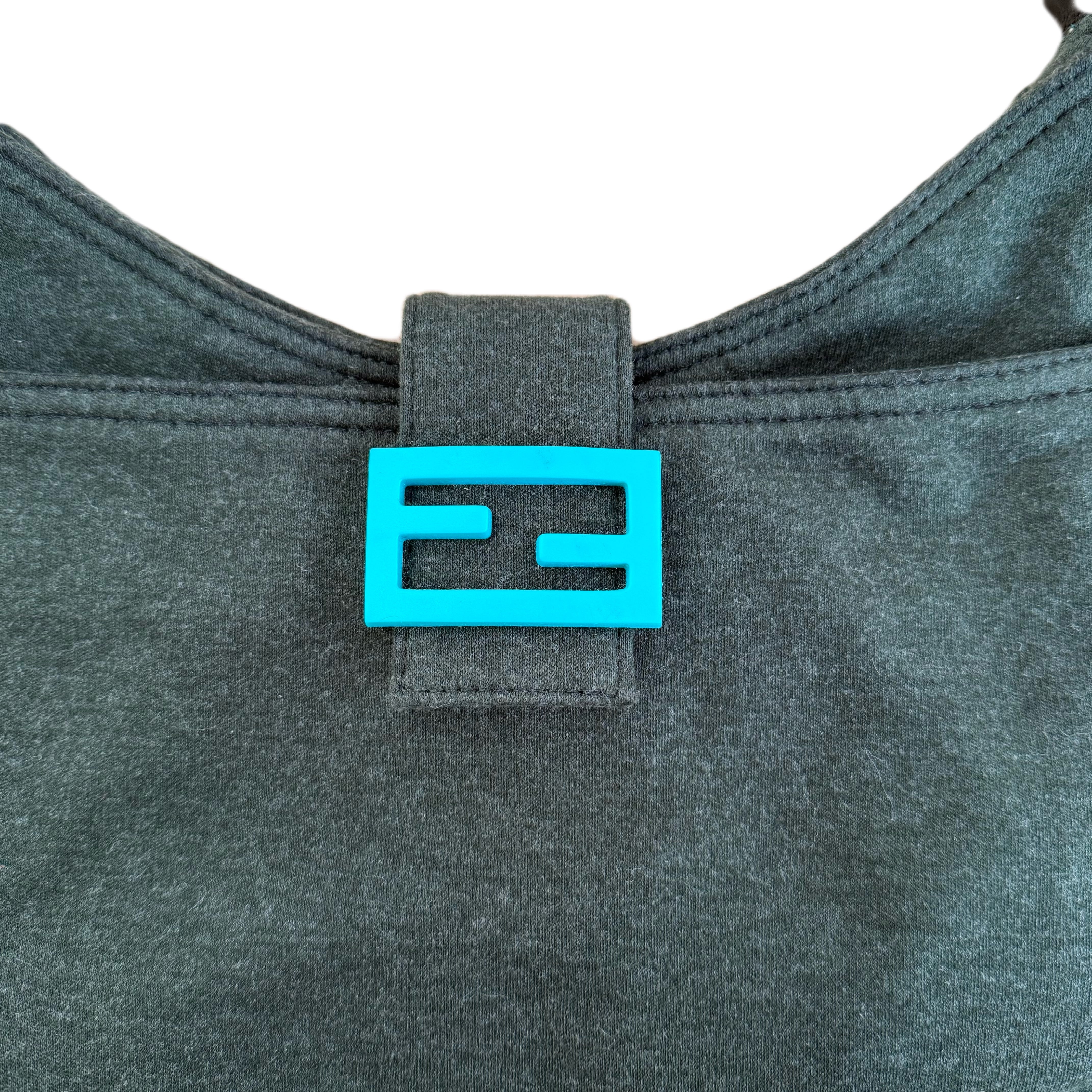 Fendi Jersey Double Flap Baguette in Dark Green with Turquoise Hardware