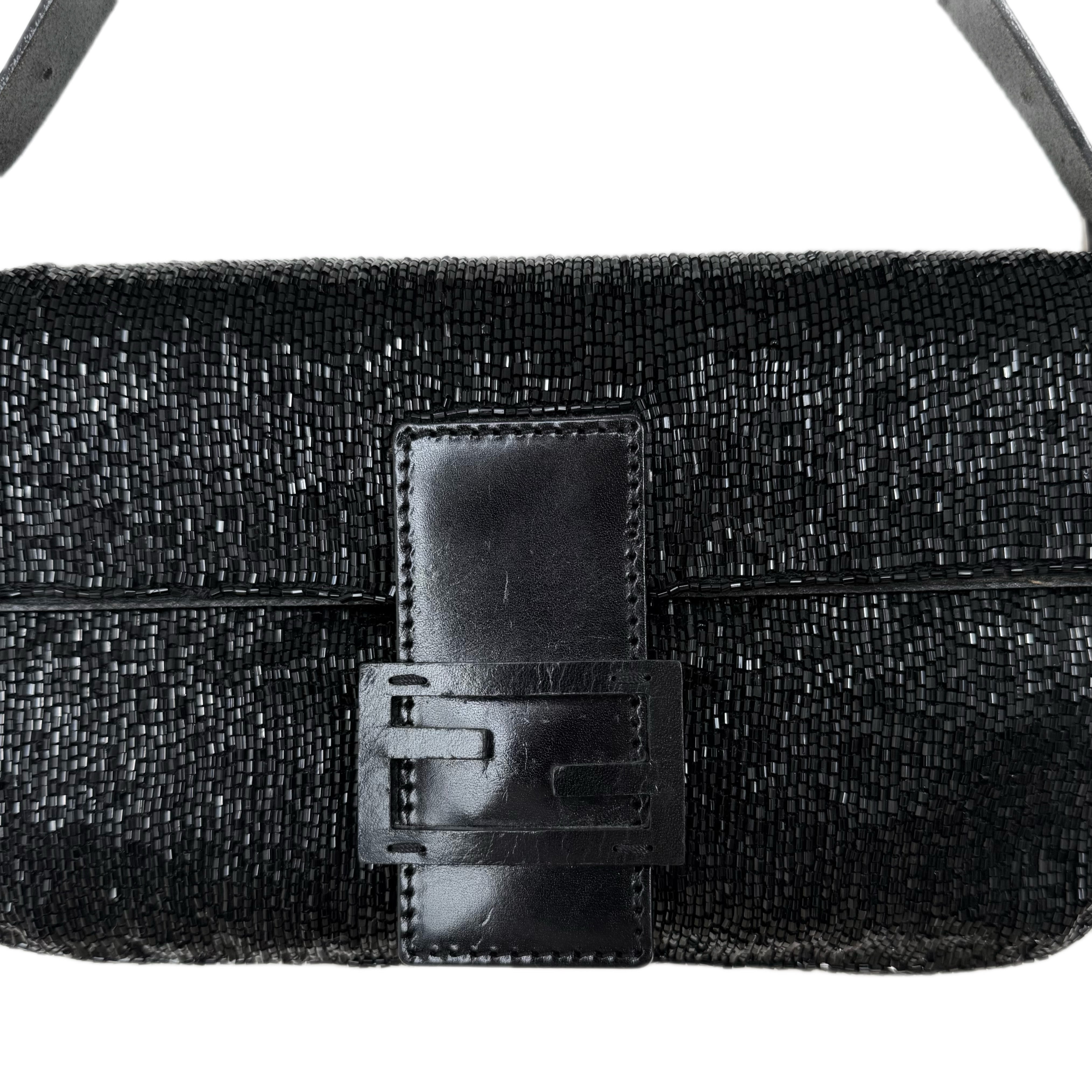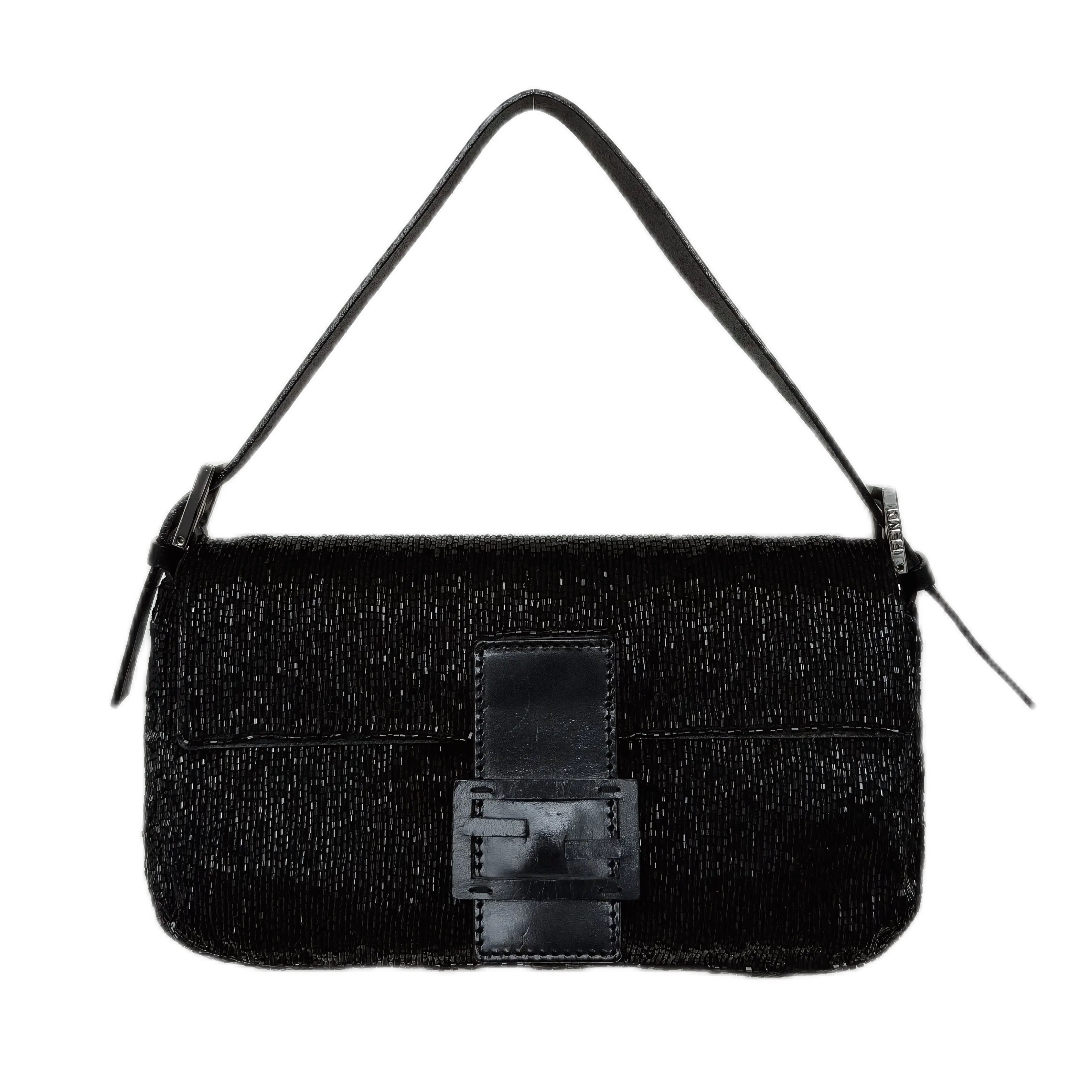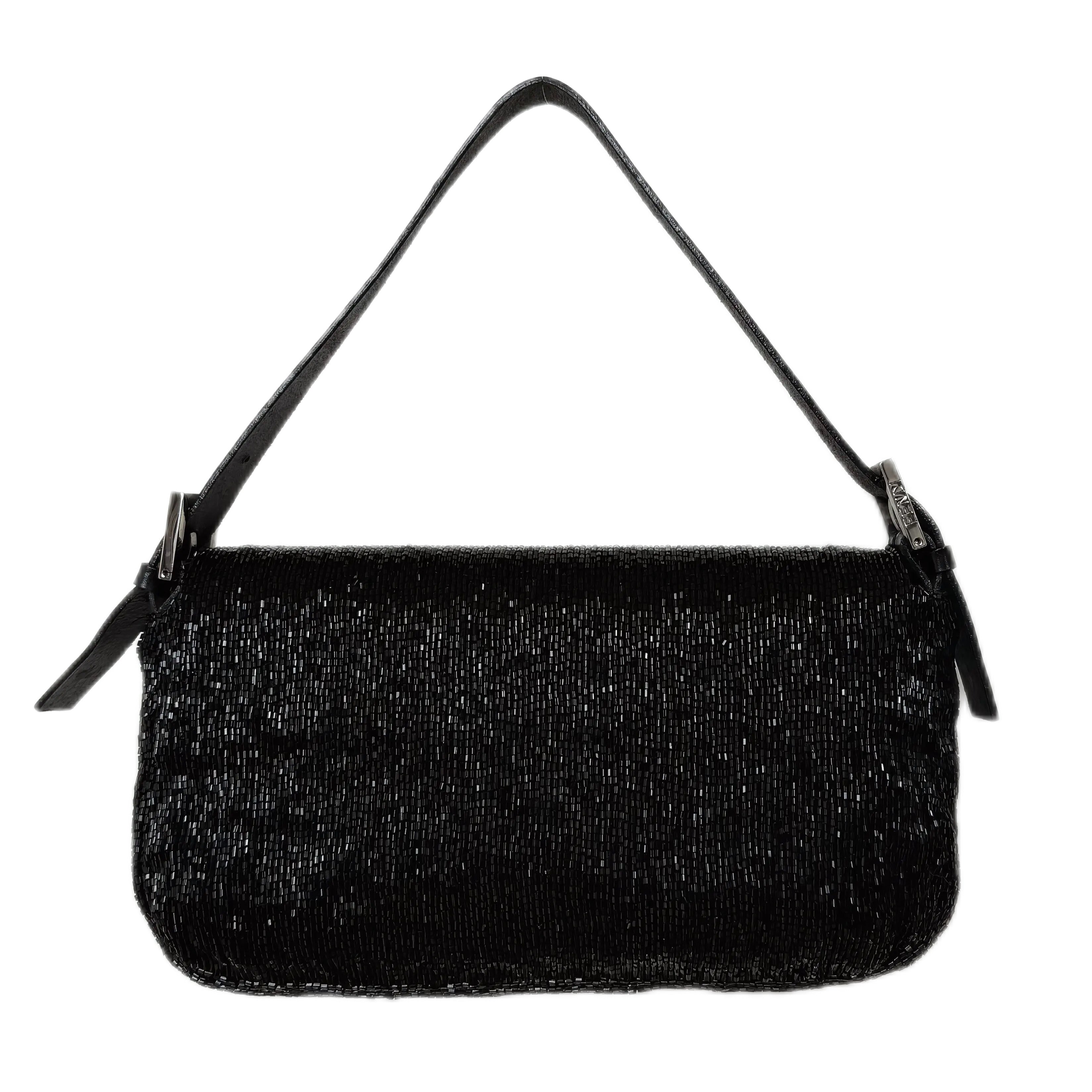 Fendi Jersey Double Flap Baguette in Dark Green with Turquoise Hardware