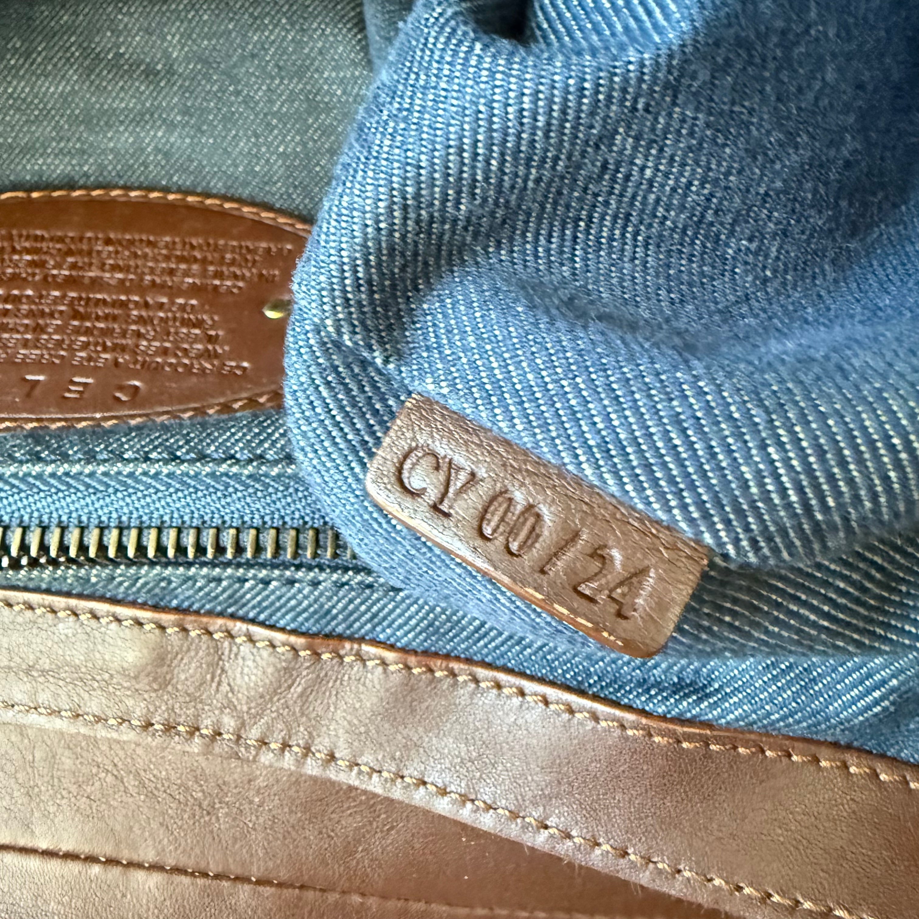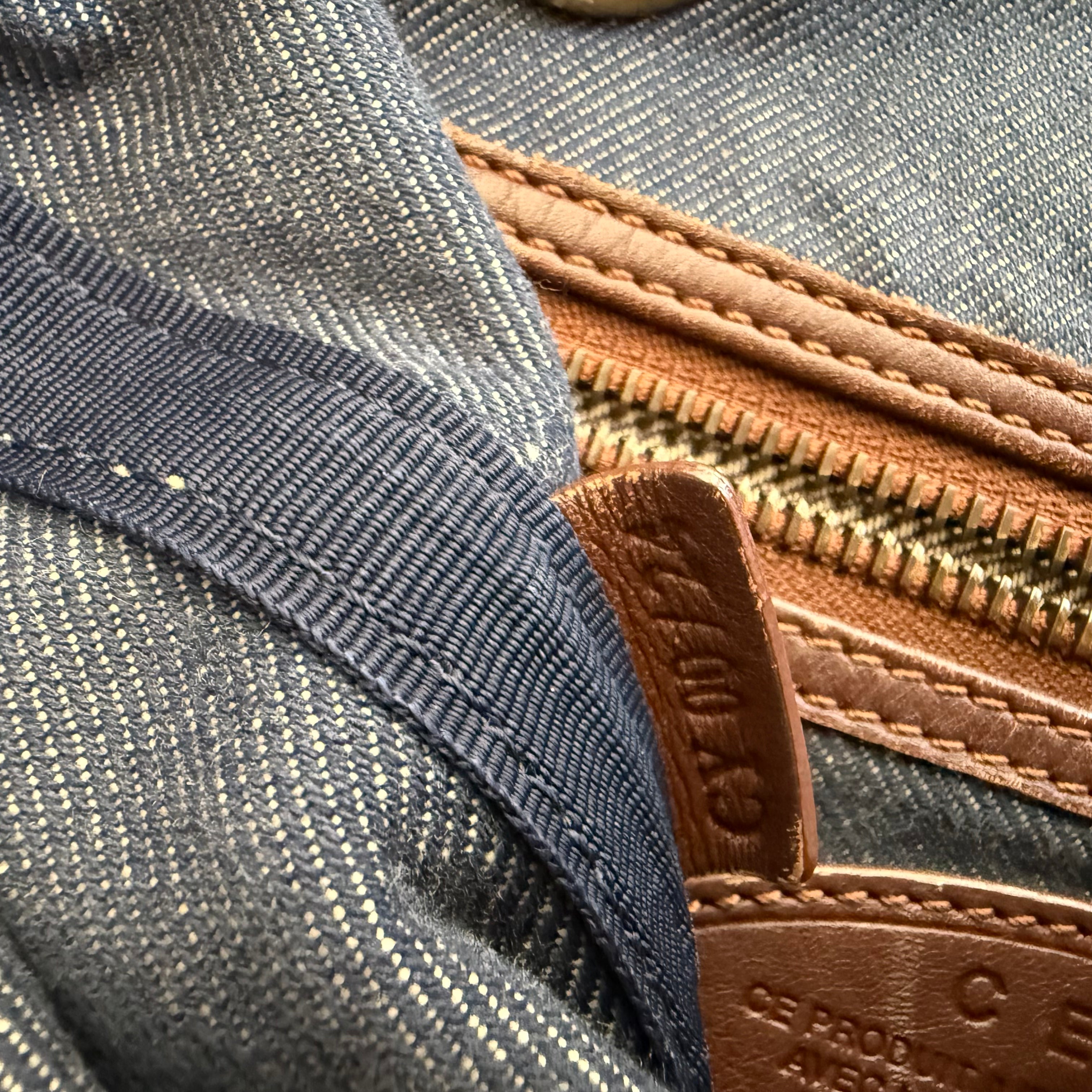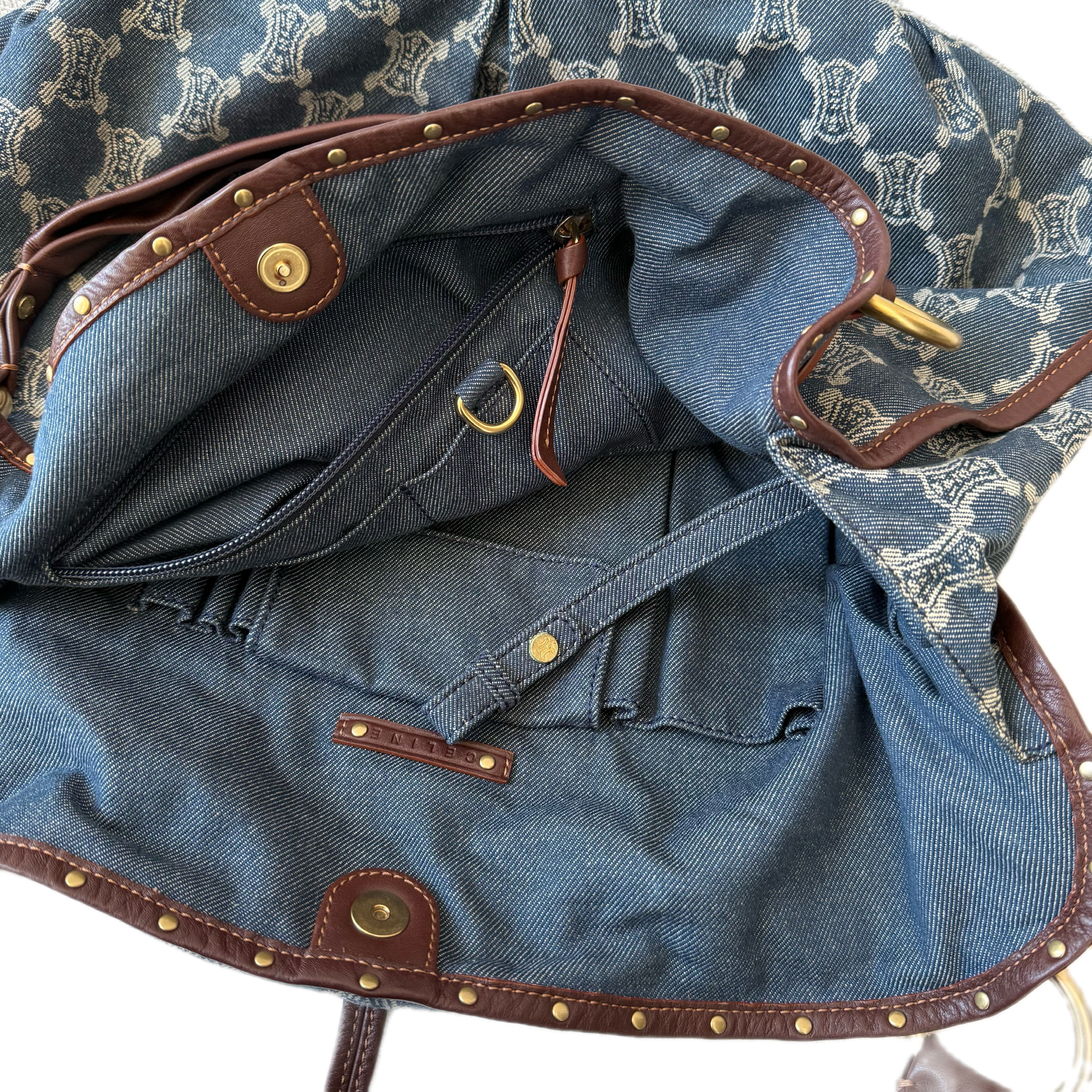Céline Paris Macadam Boogie Handbag in Blue Denim with Brown Leather Trim and Gold-Tone Hardware