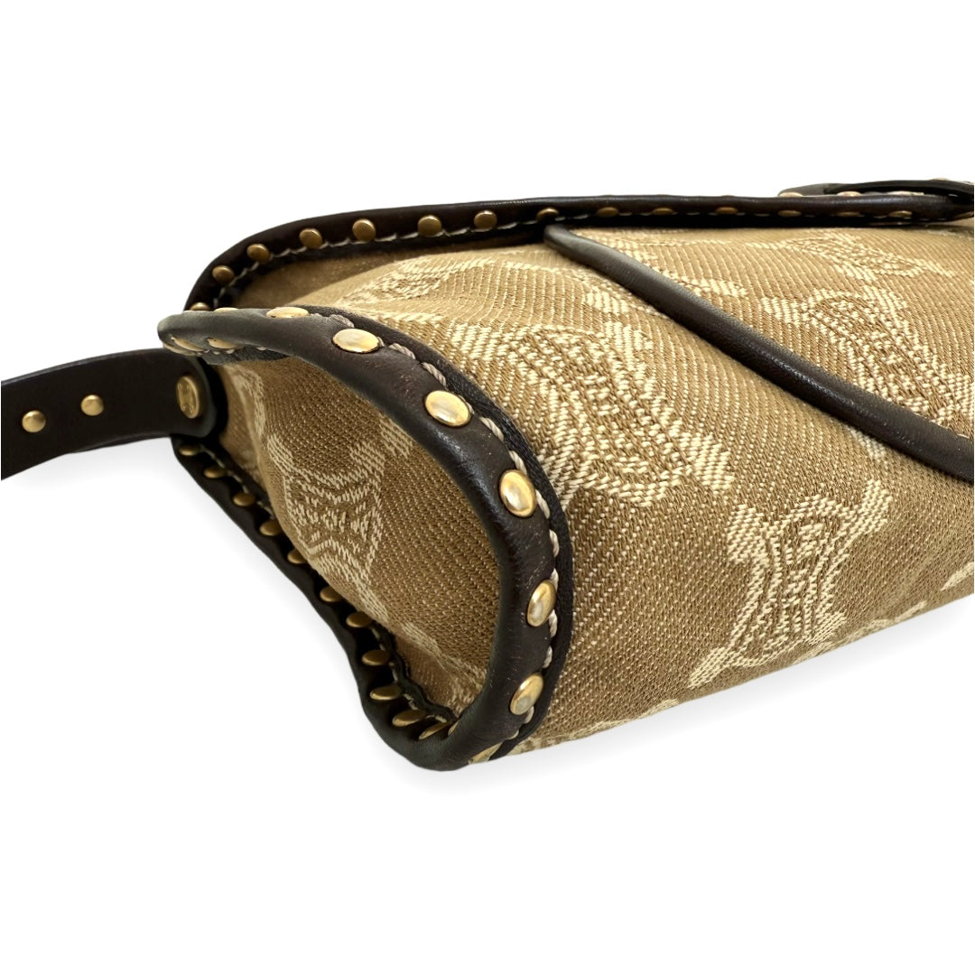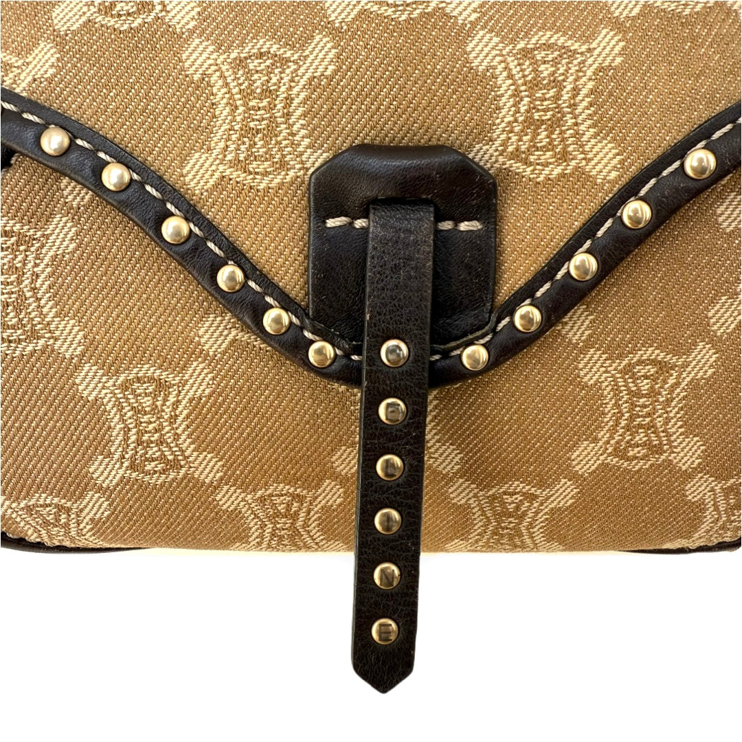Céline Macadam Denim Bittersweet Hobo Bag with Brown Leather Trim and Gold-Tone Hardware