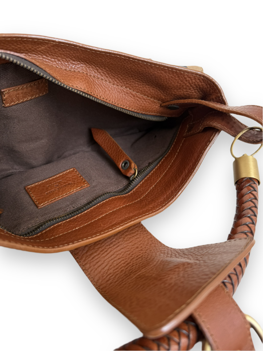 Burberry Prorsum House Check Cinda shoulder bag with brown leather trim and a braided handle