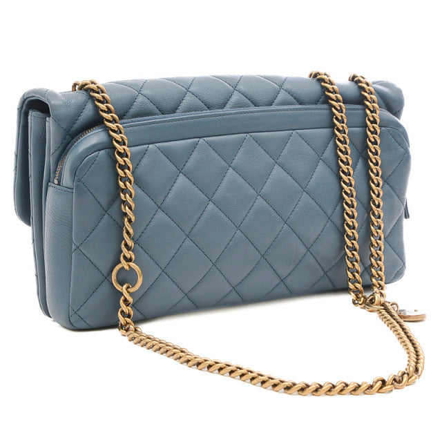 Chanel CC Crown Flap Bag in blue quilted leather with gold-tone hardware