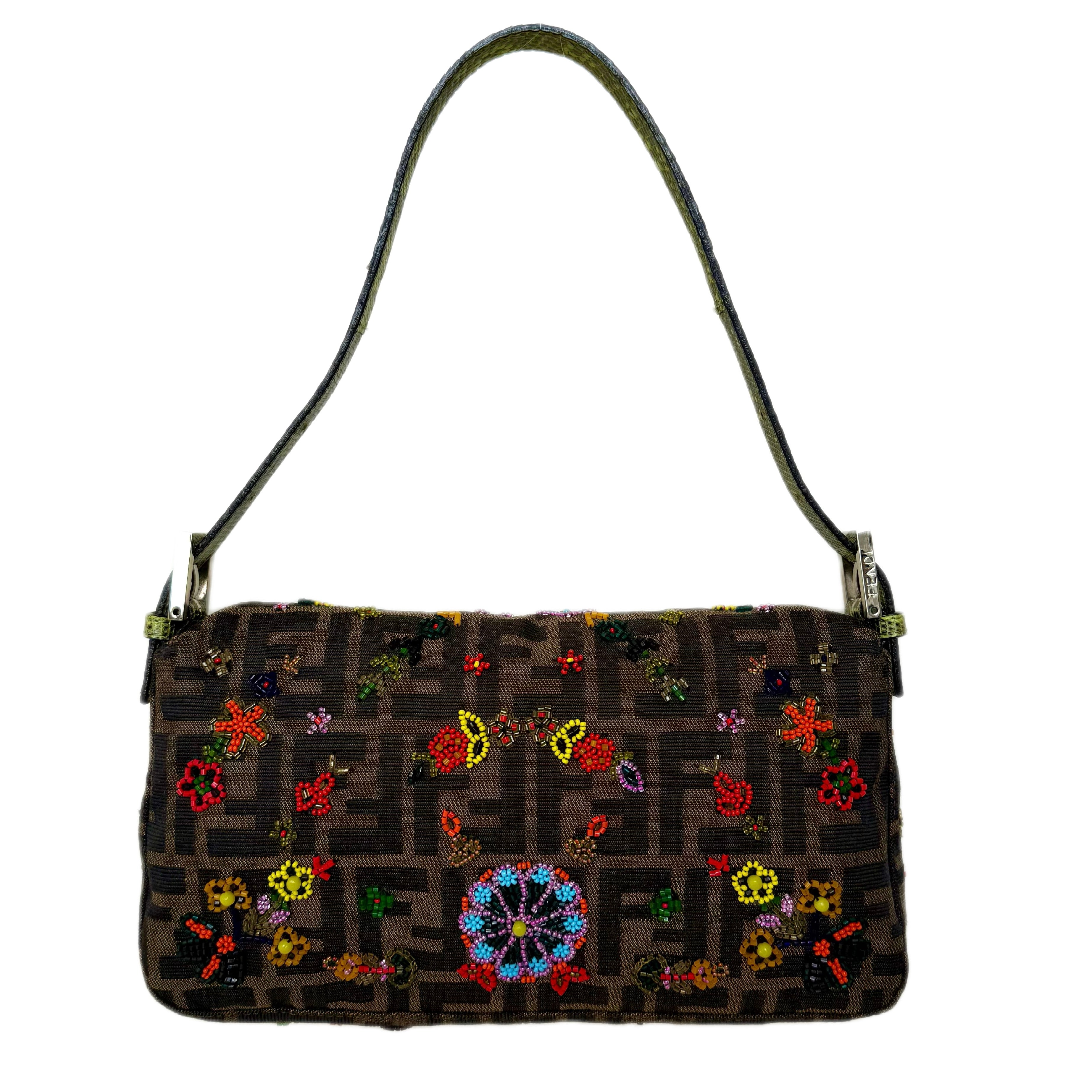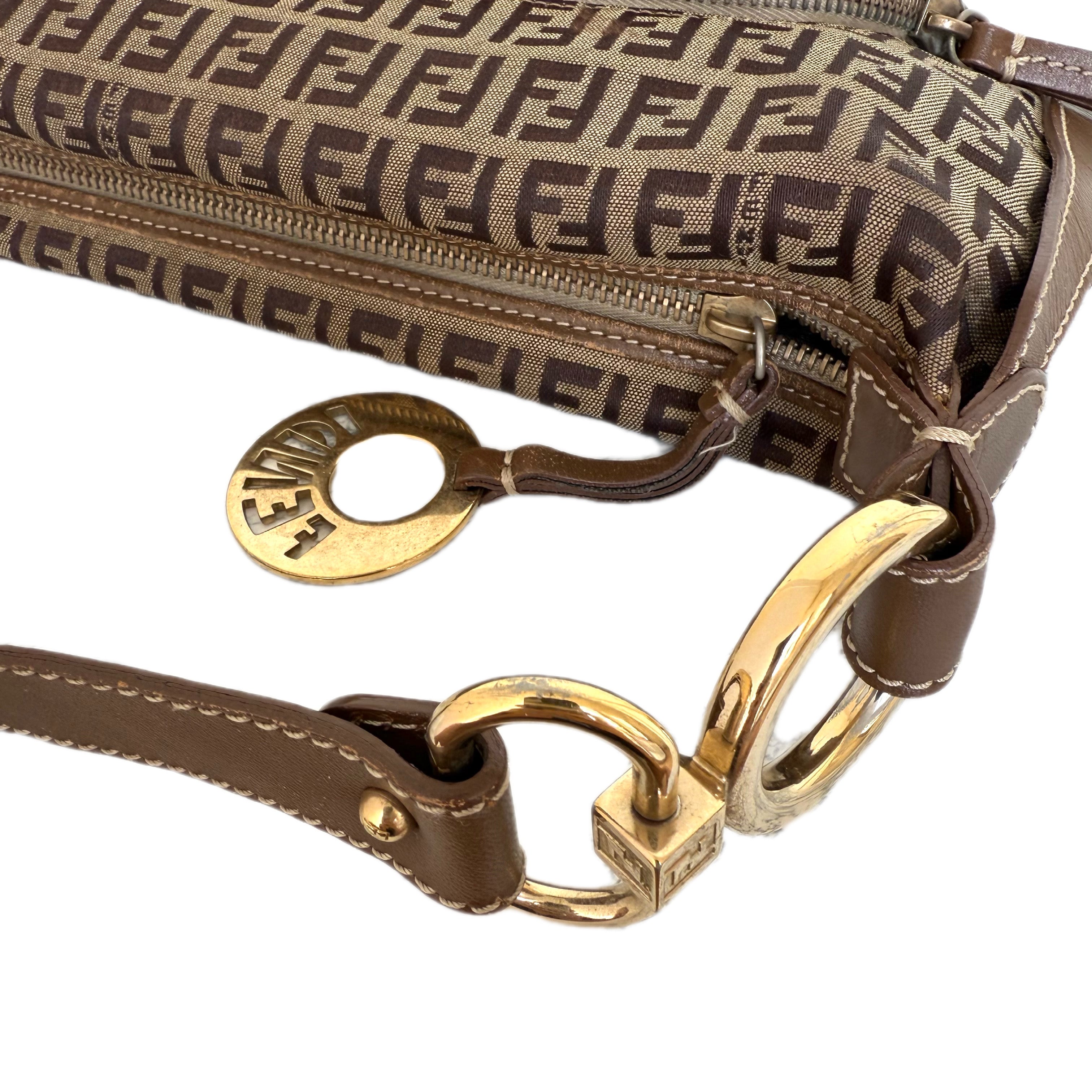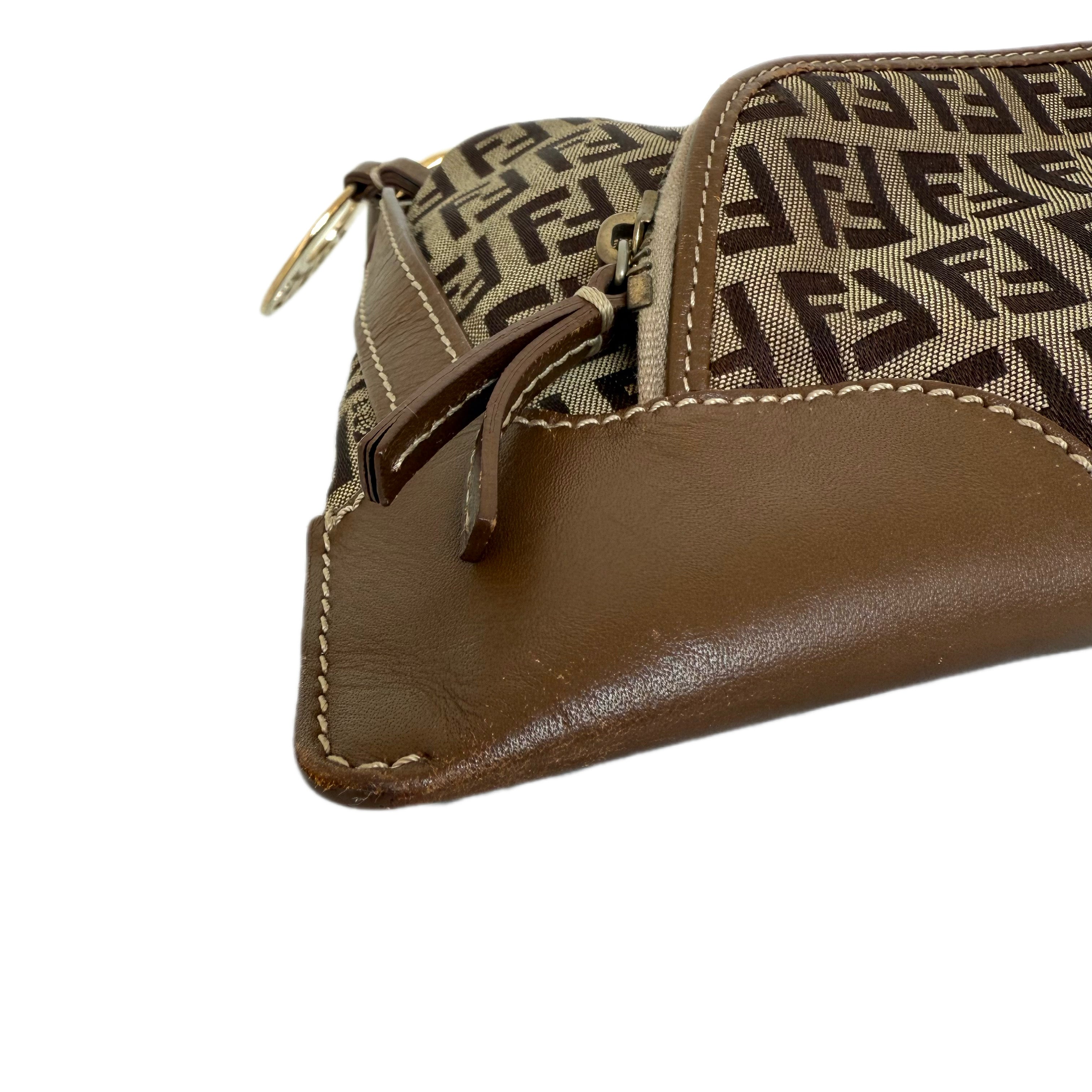 Fendi Brown Zucchino Canvas & Leather Front Pocket Shoulder Bag