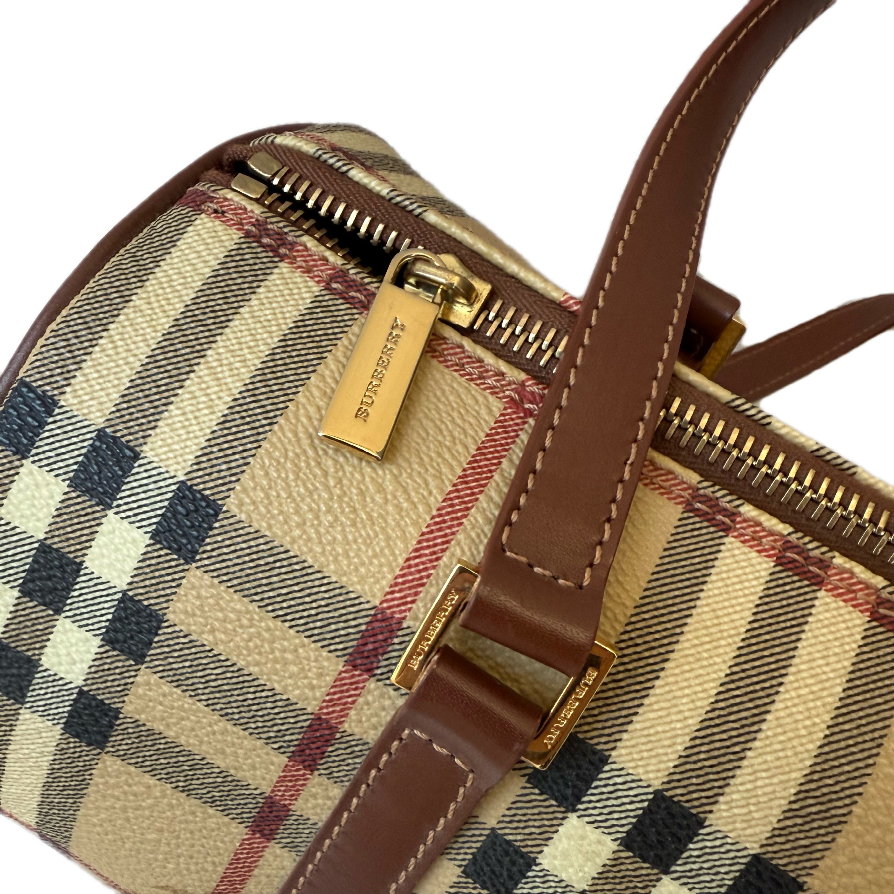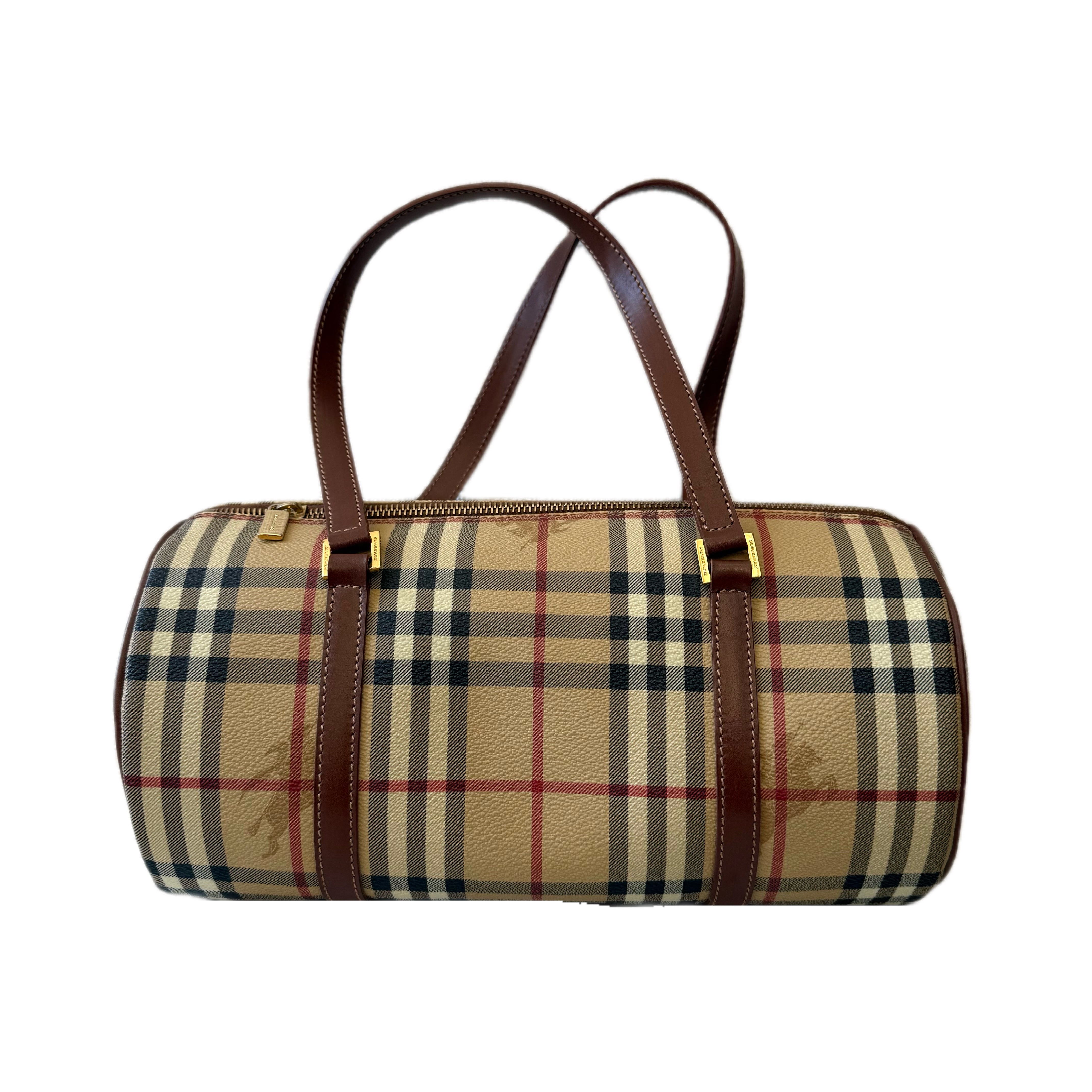 Burberry Haymarket Check Coated Canvas & Leather Barrel Satchel Bag