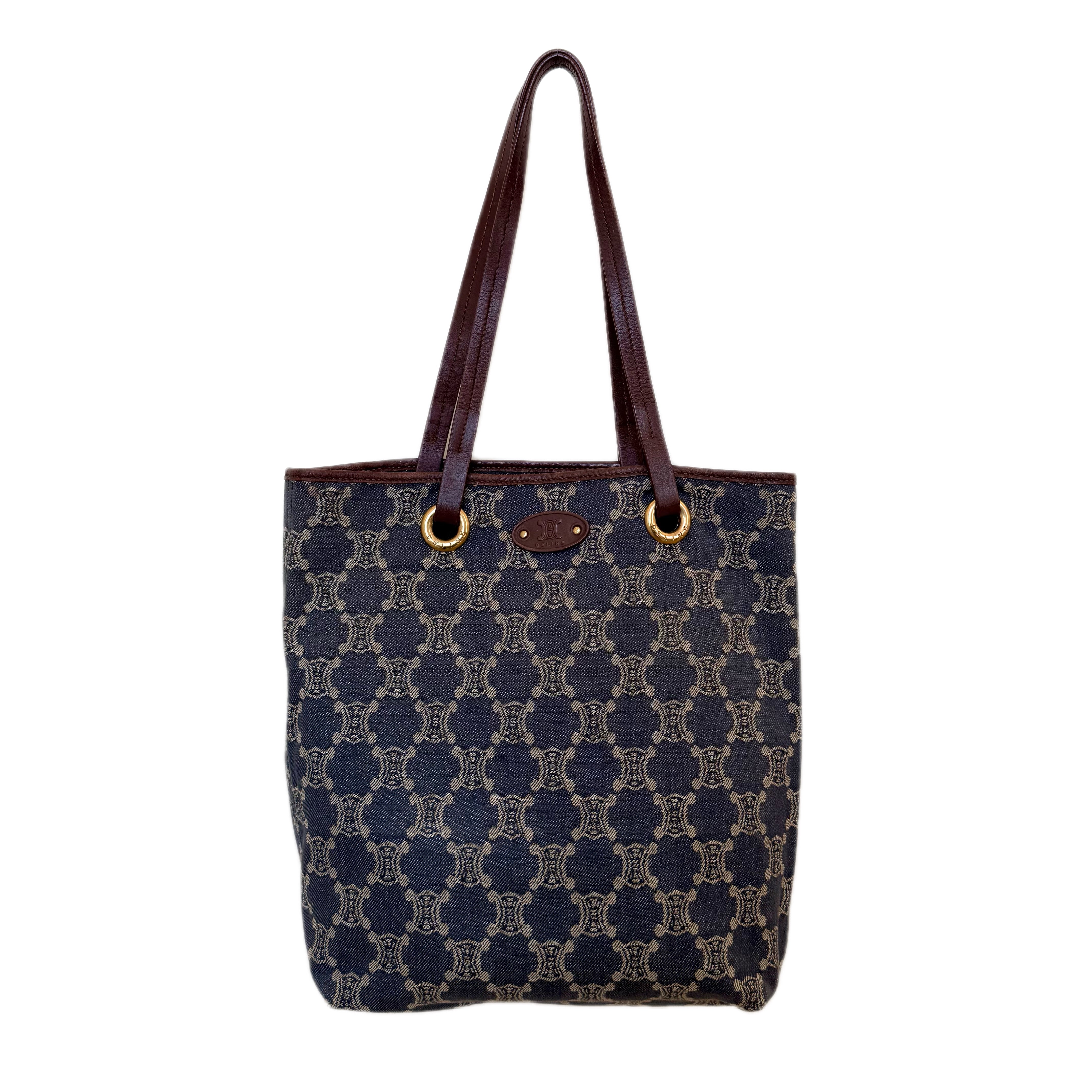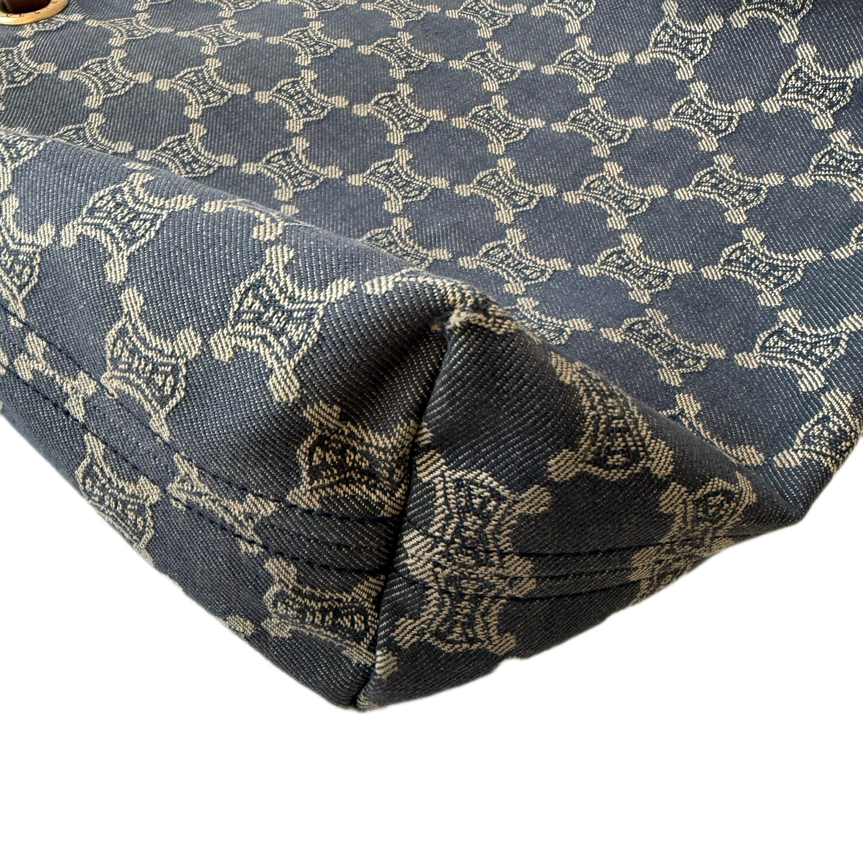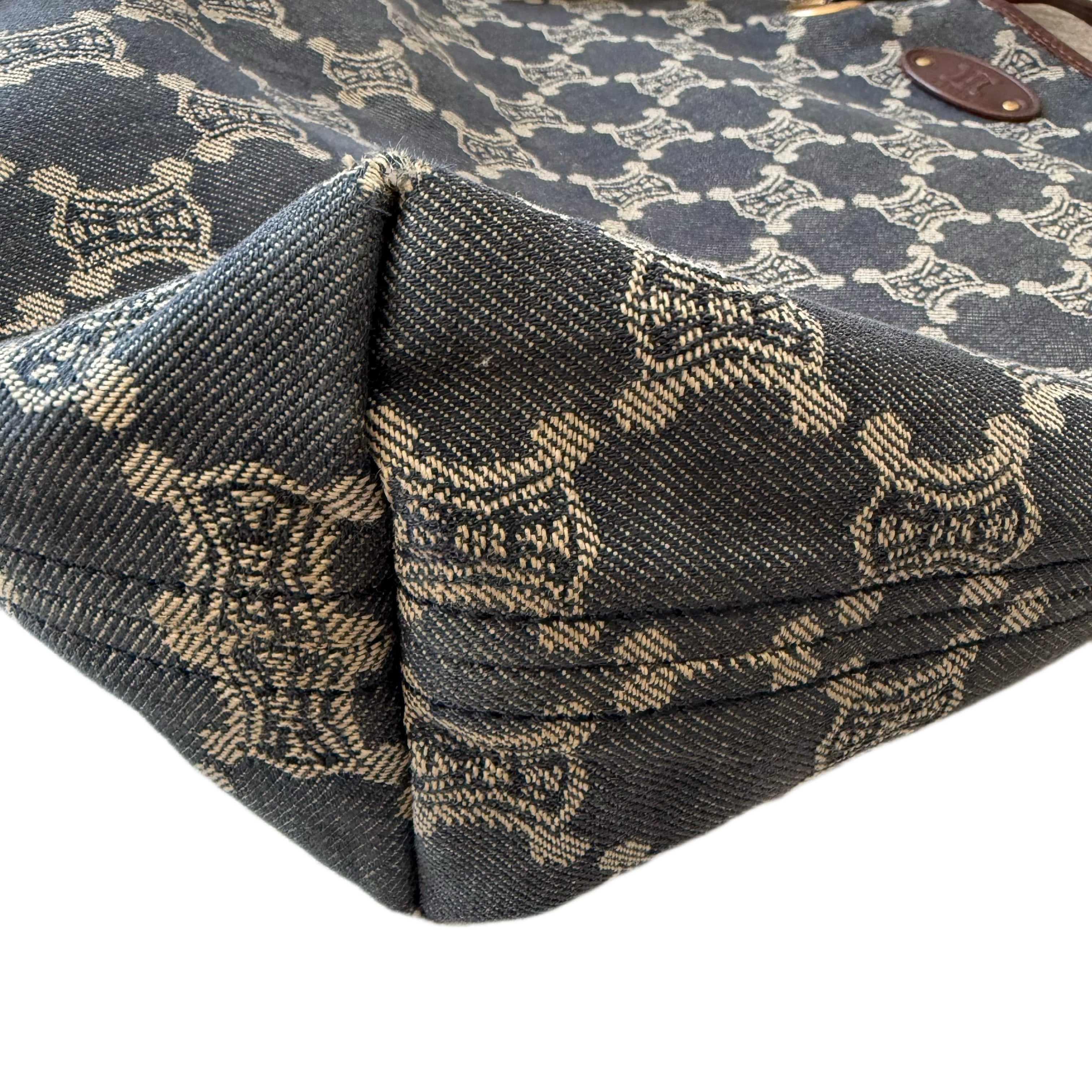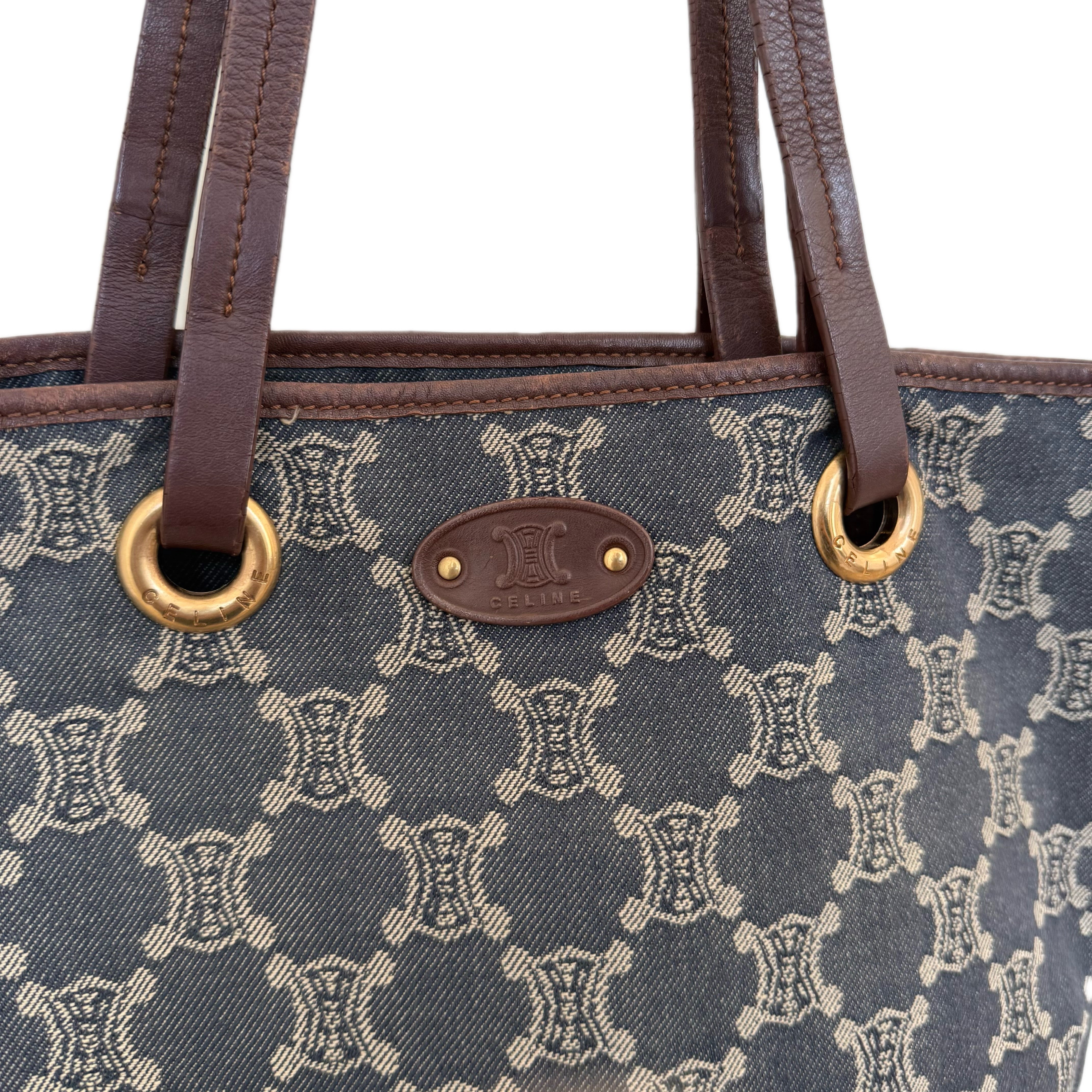 Céline Macadam Denim & Leather Tote Bag in Blue and Brown