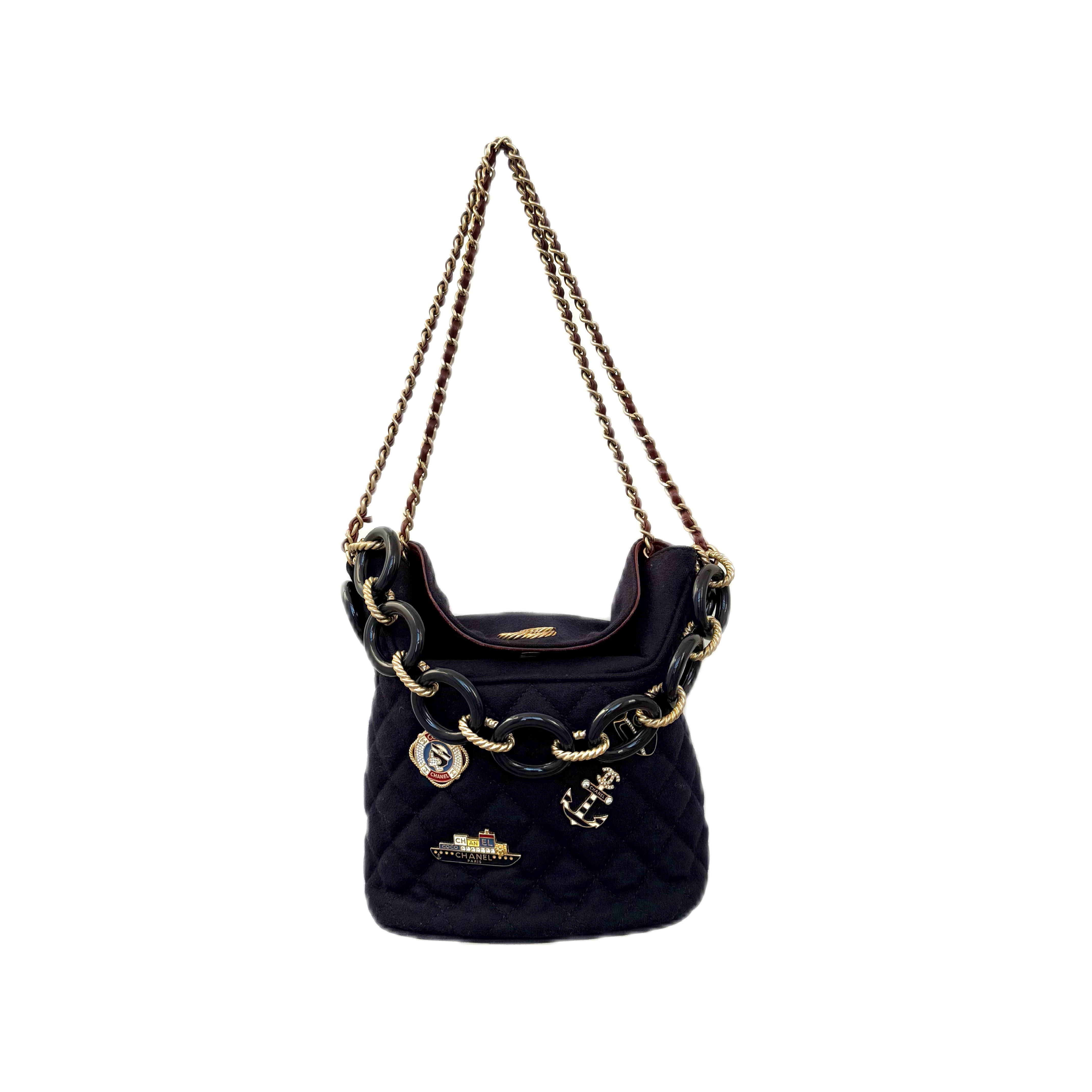 Chanel Paris–Hamburg Charms Wool Bucket Bag in Navy Blue
