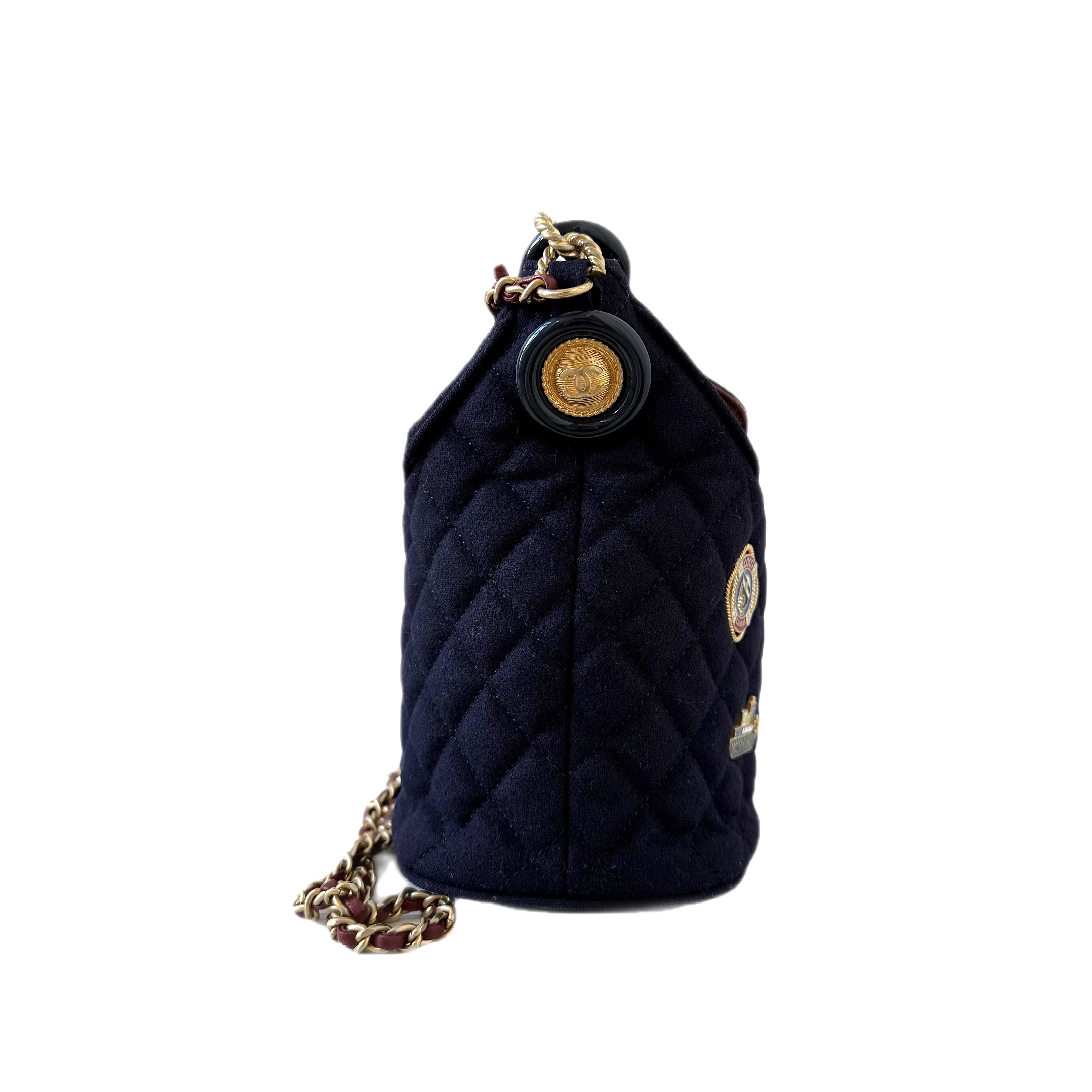 Chanel Paris–Hamburg Charms Wool Bucket Bag in Navy Blue