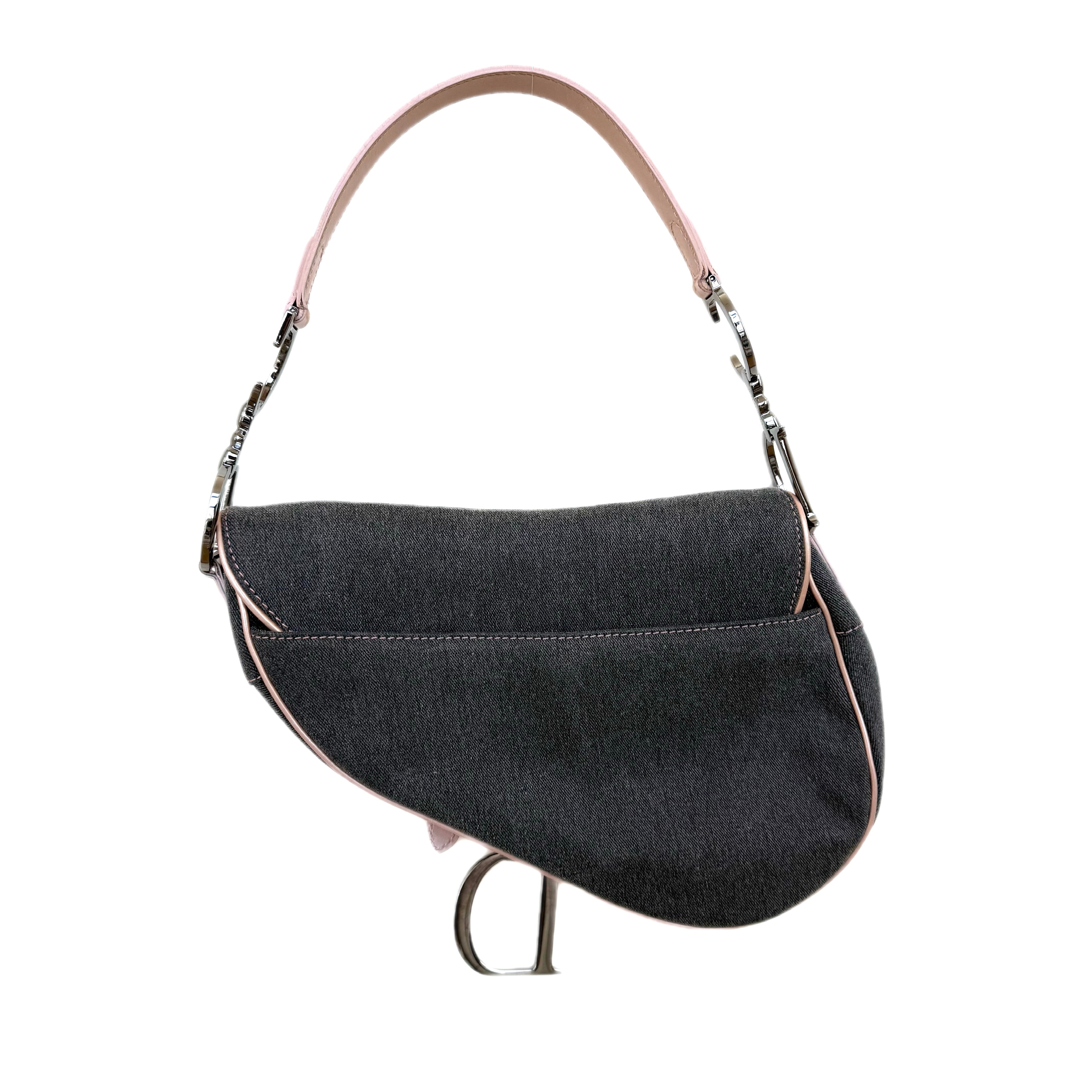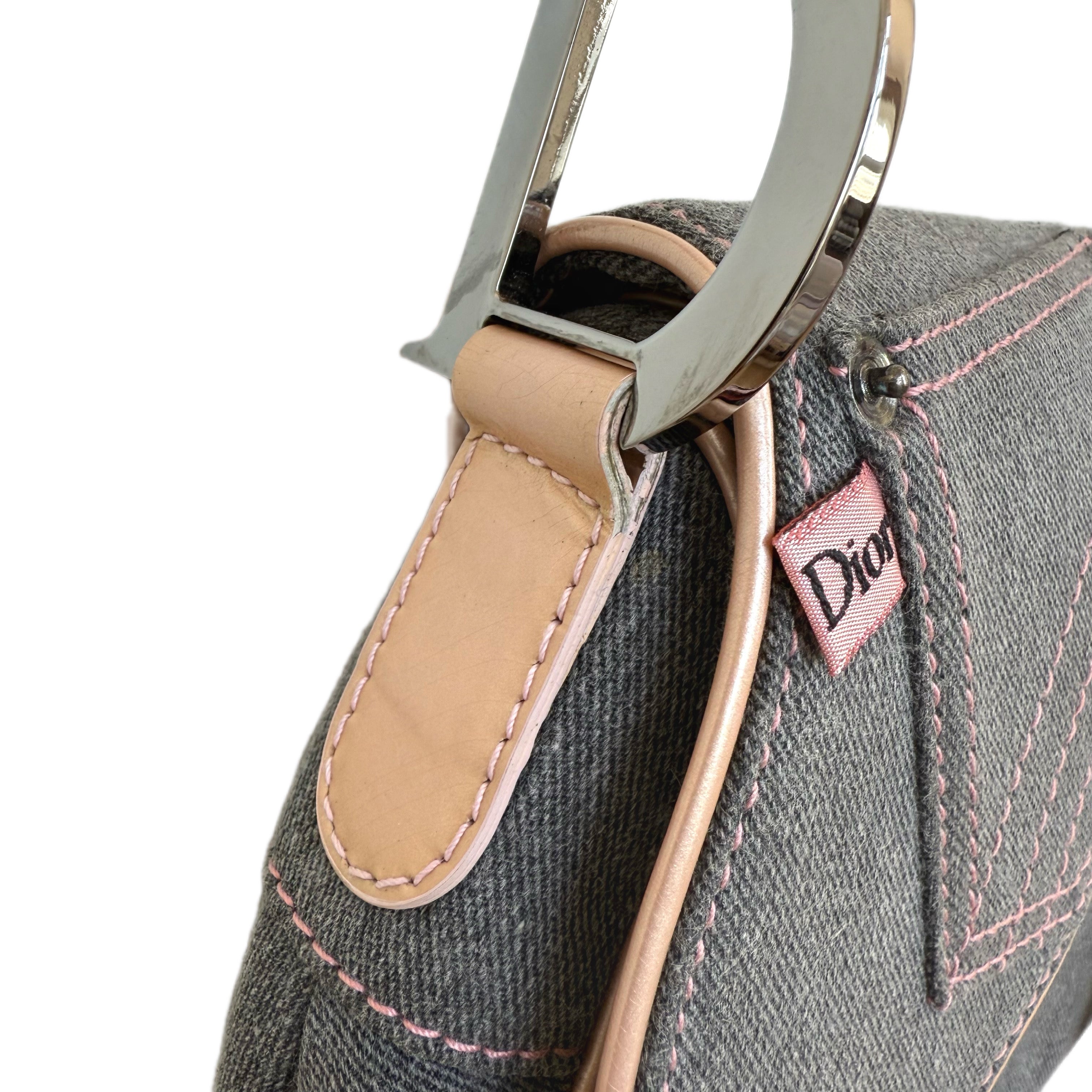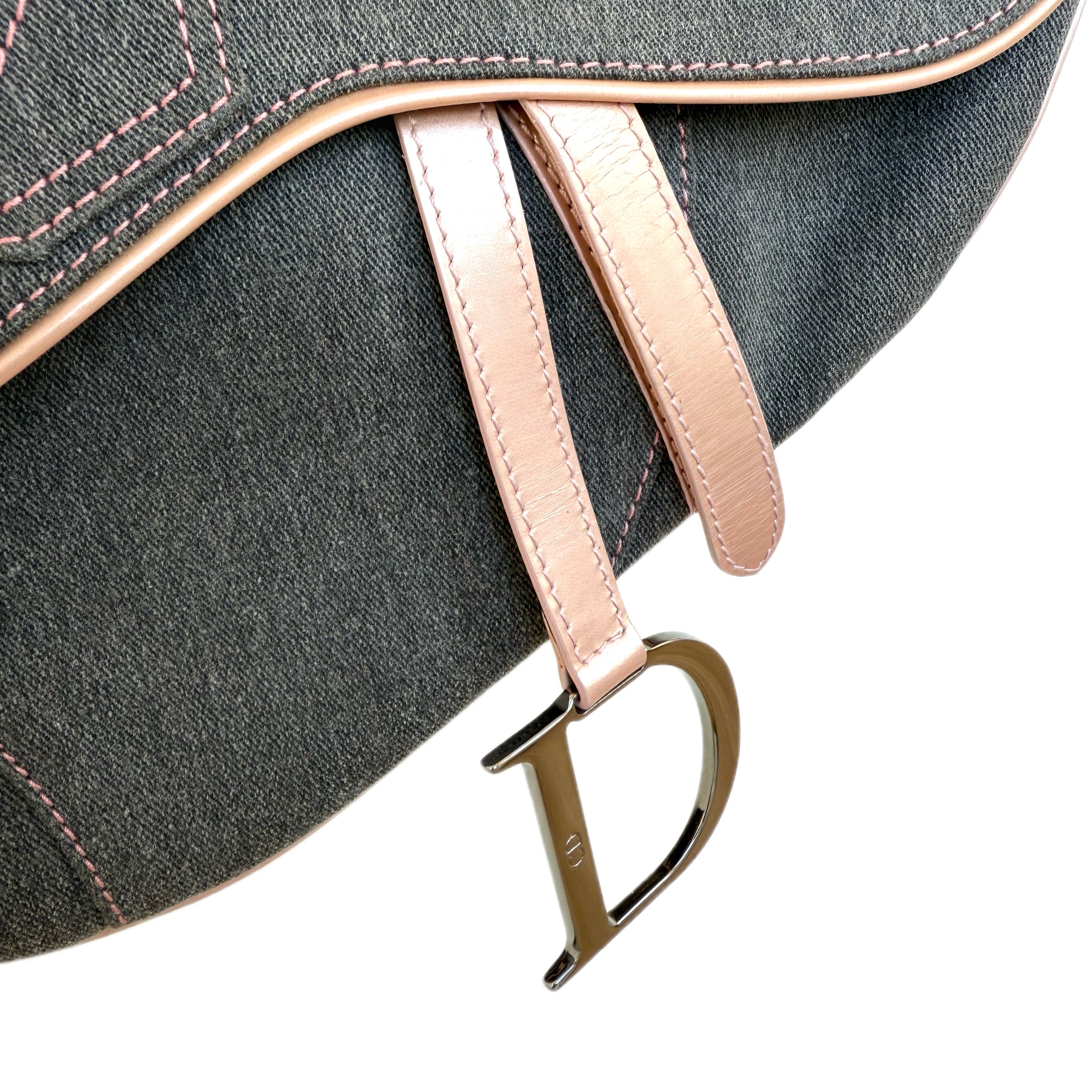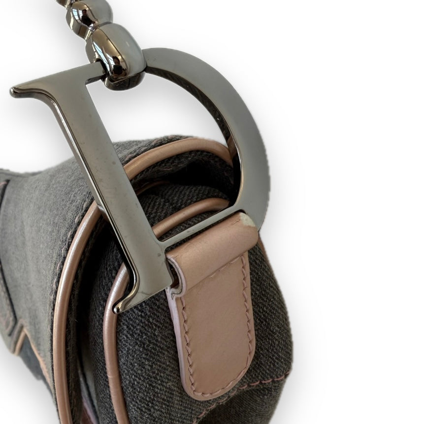 Dior Saddle Bag in Grey Denim with Pink Patent Leather Accents