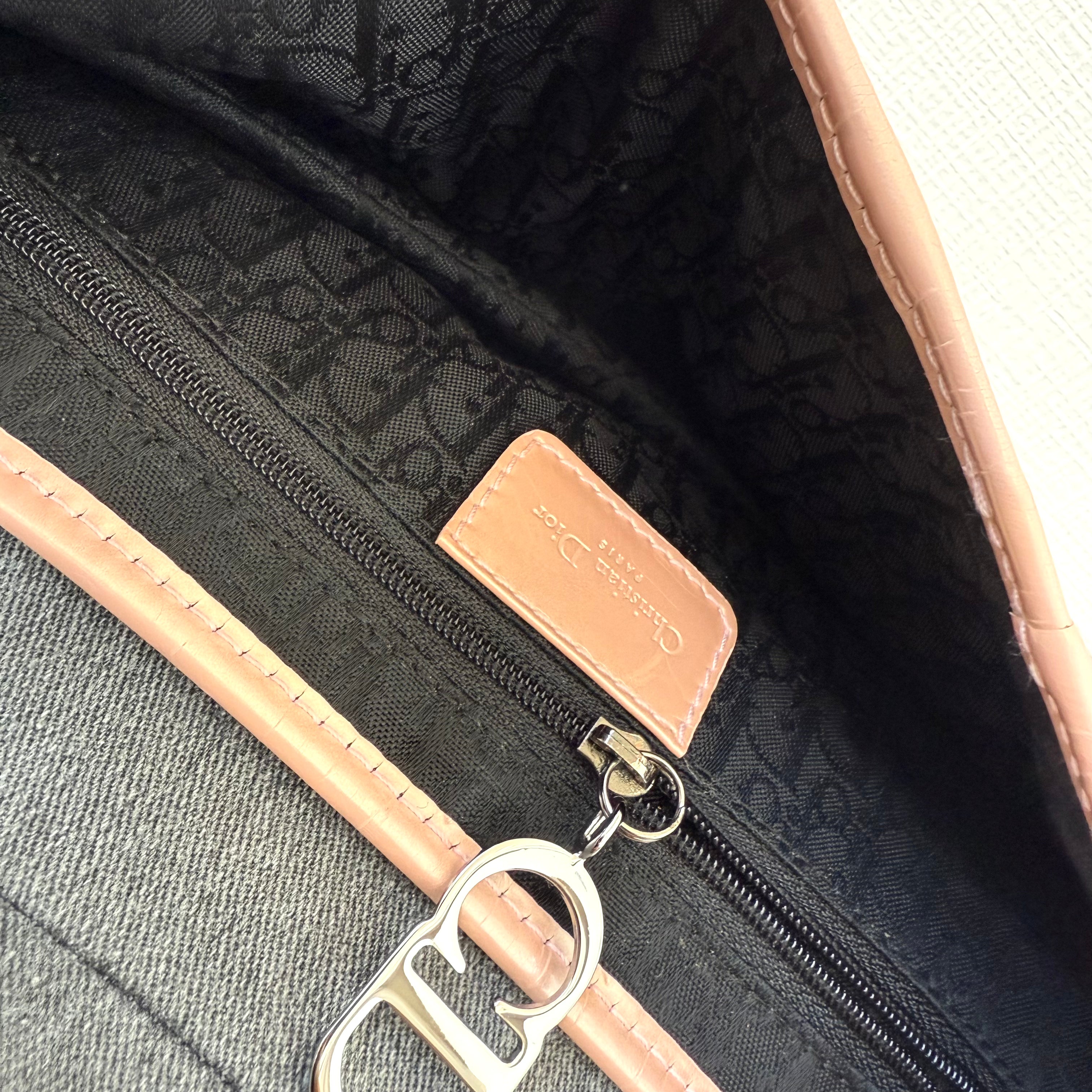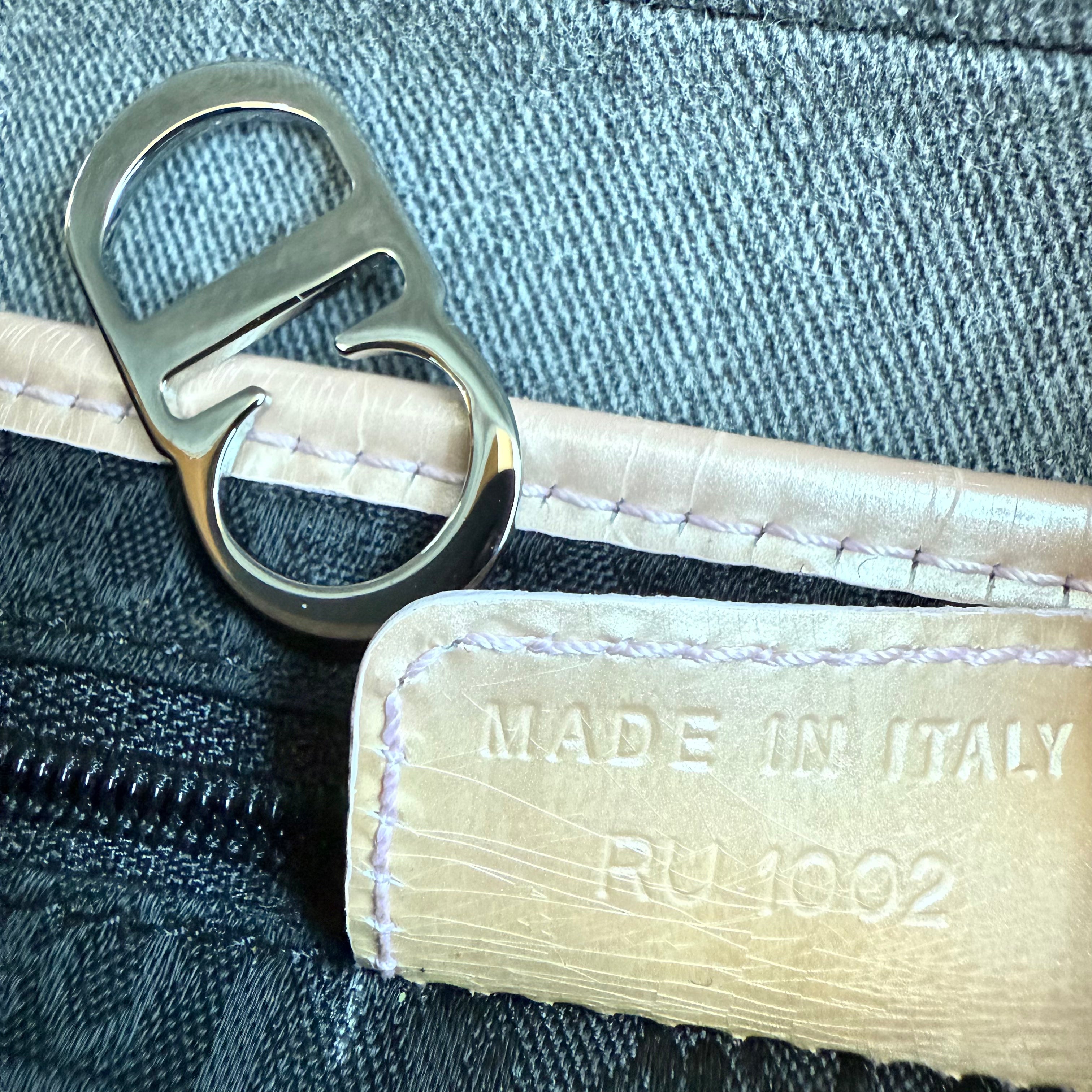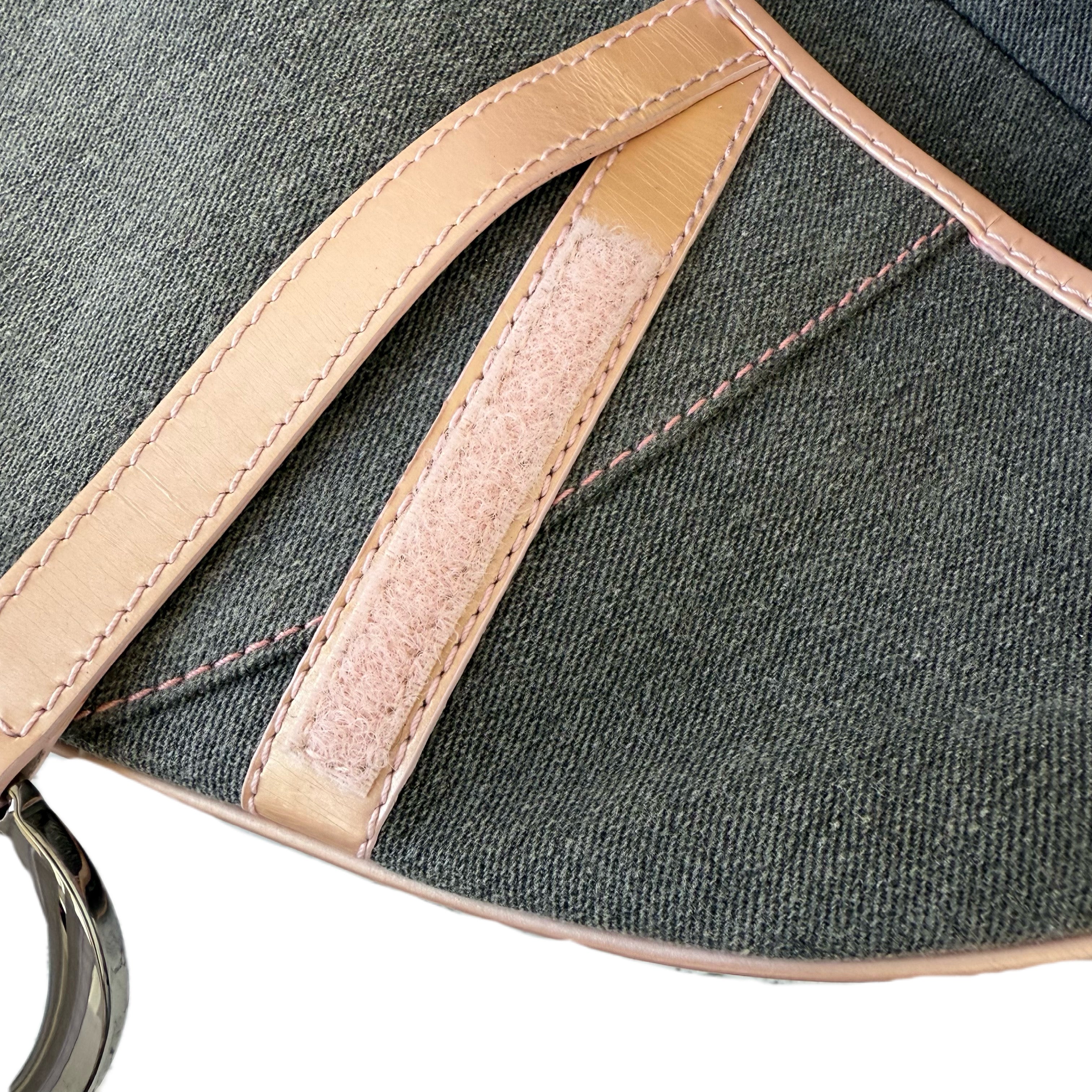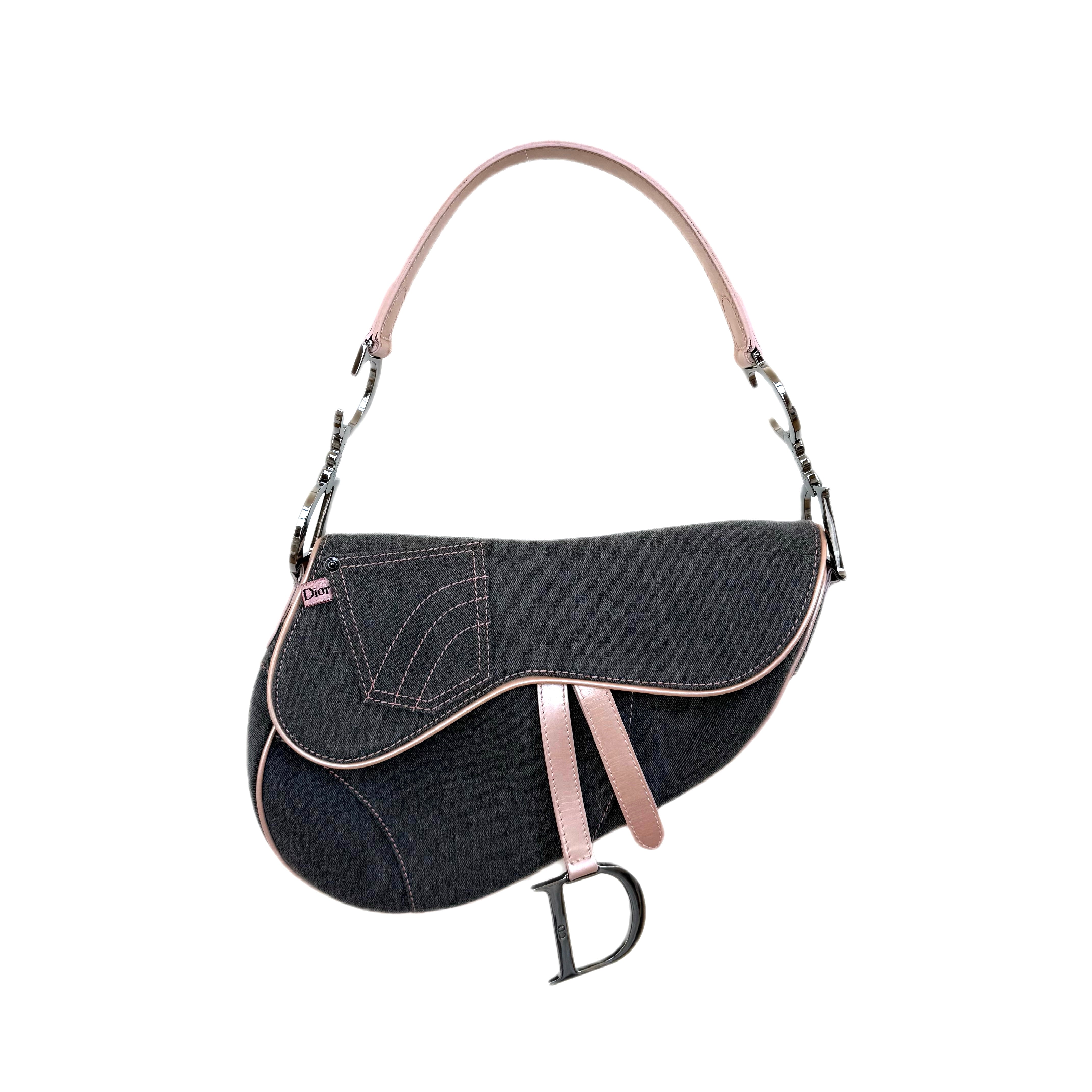Dior Saddle Bag in Grey Denim with Pink Patent Leather Accents