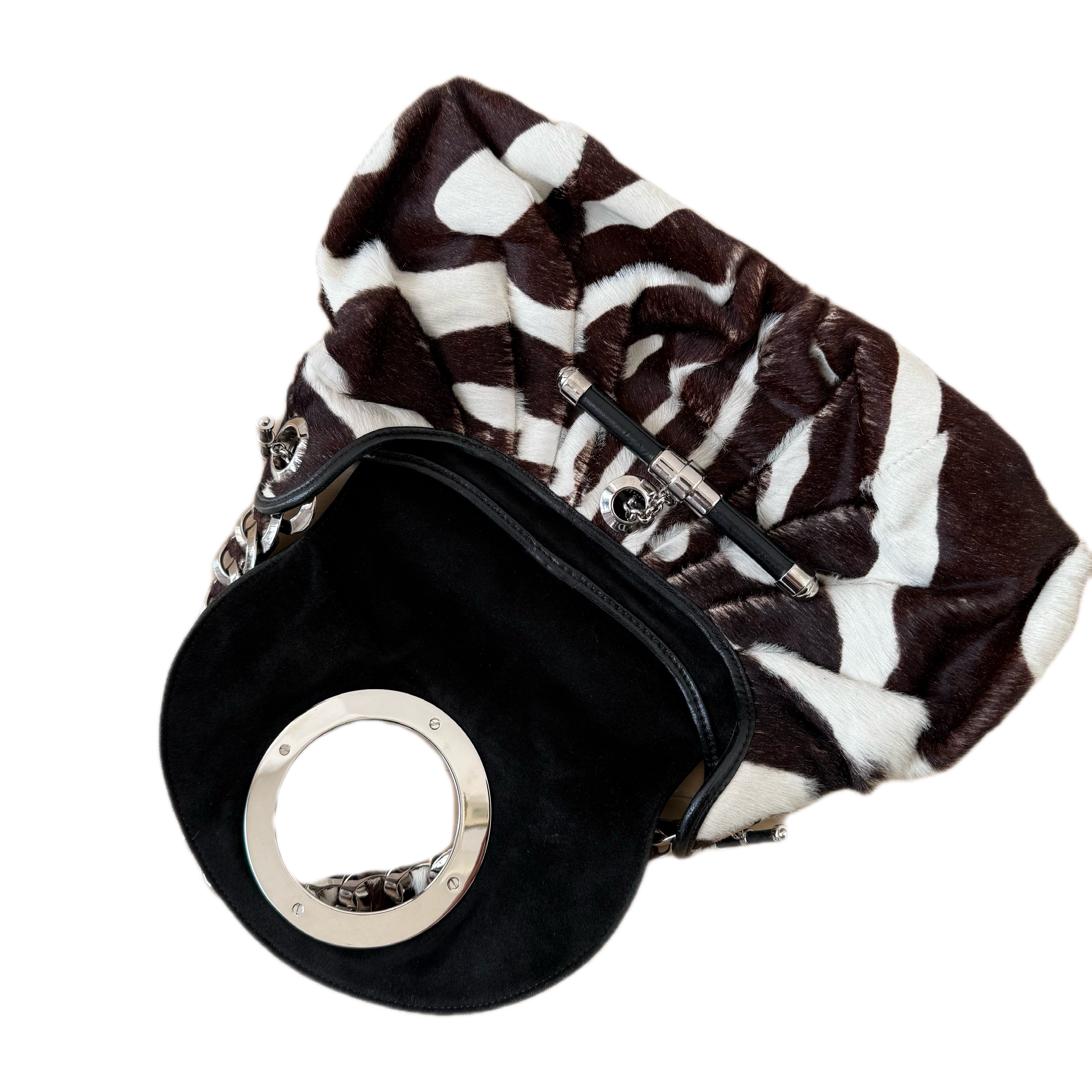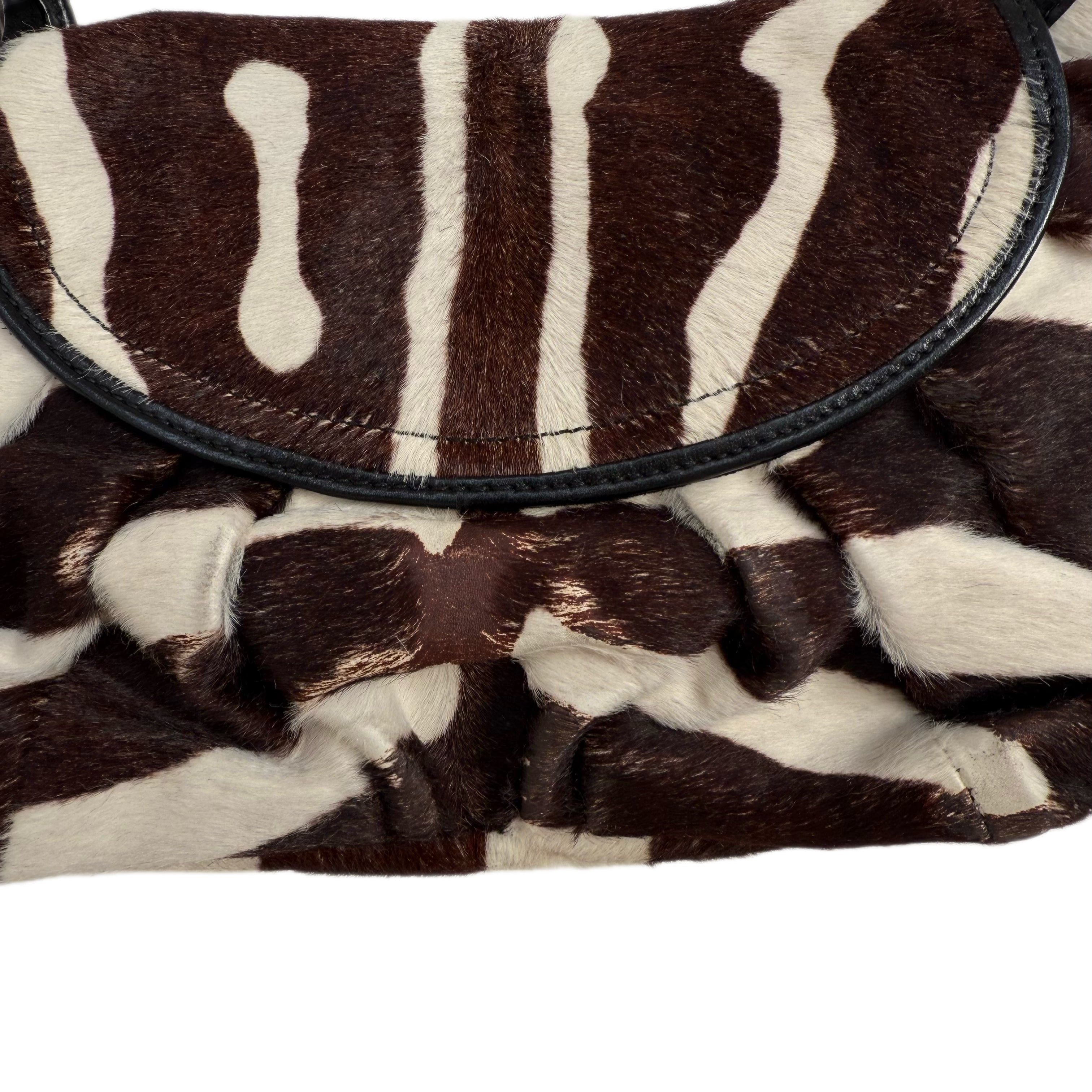 Christian Dior Jazz Club shoulder bag in brown and white zebra-print pony hair.