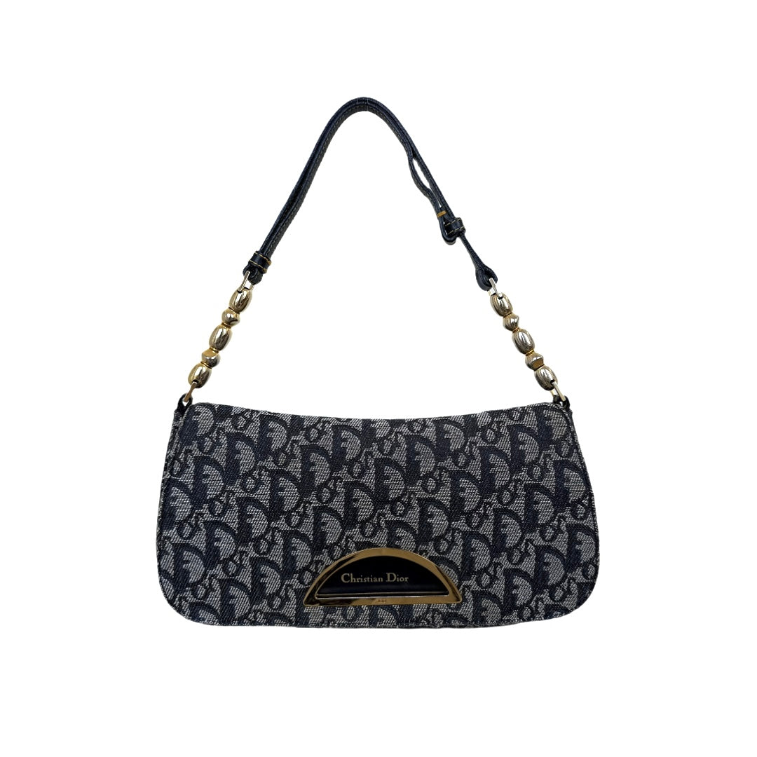 Christian Dior Malice Pearl shoulder bag in navy blue Diorissimo oblique canvas