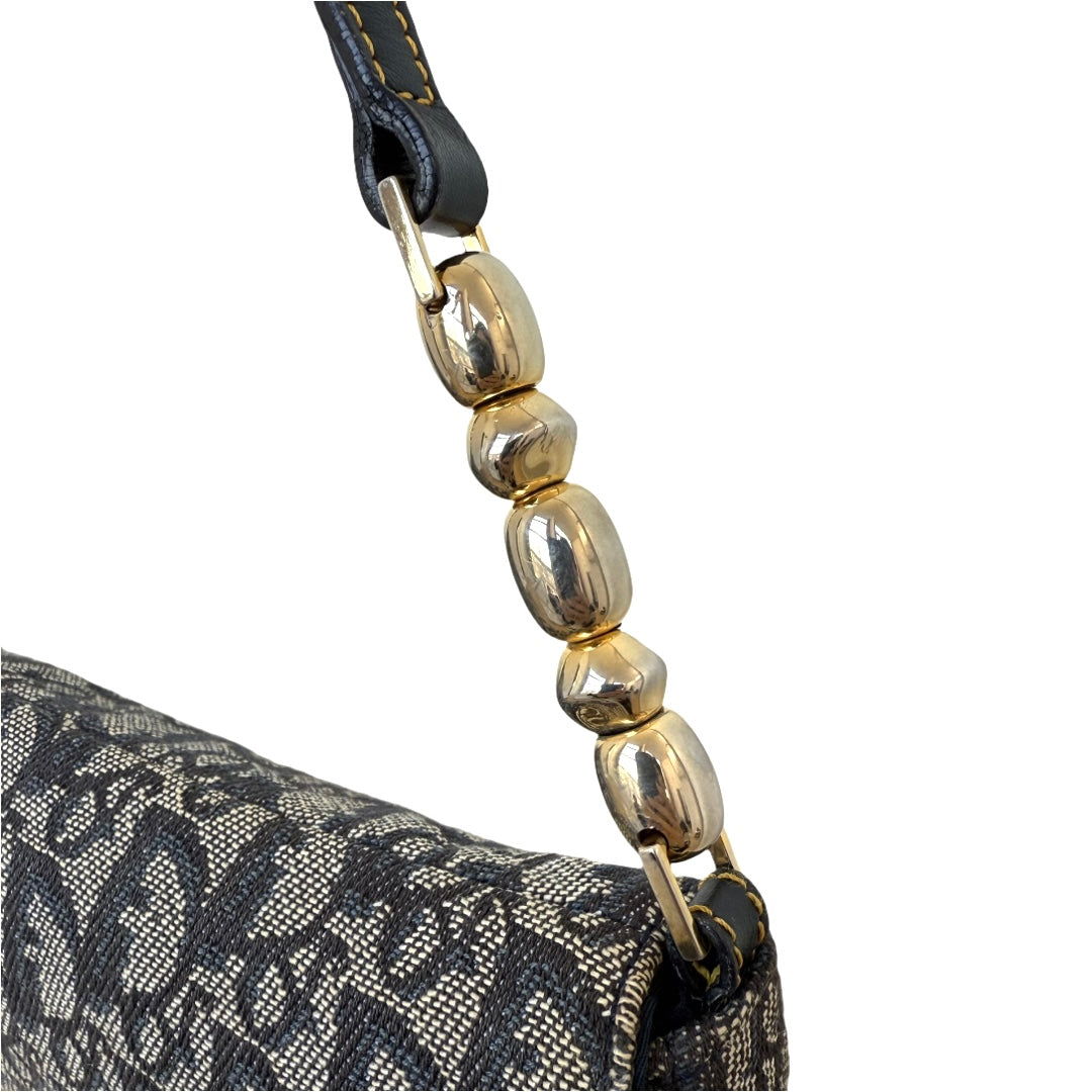 Christian Dior Malice Pearl shoulder bag in navy blue Diorissimo Oblique canvas. Rare vintage piece featuring Dior’s iconic monogram design and elegant silhouette.