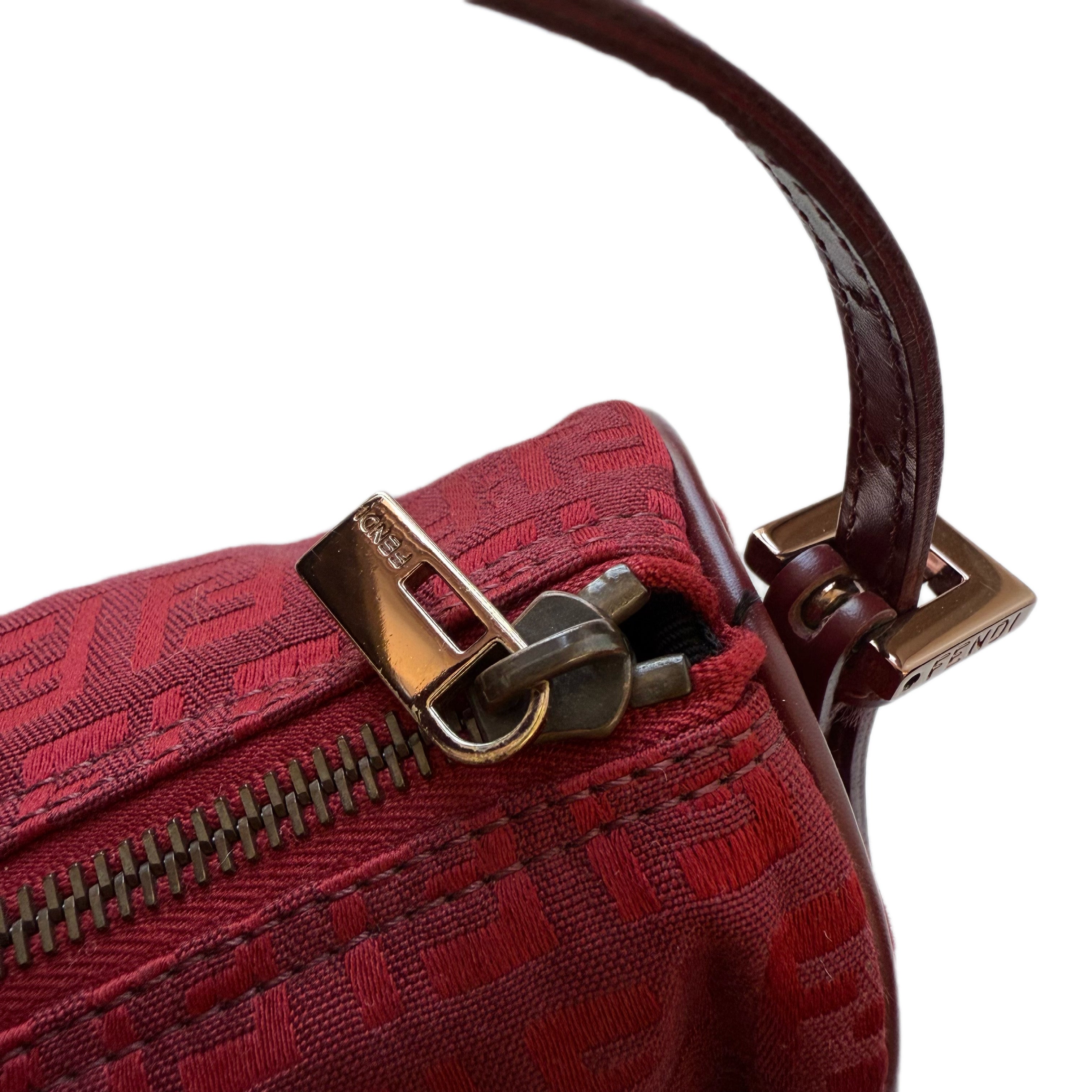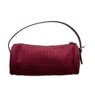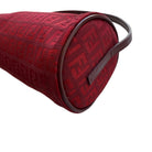 Vintage Fendi red Zucca canvas mini barrel bag featuring iconic monogram design and compact silhouette.