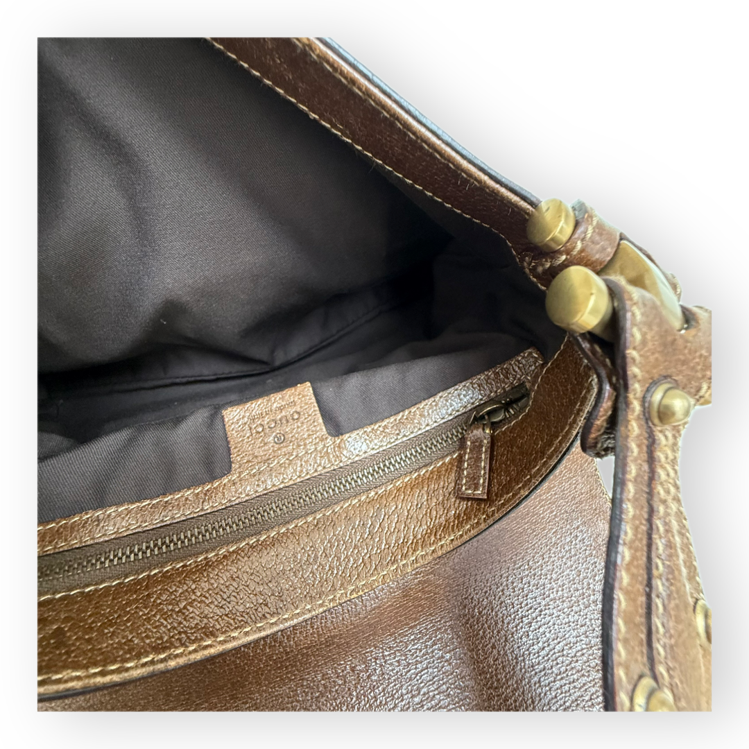 Gucci Beige Leather Bamboo Handle Shoulder Hobo Tote Bag