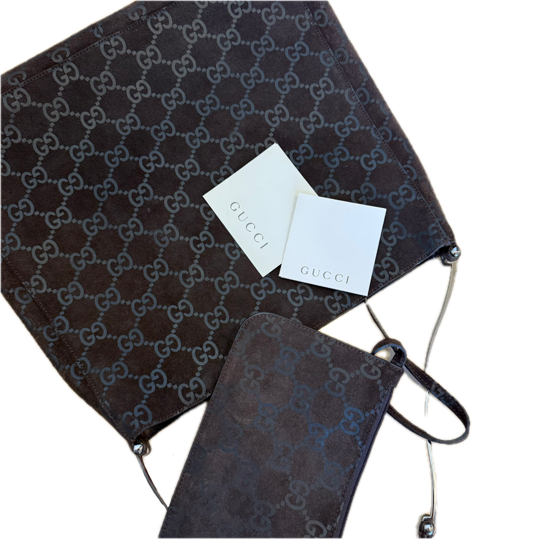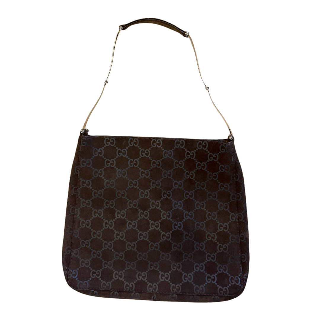 TOM FORD Gucci brown suede GG monogram hobo shoulder bag
