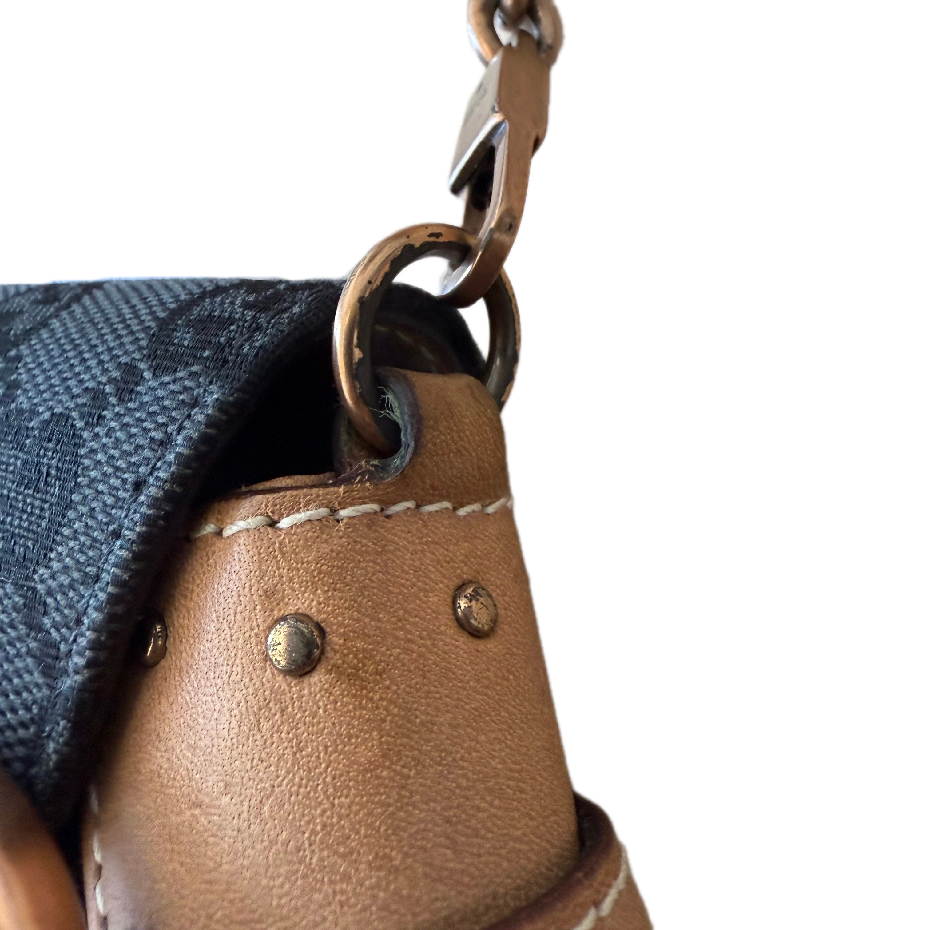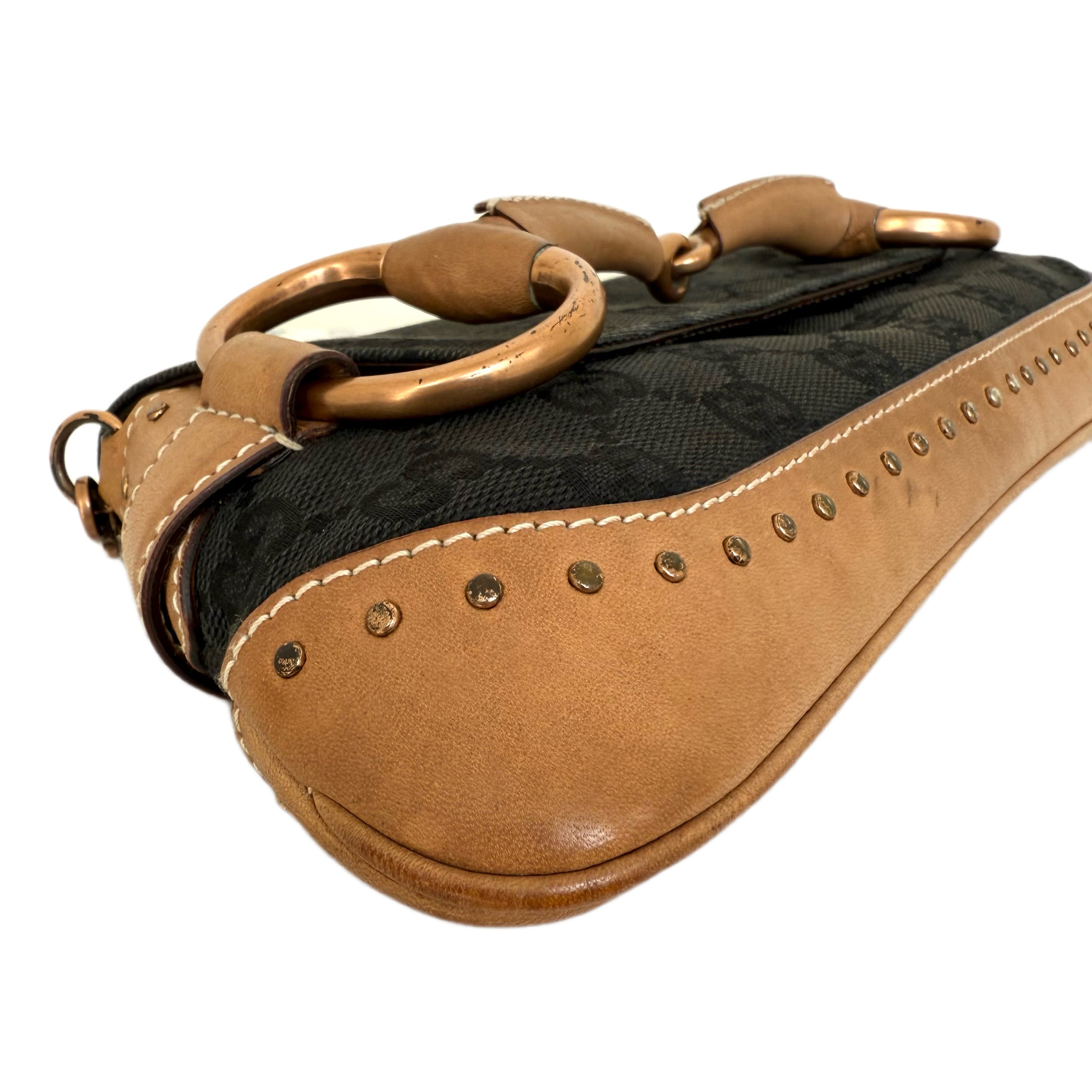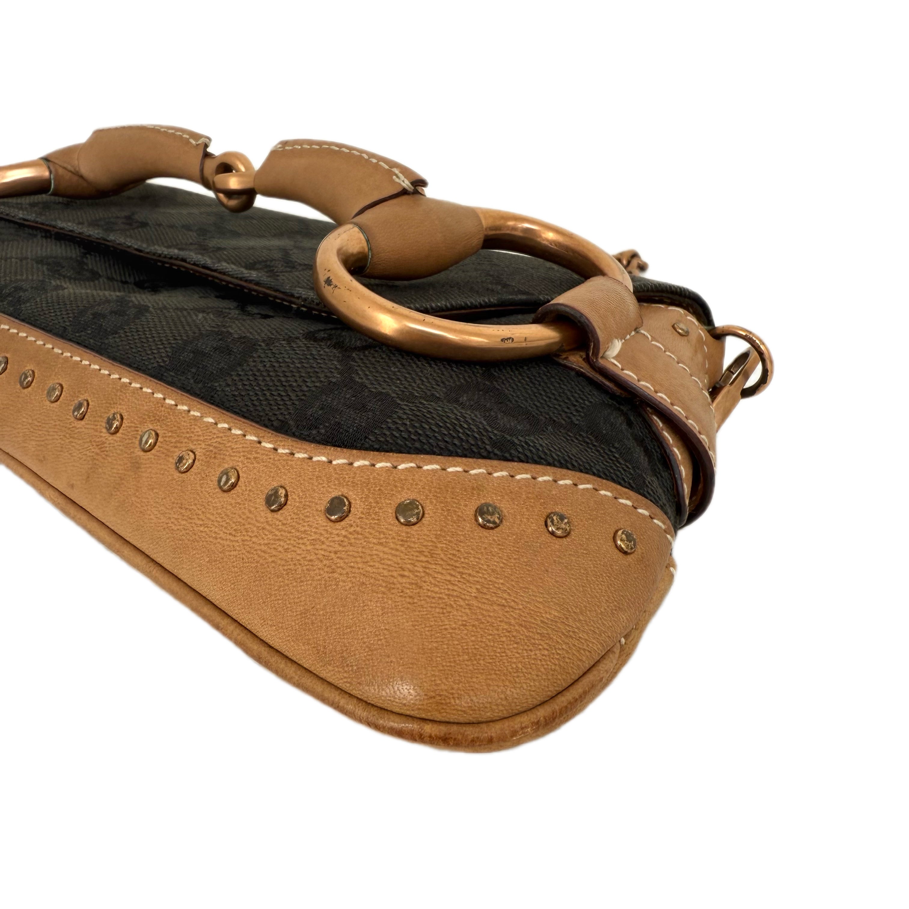 Gucci Tom Ford–Era Horsebit Chain Clutch in Black GG Canvas with Tan Leather Trim