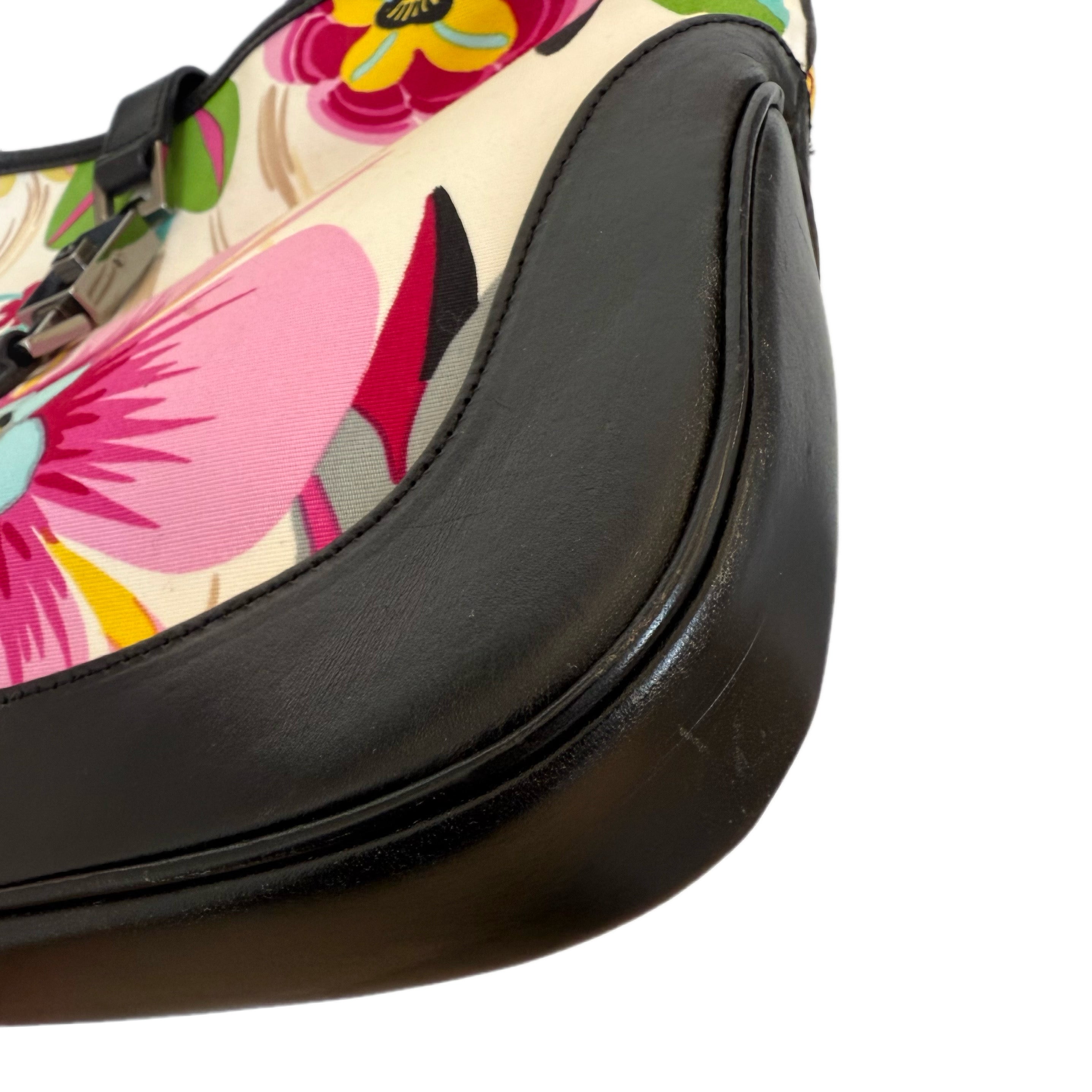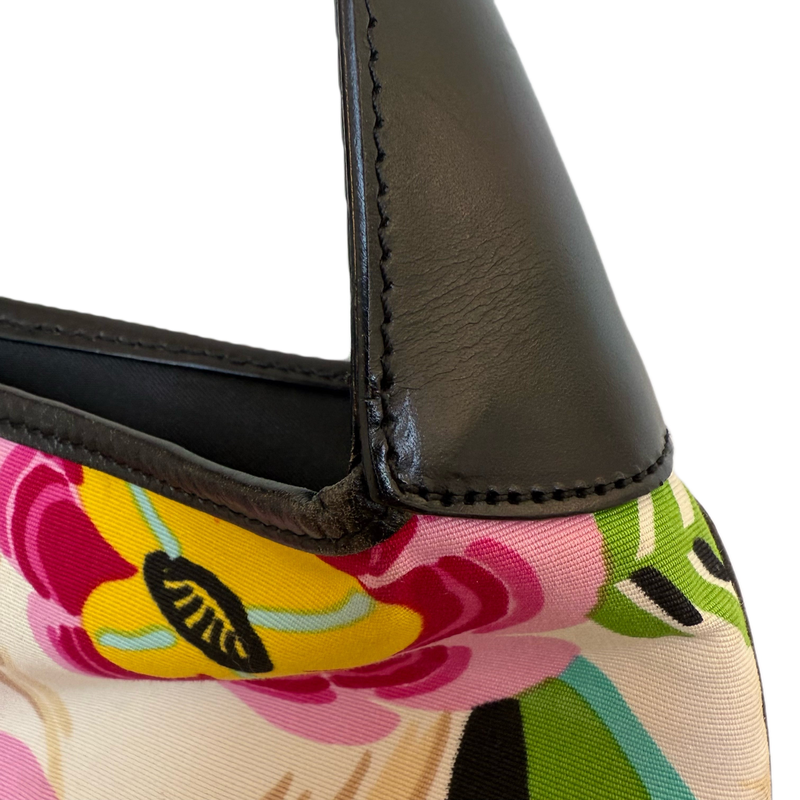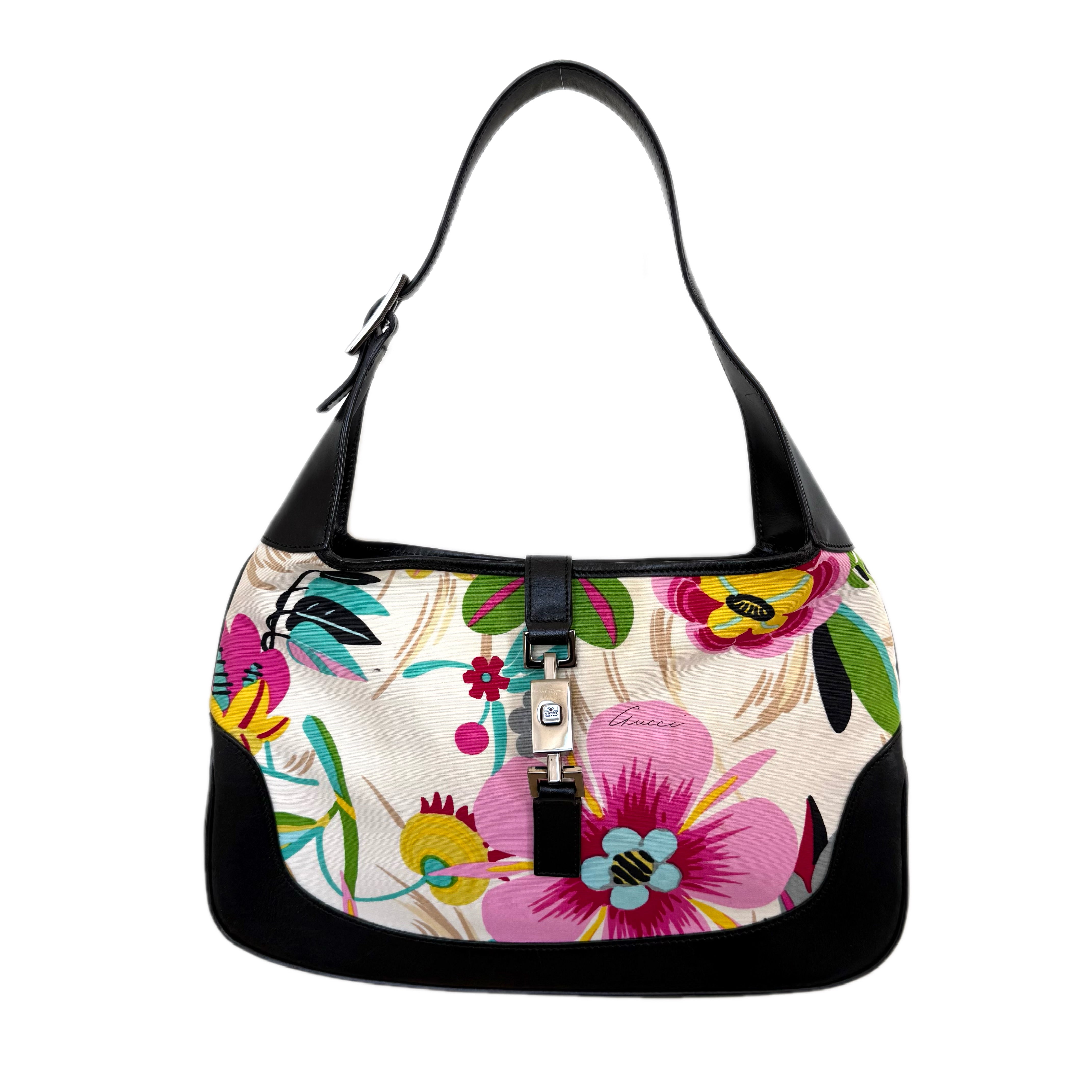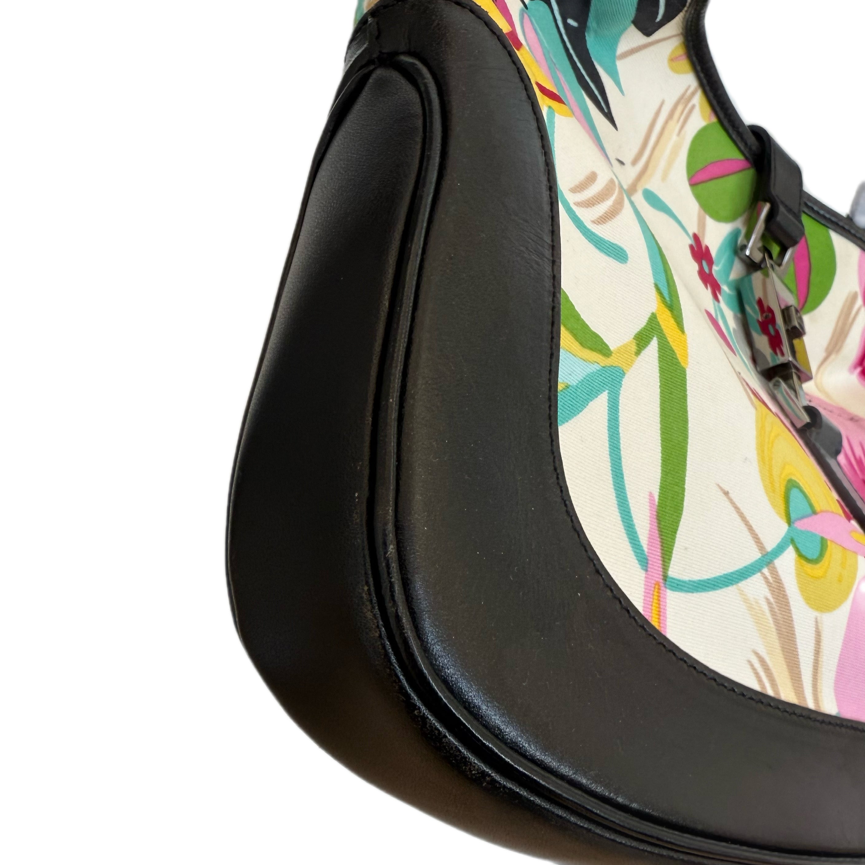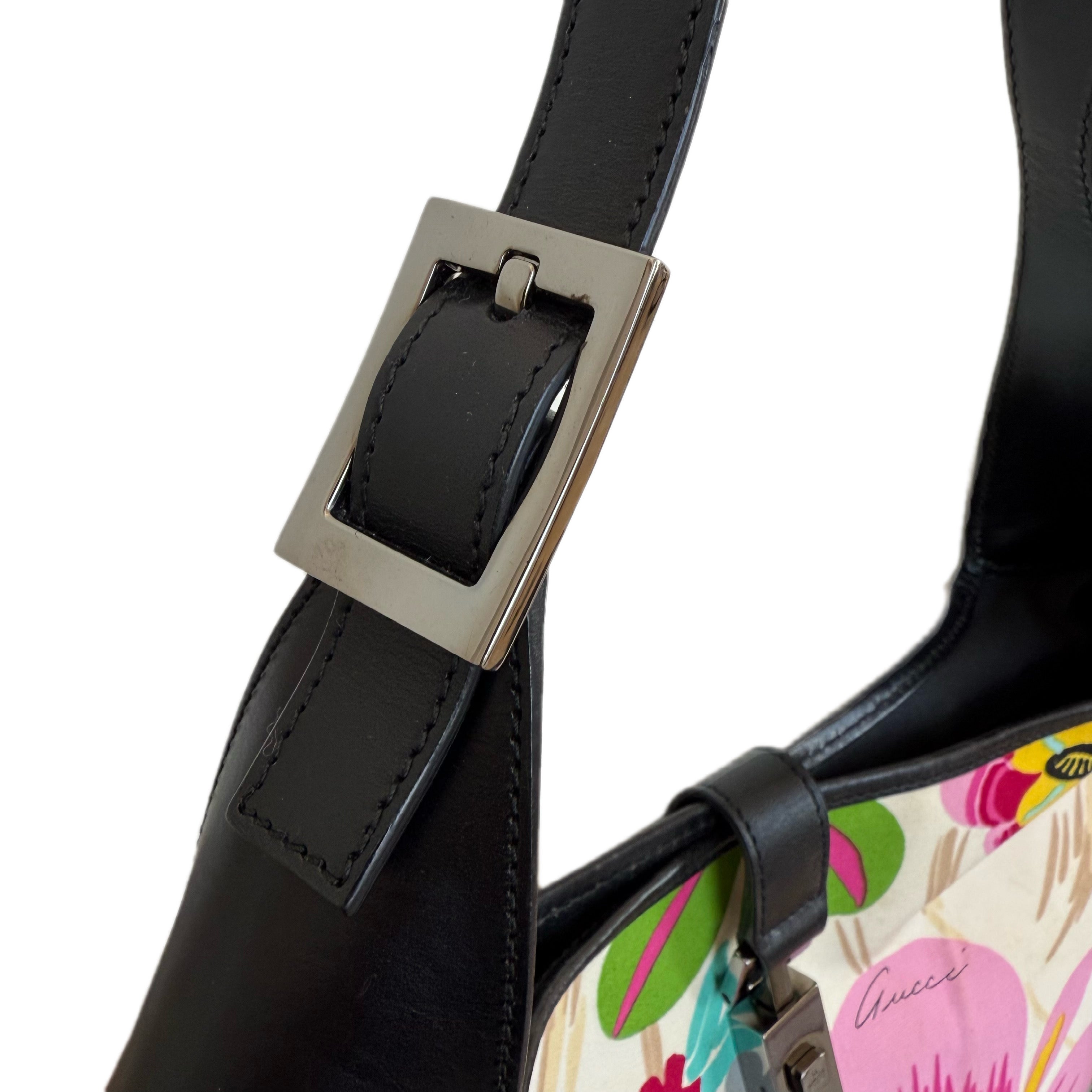 Gucci Tom Ford–Era Jackie Floral-Print Canvas Shoulder Bag with Black Leather Trim