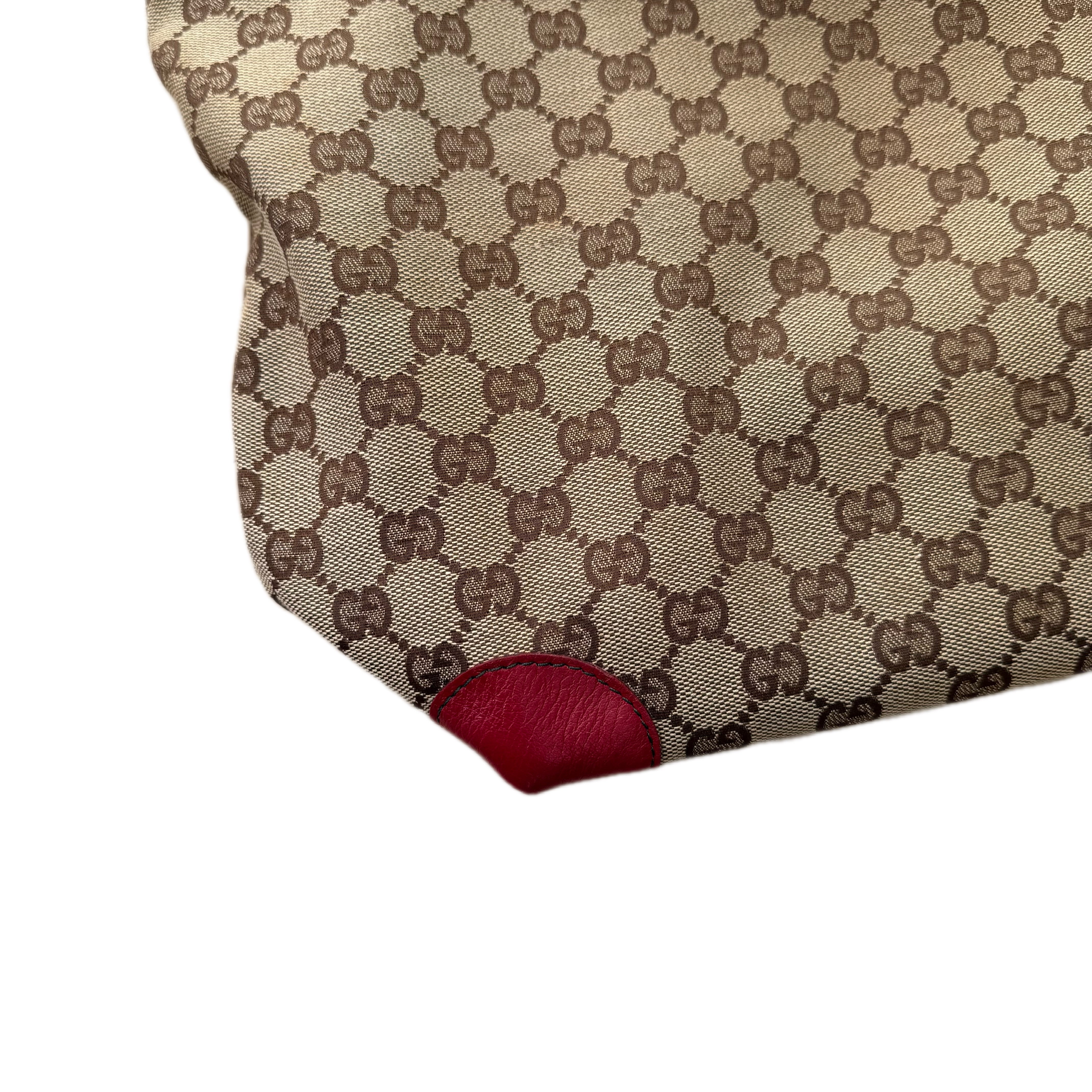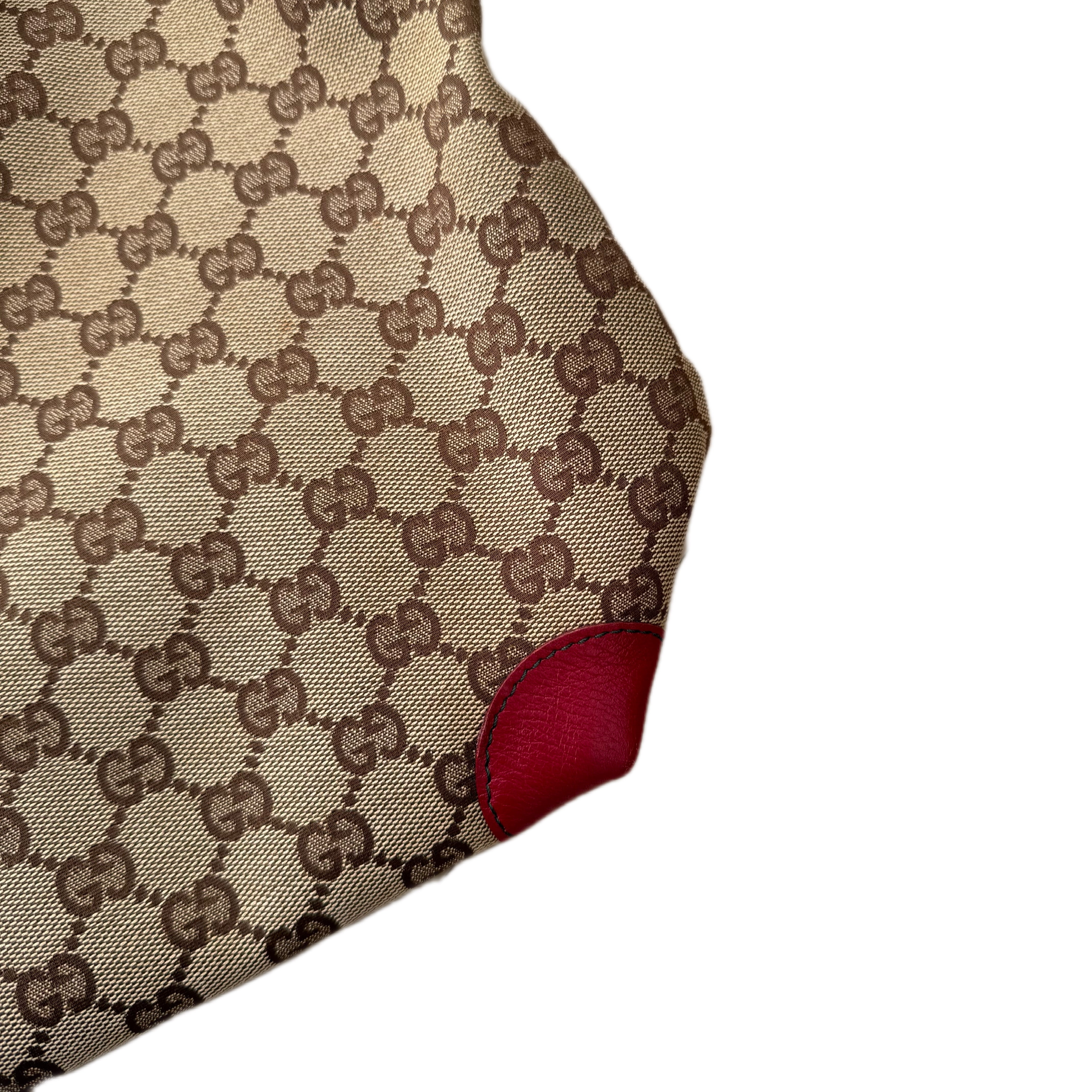 Gucci GG Canvas & Leather Tote Bag with Bamboo Handles and Red Leather Accents