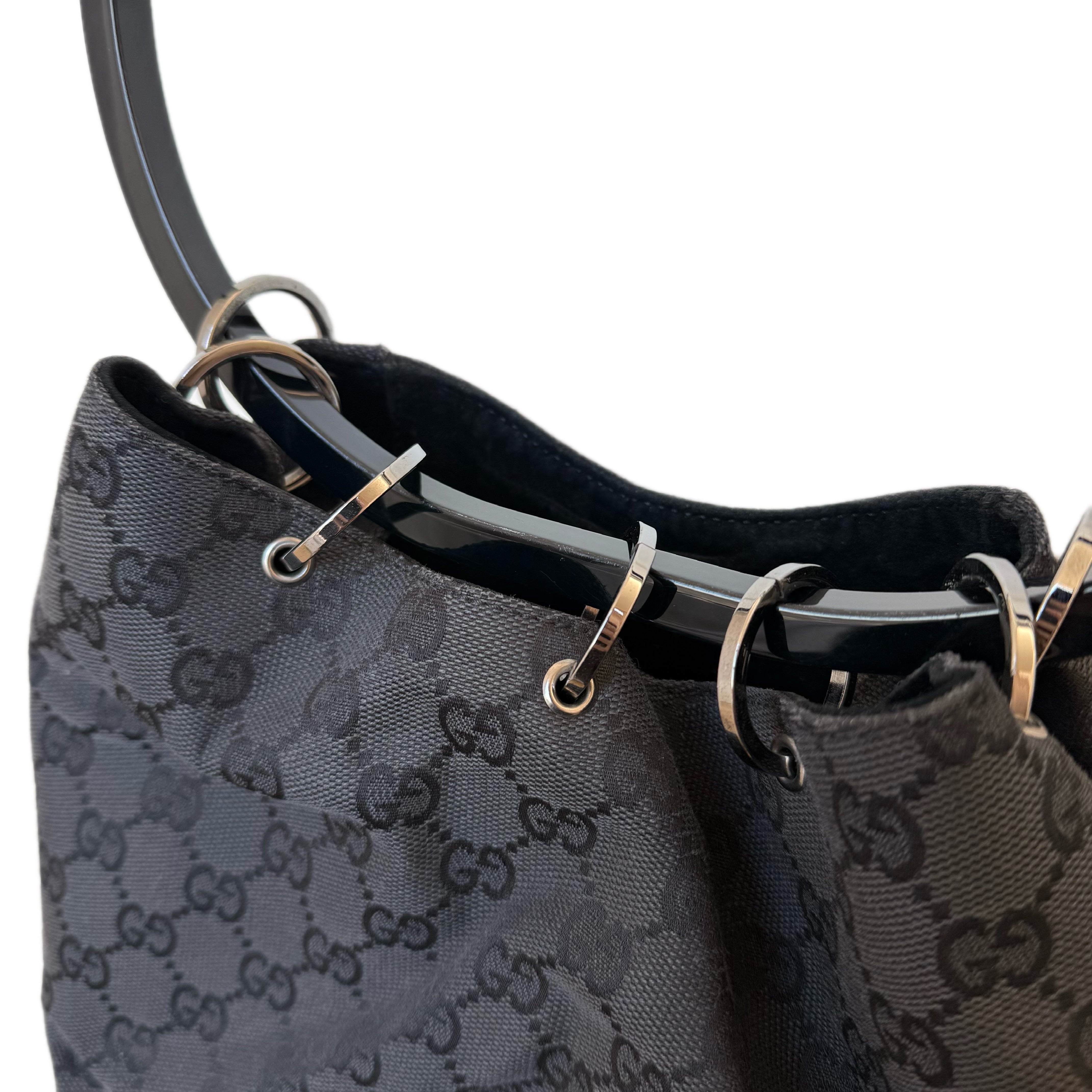 Gucci Tom Ford Fall 1999 Black GG Canvas Bucket Bag with Acrylic Ring Handle