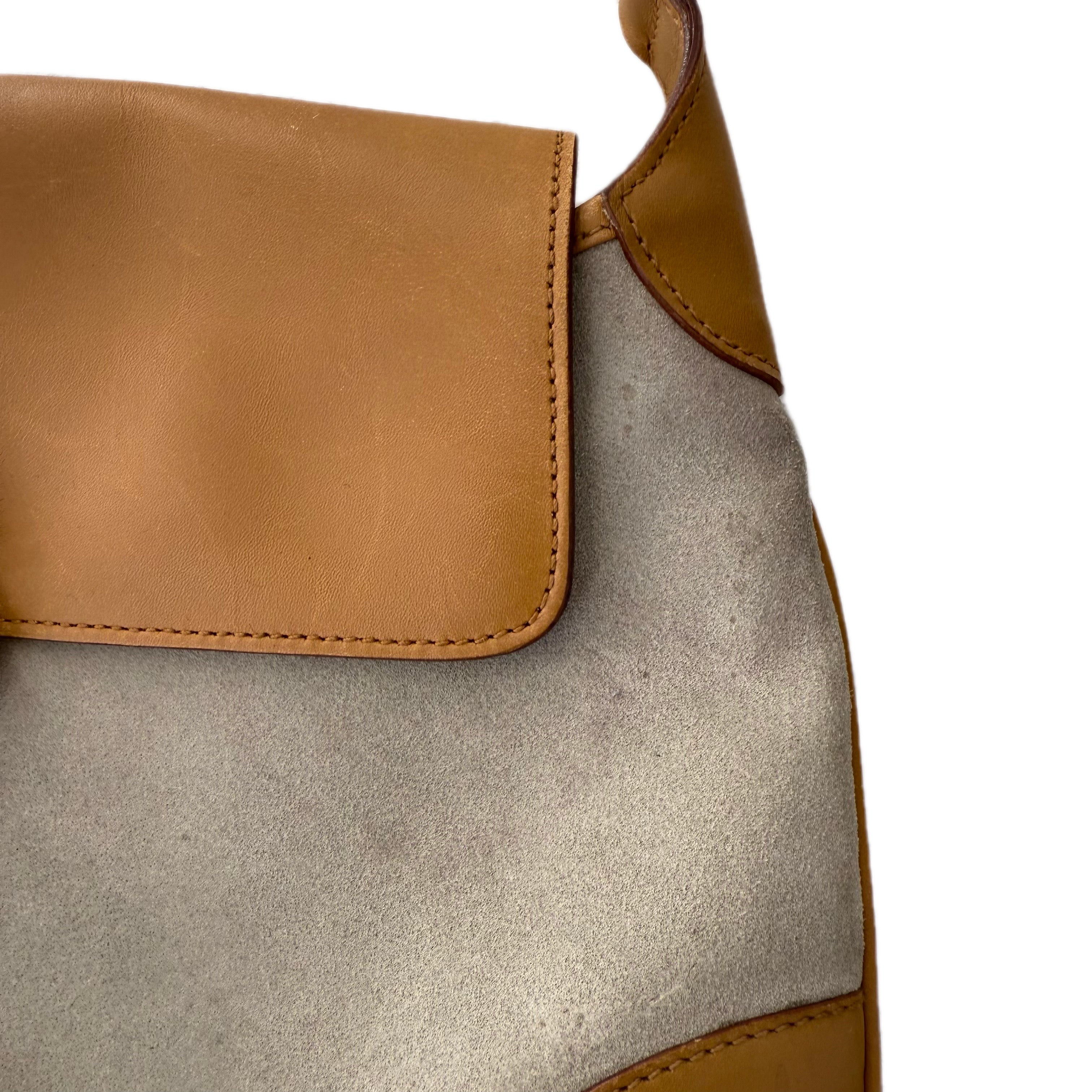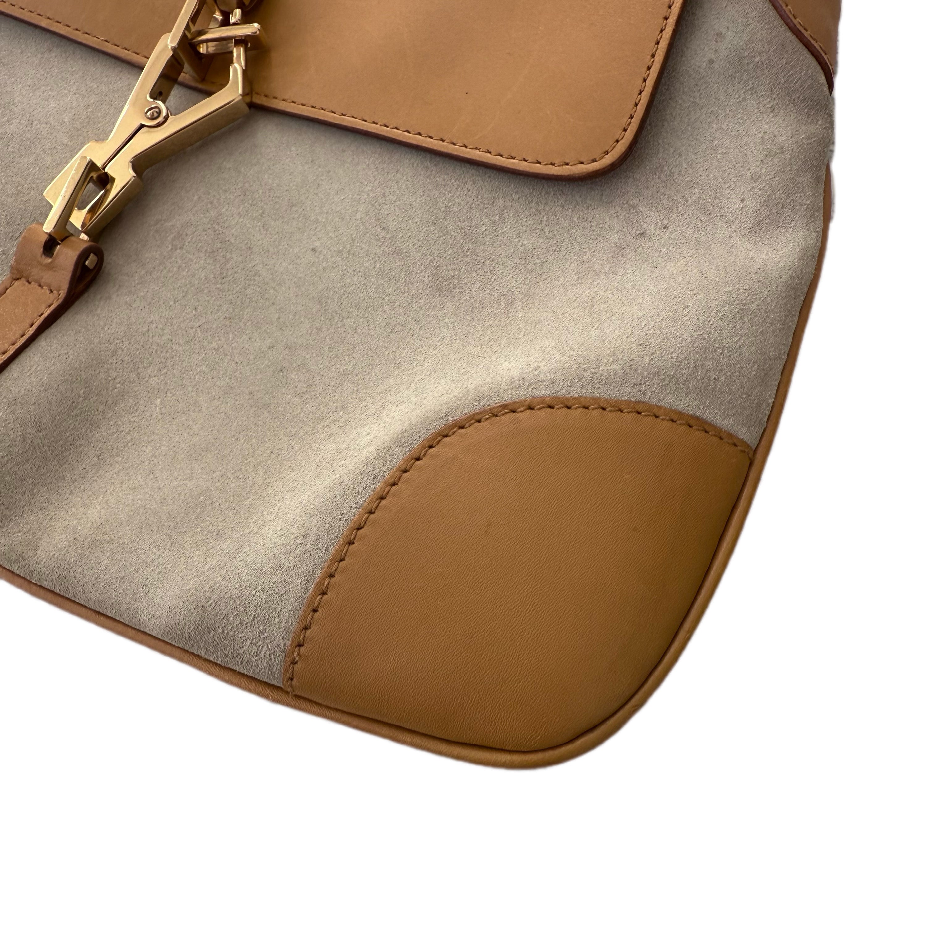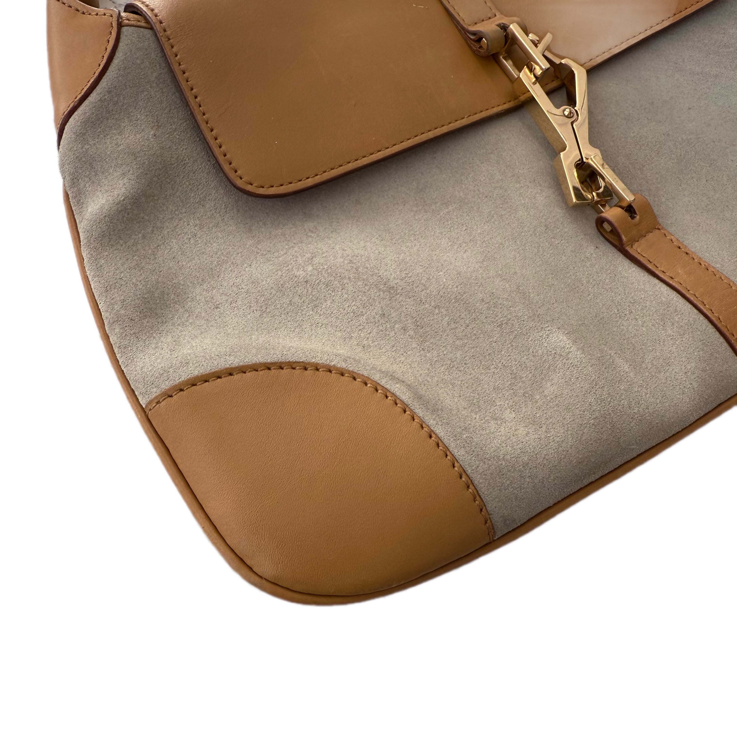 Gucci Bamboo Jackie Shoulder Bag in Grey Suede and Tan Leather with Gold-Tone Hardware