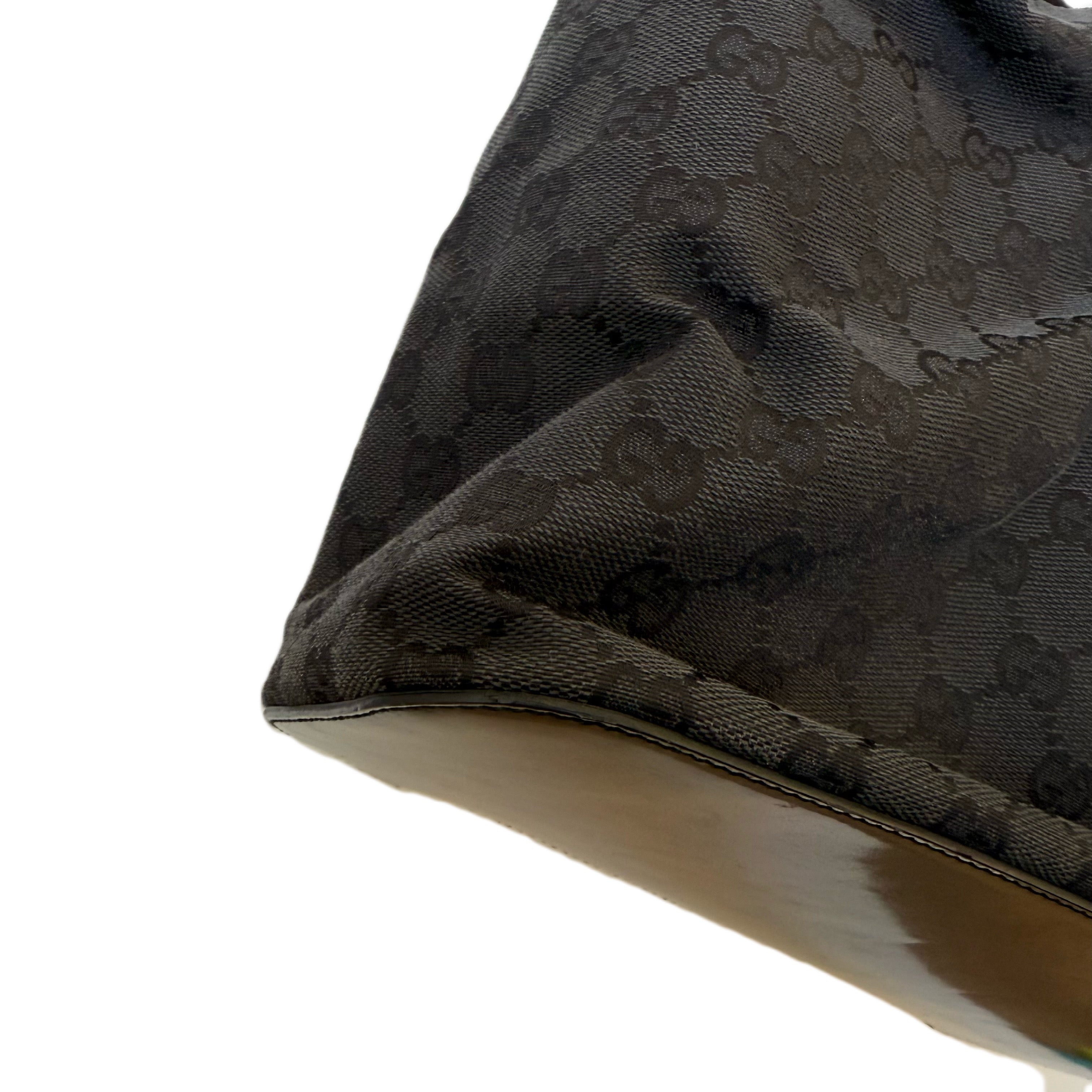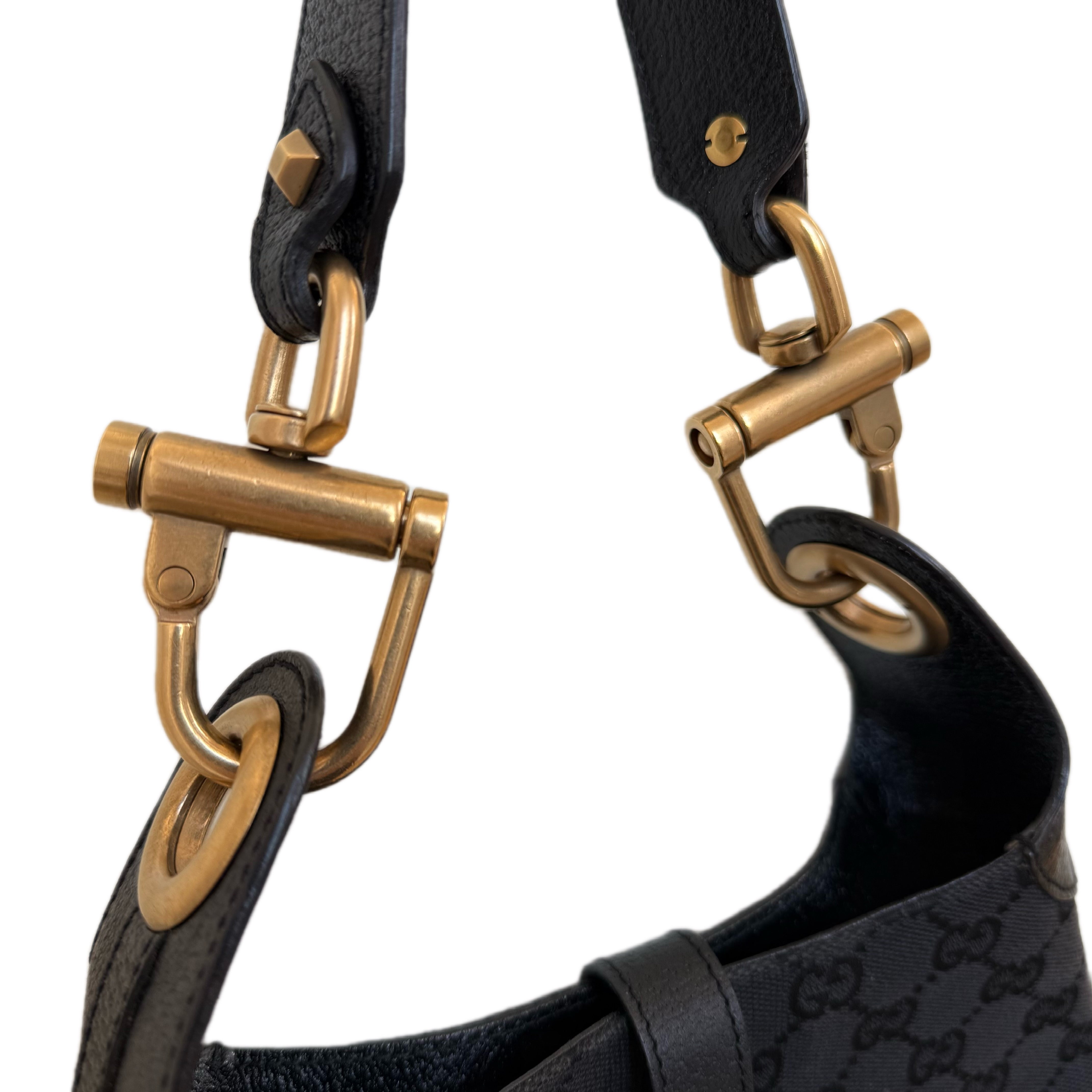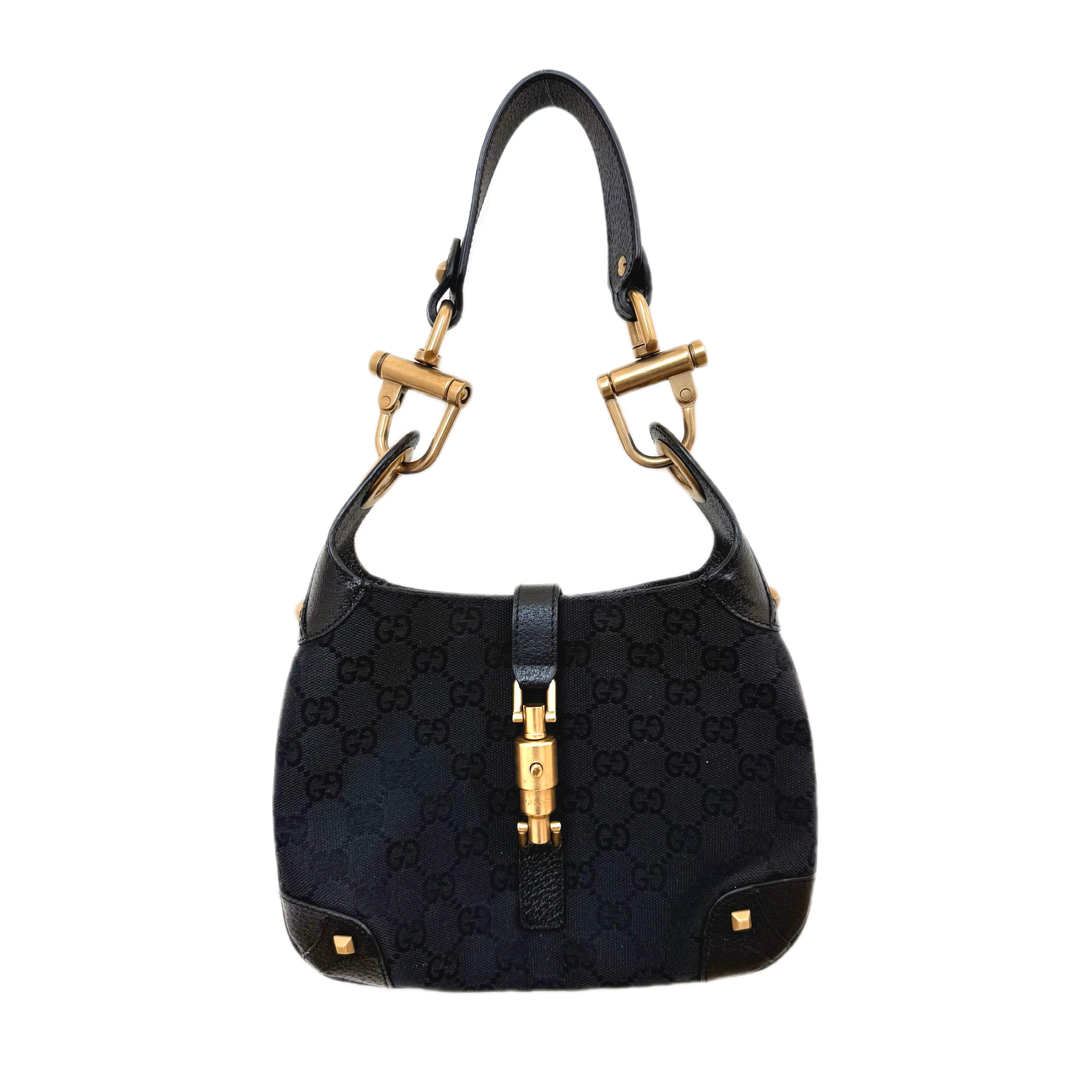 Gucci Small Jackie Nailhead Hobo Bag in Black GG Canvas with Leather Trim and Gold-Tone Hardware