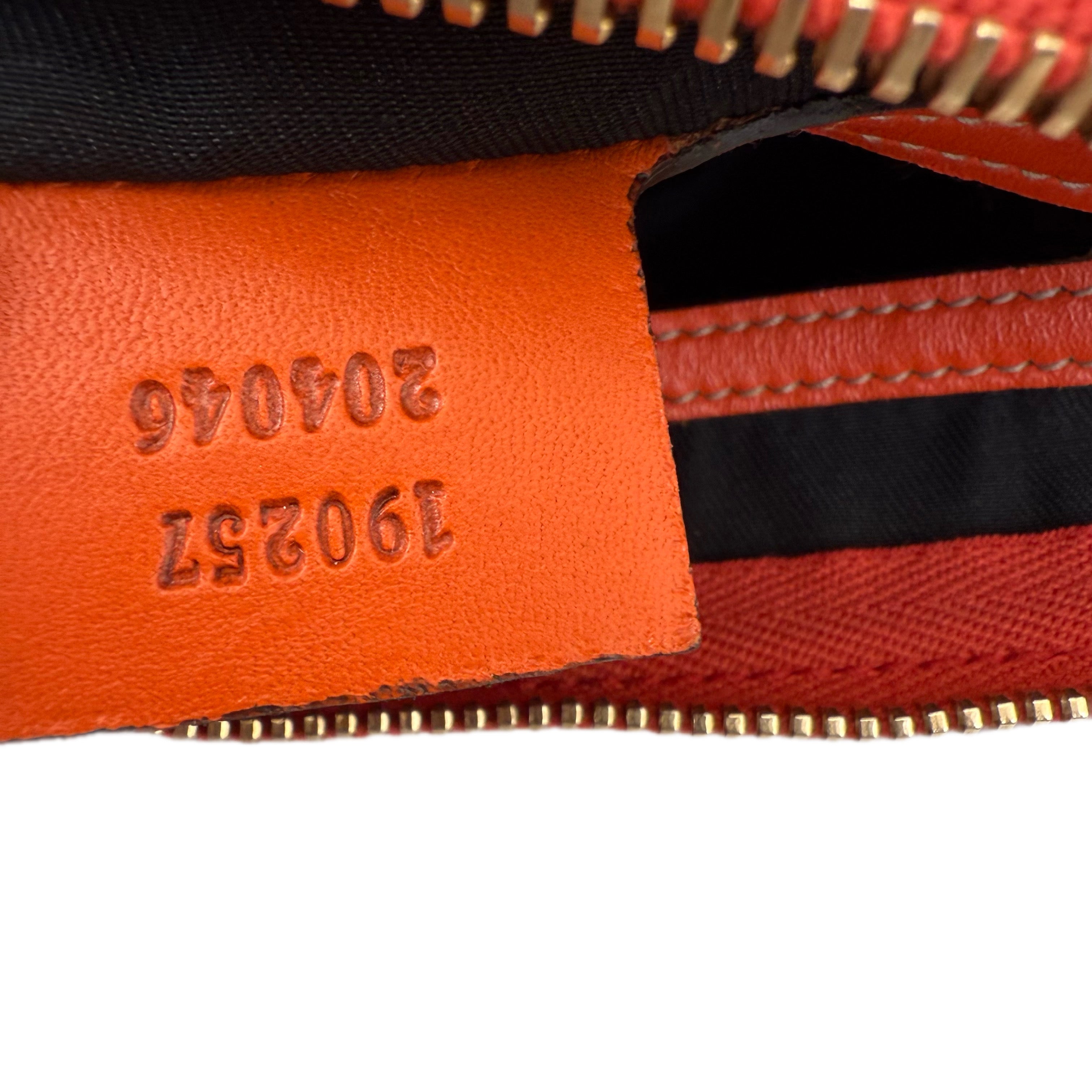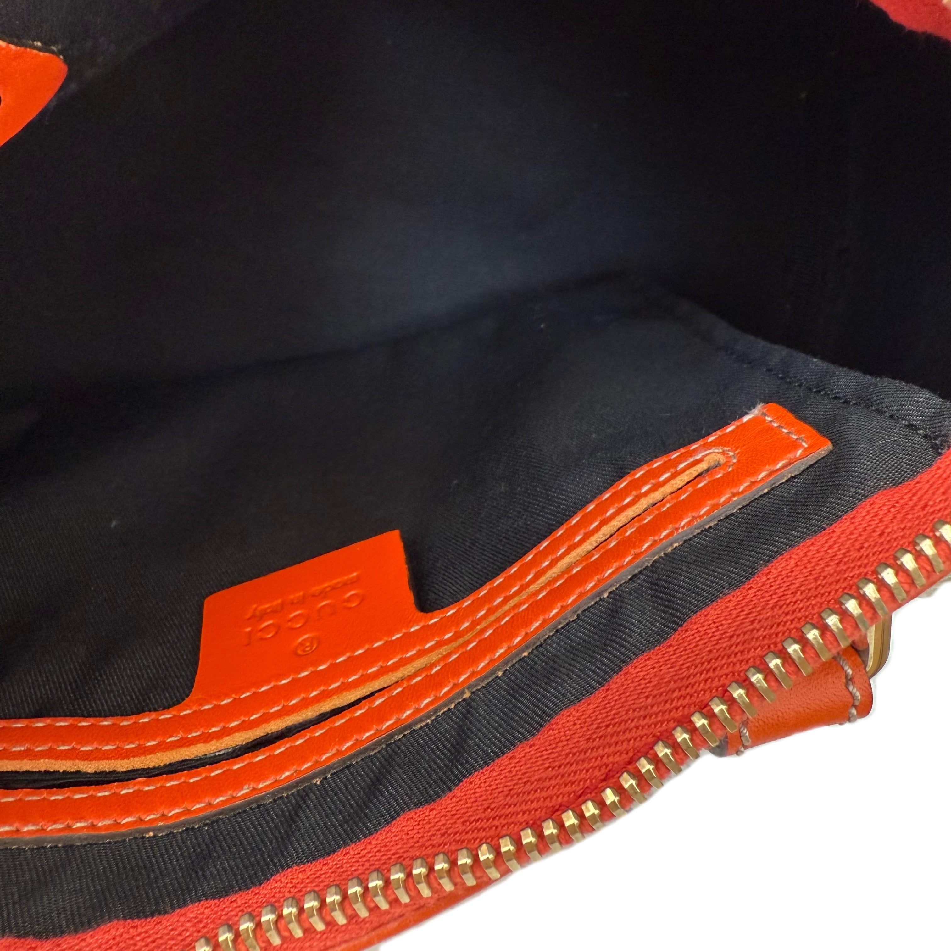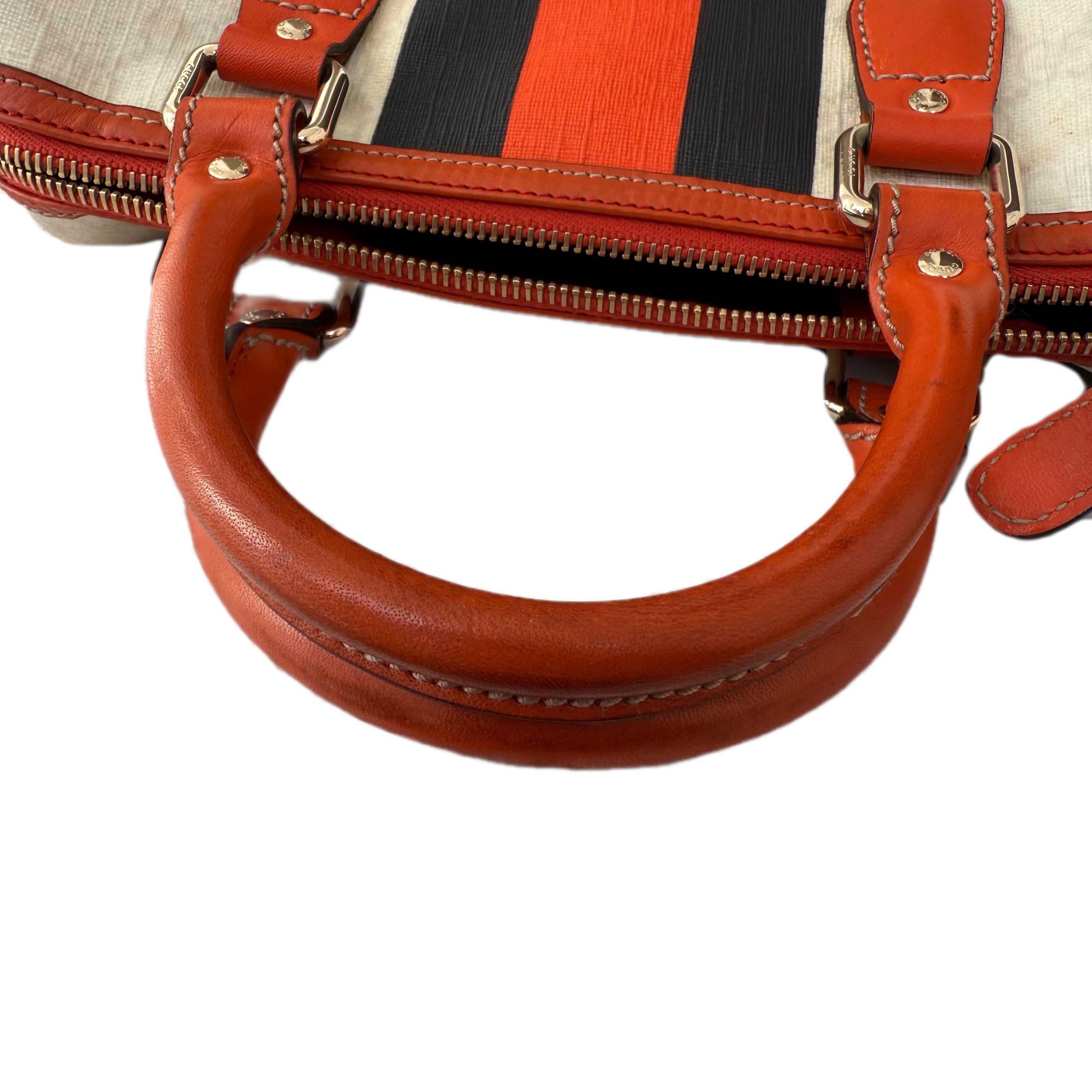 Gucci GG Joy Small Boston Bag in White Canvas with Orange & Black Stripe and Orange Leather Trim