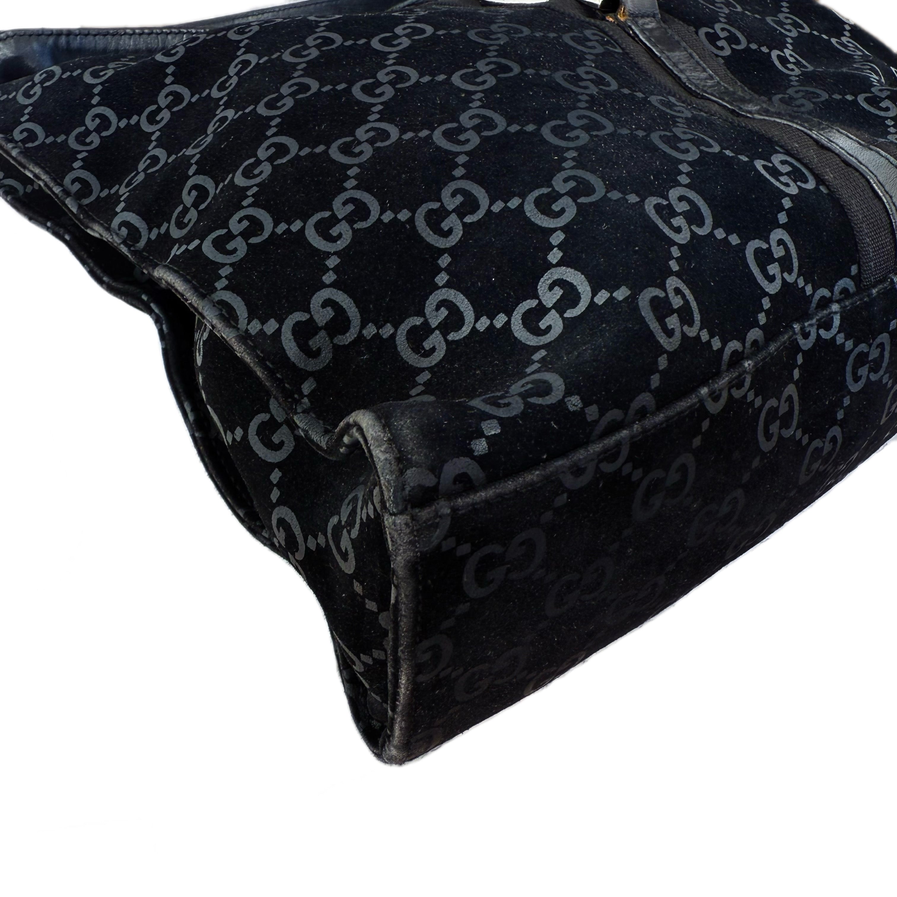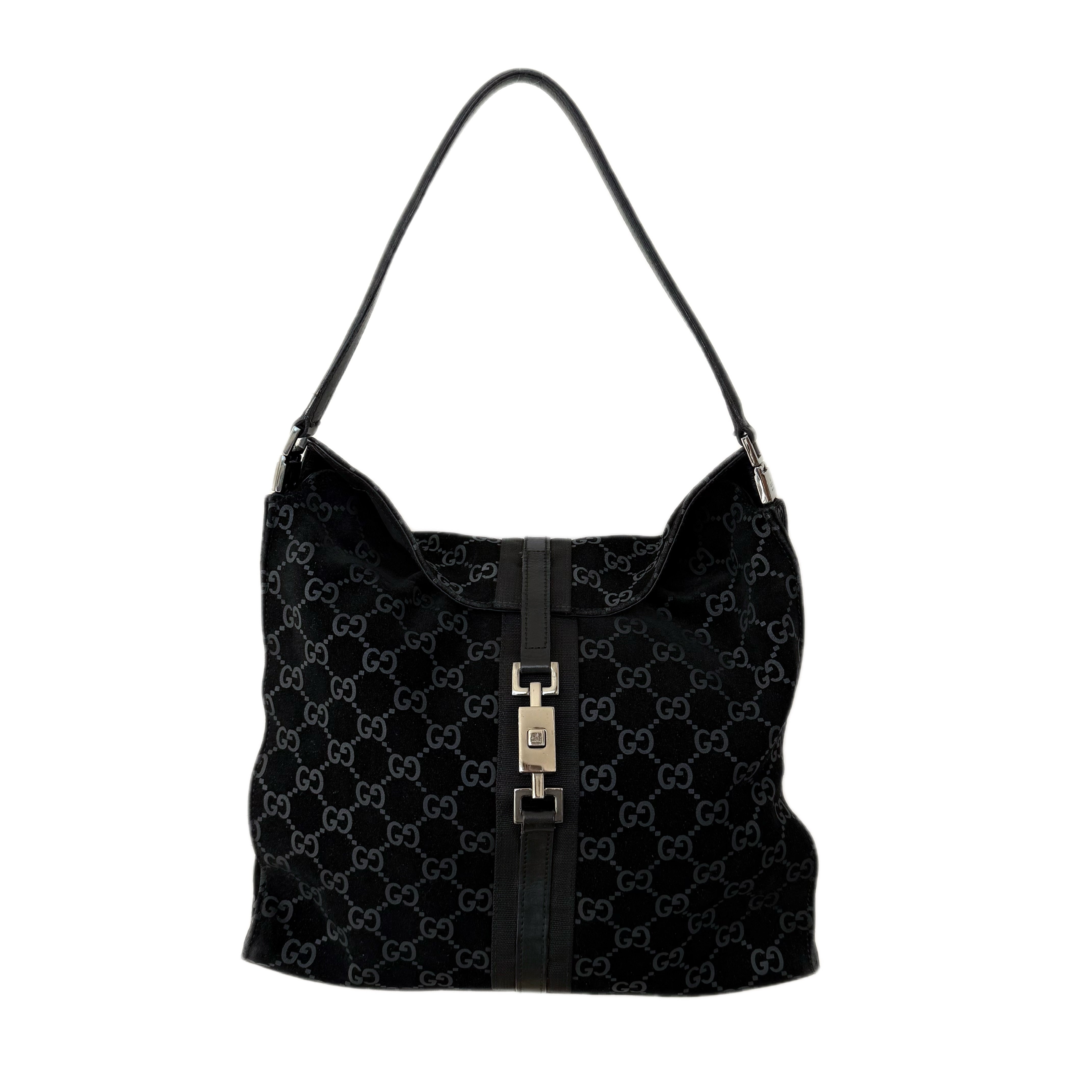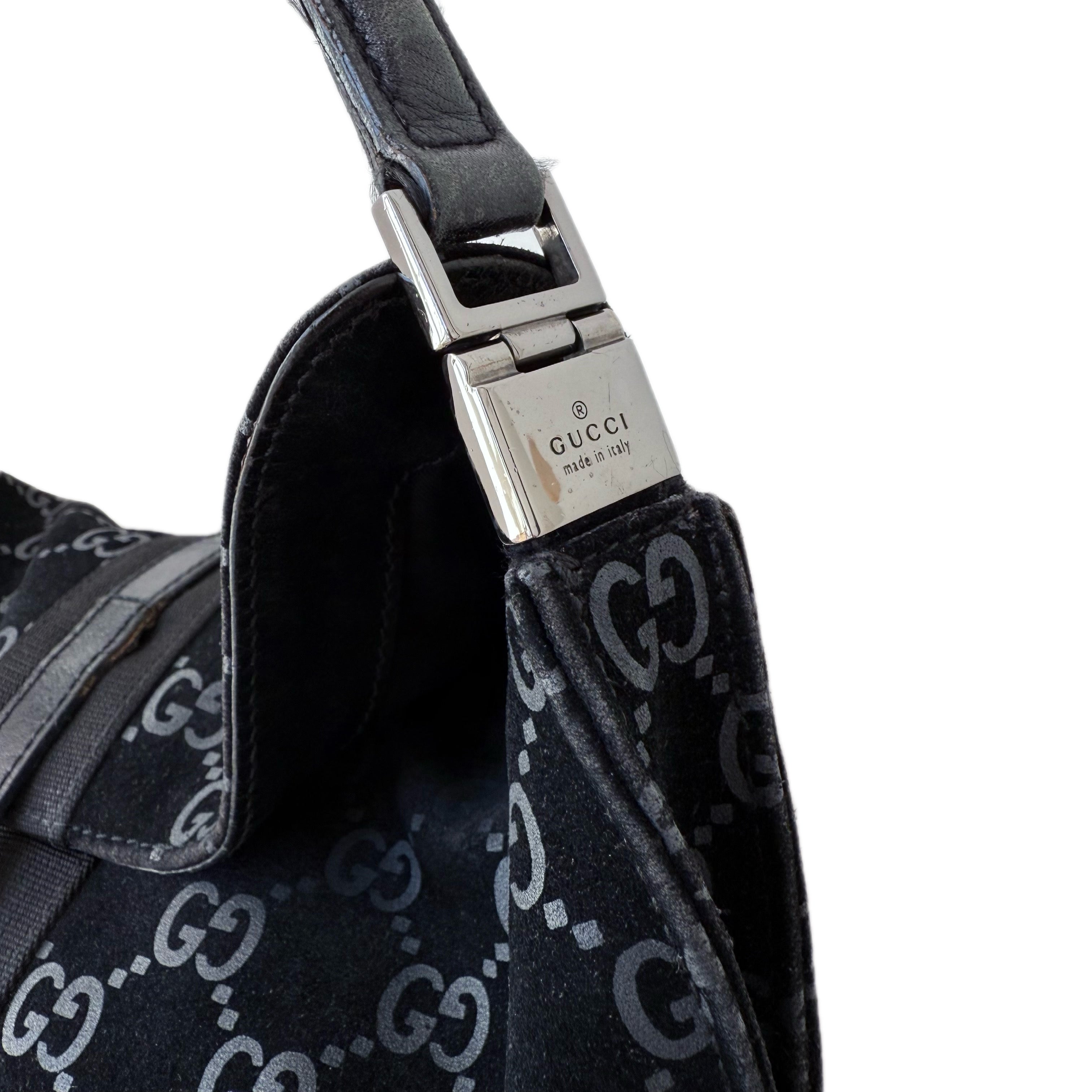 Gucci Tom Ford Era Jackie Shoulder Bag in Black GG Suede with Leather Trim and Silver-Tone Hardware