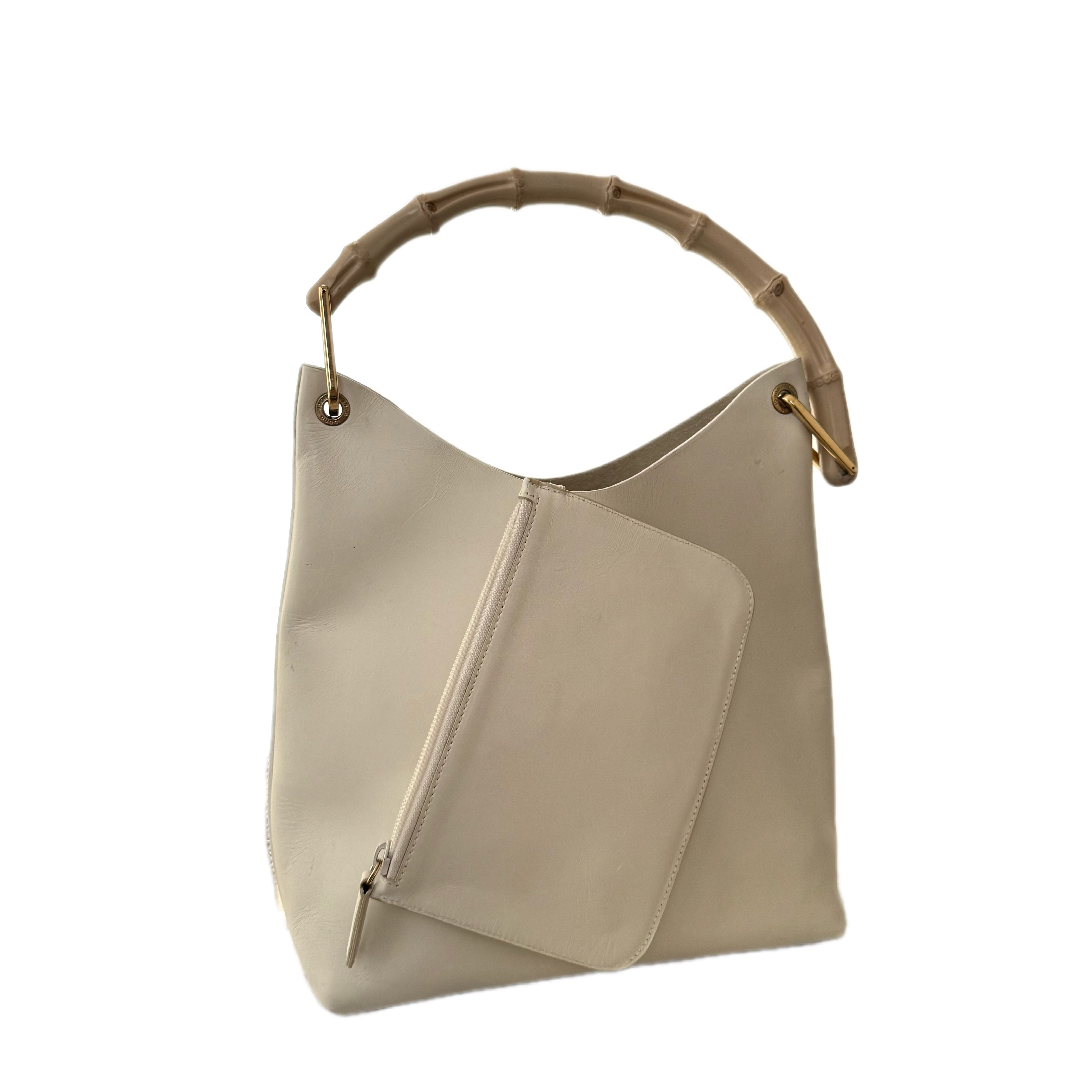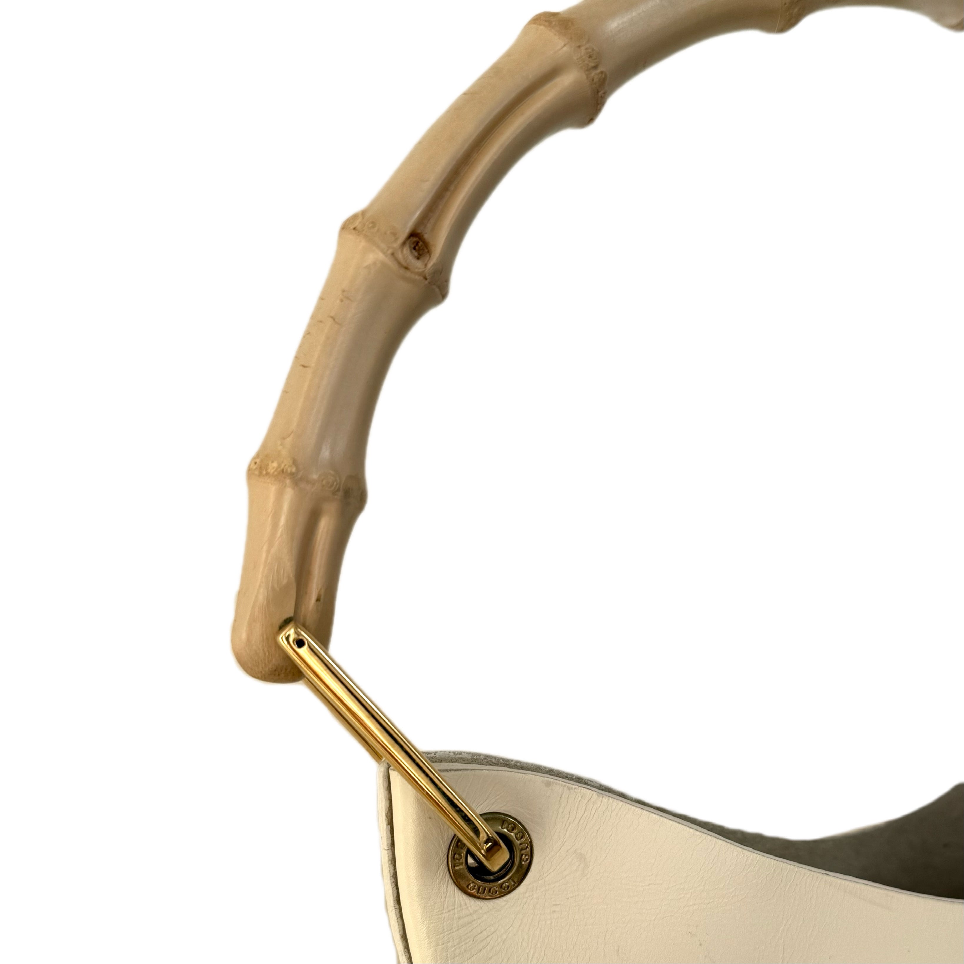 Gucci Beige leather bamboo handle shoulder hobo tote bag. Timeless iconic silhouette with heritage craftsmanship.