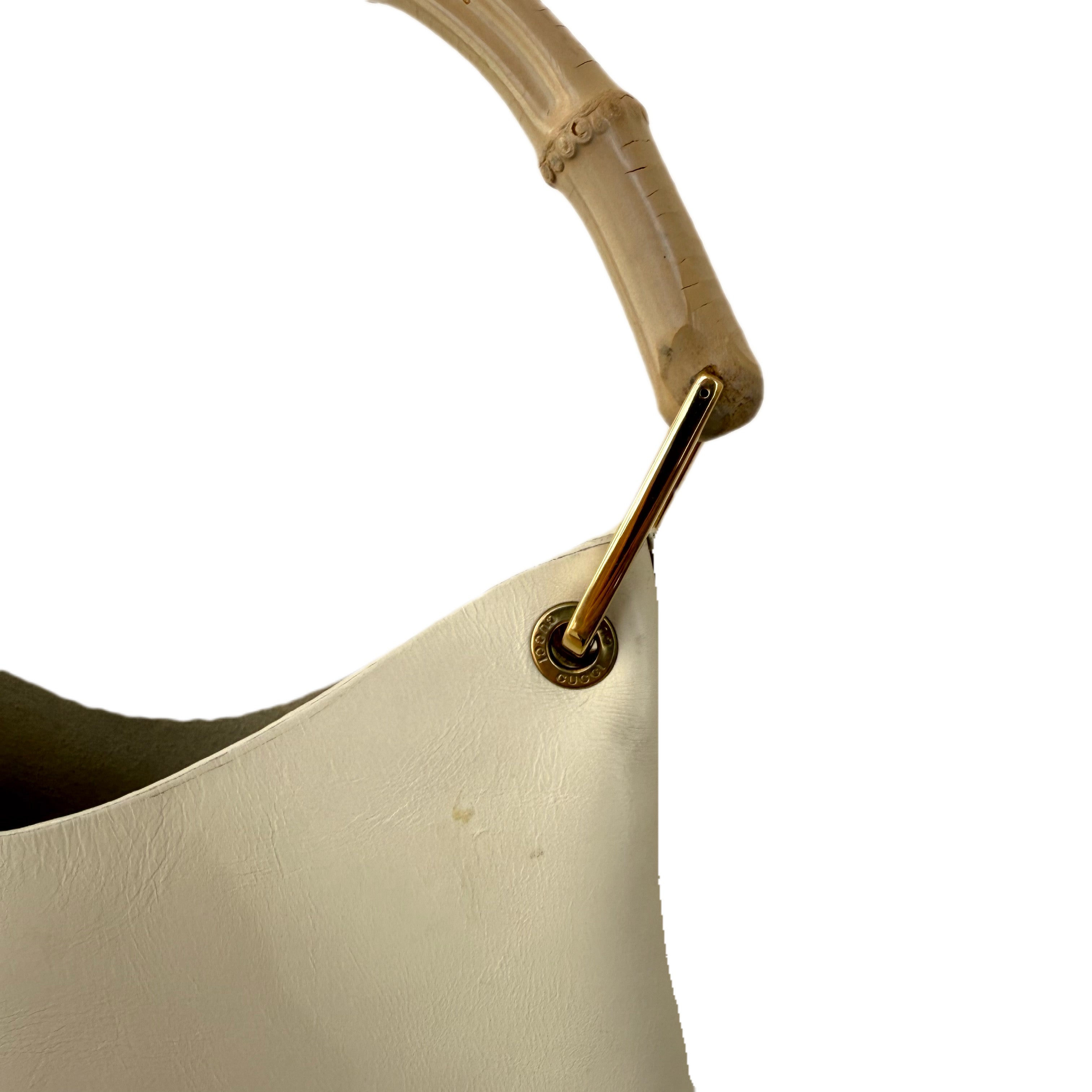 Gucci Beige Leather Bamboo Handle Shoulder Hobo Tote Bag