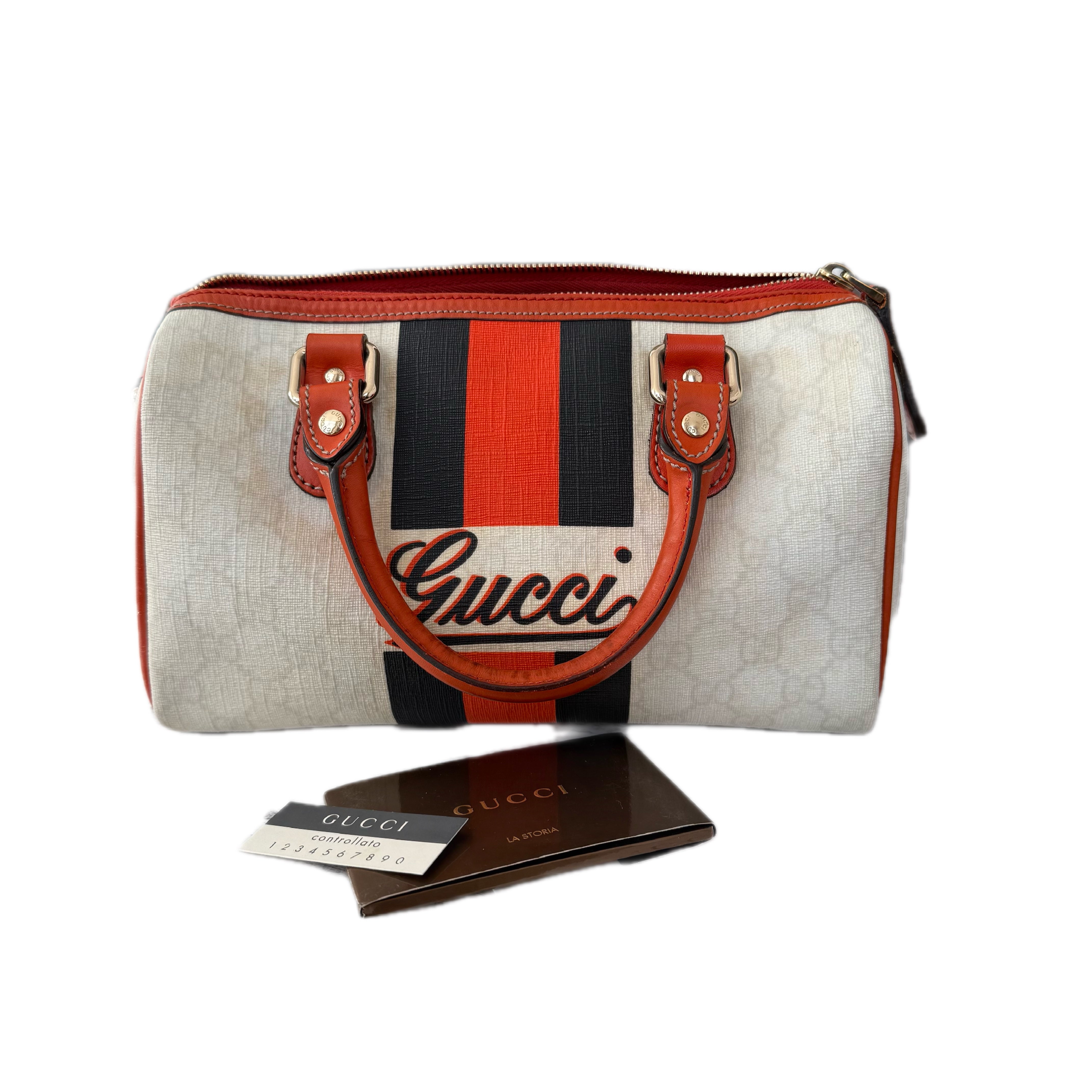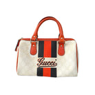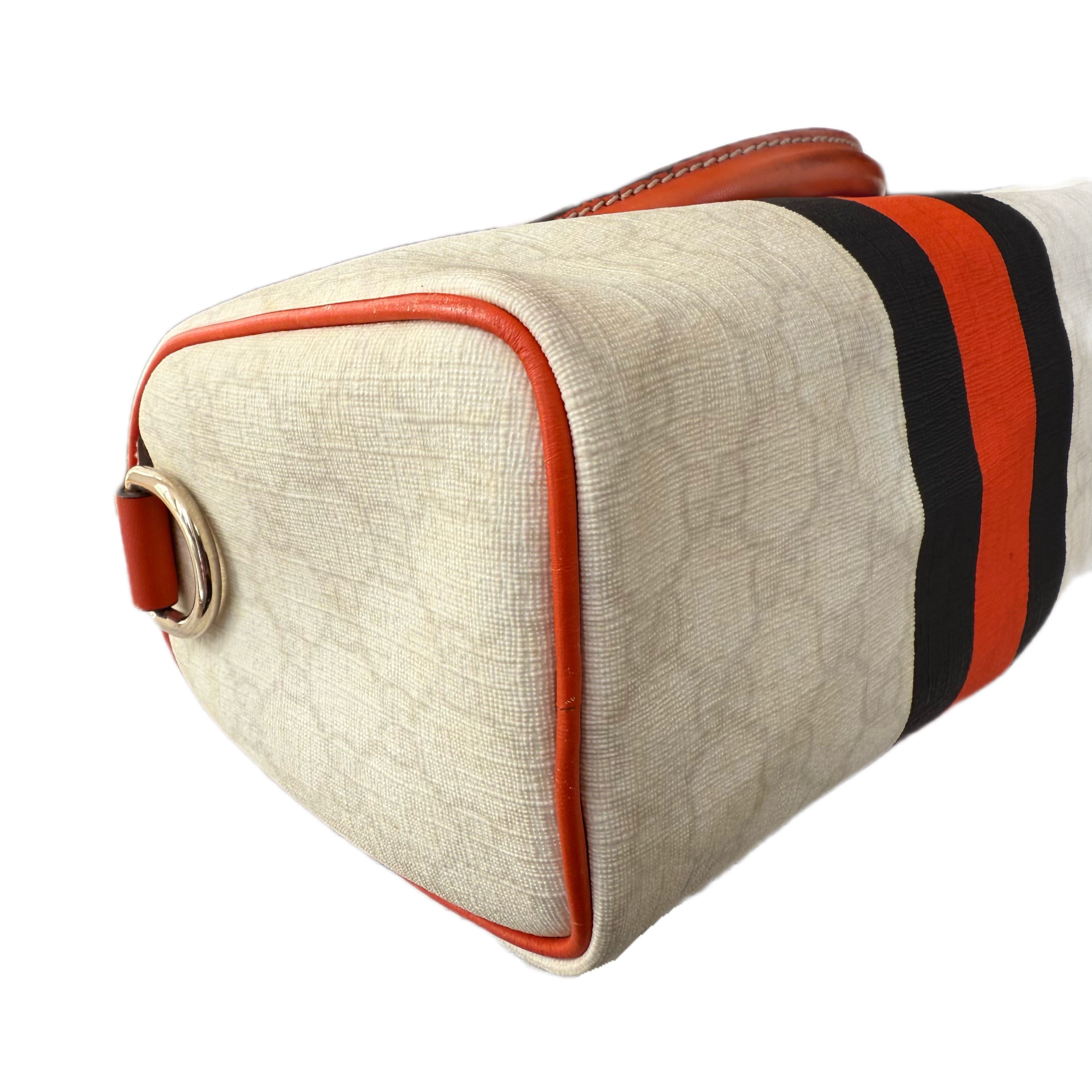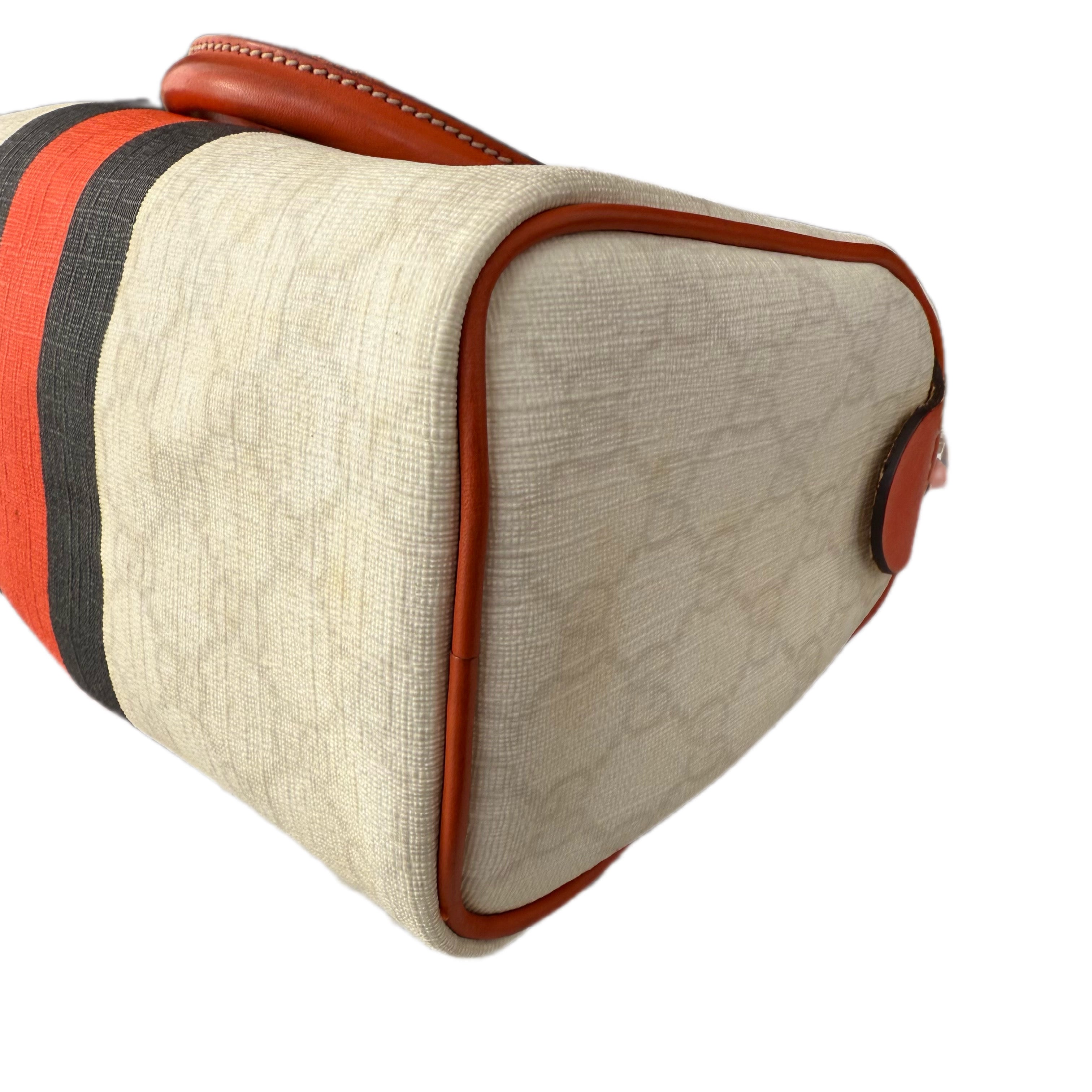 Gucci GG Joy Small Boston Bag in White Canvas with Orange & Black Stripe and Orange Leather Trim