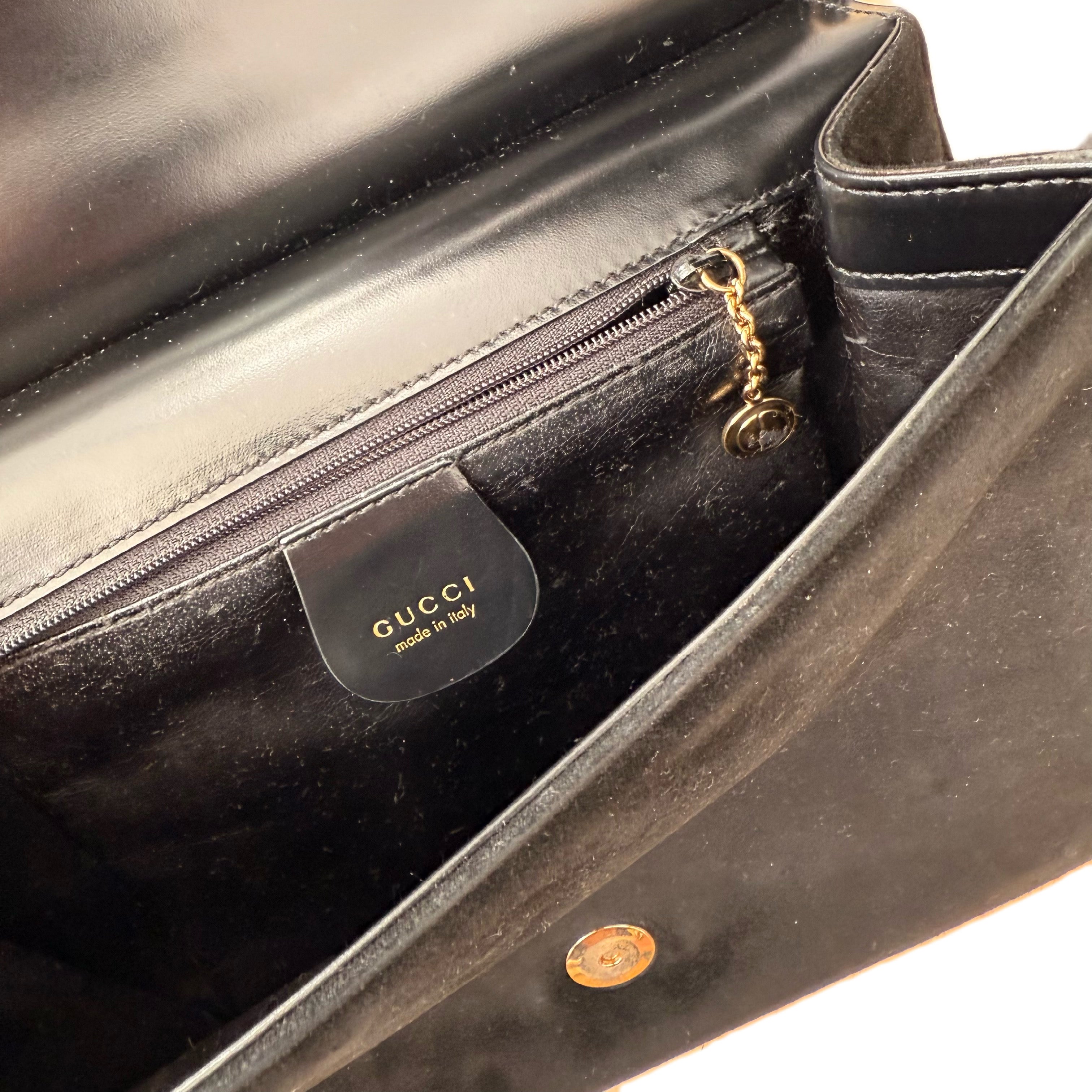 Vintage Gucci Black Suede Bag with Gold-Tone Frame Hardware