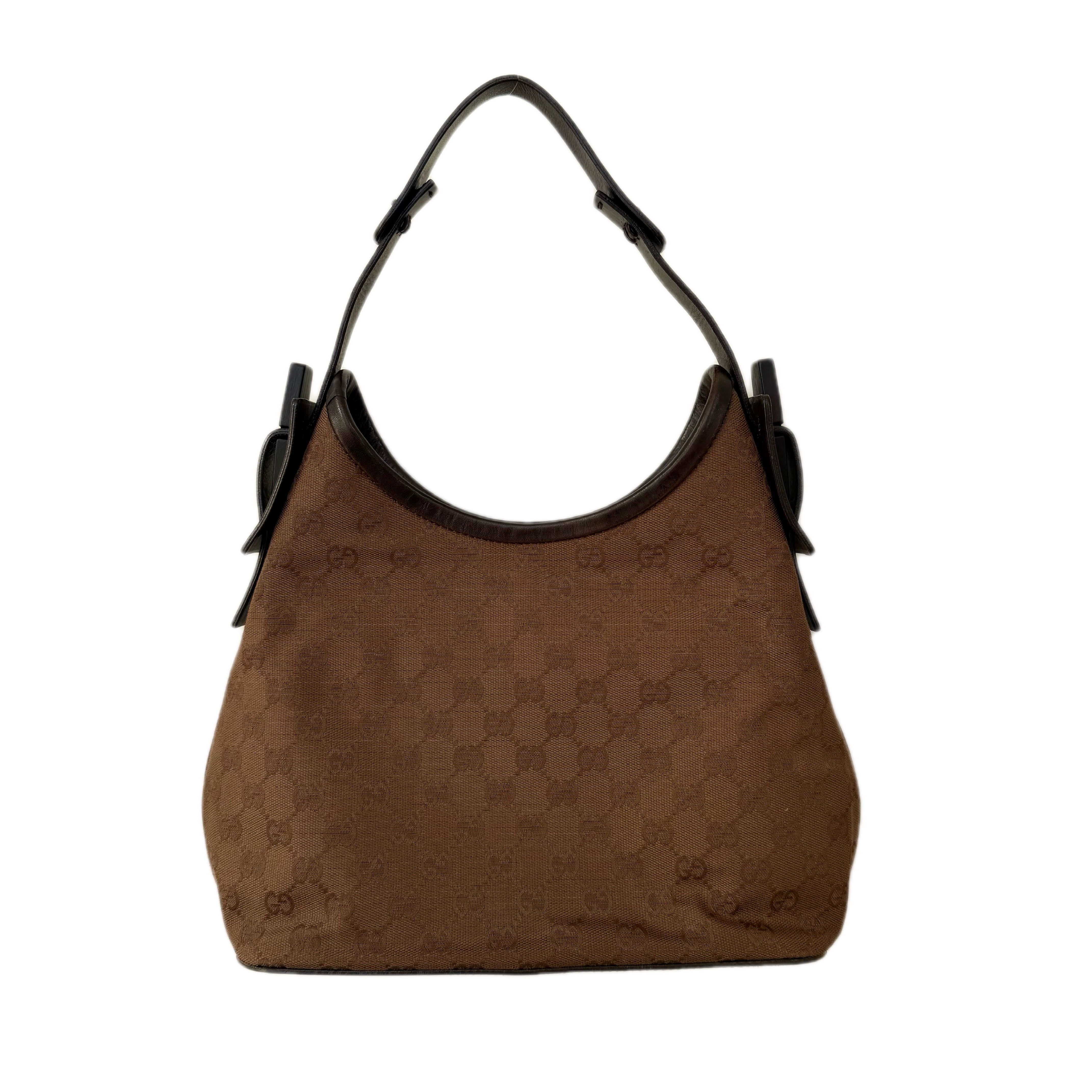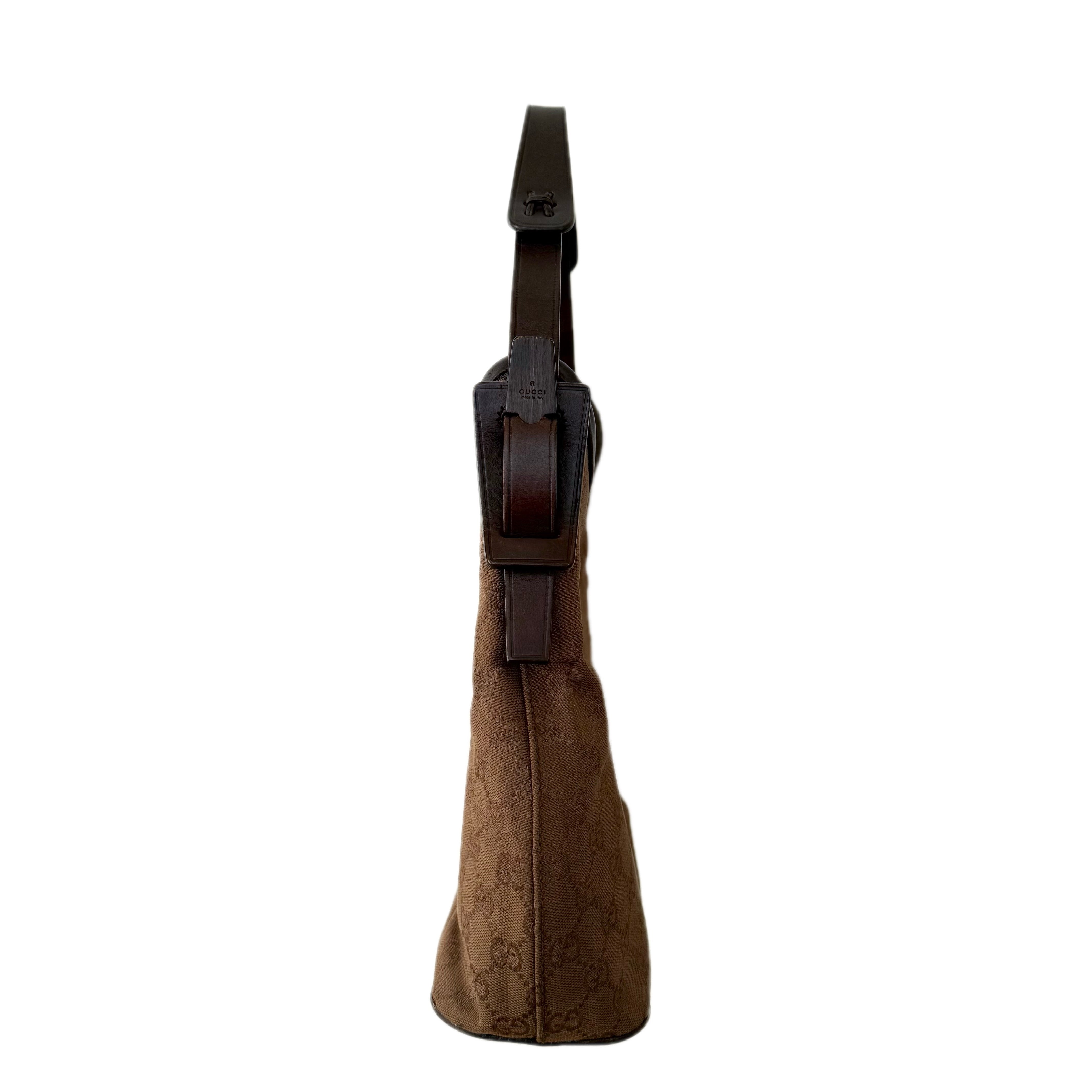 Gucci GG Canvas Hobo Shoulder Bag in Brown with Wooden Handle