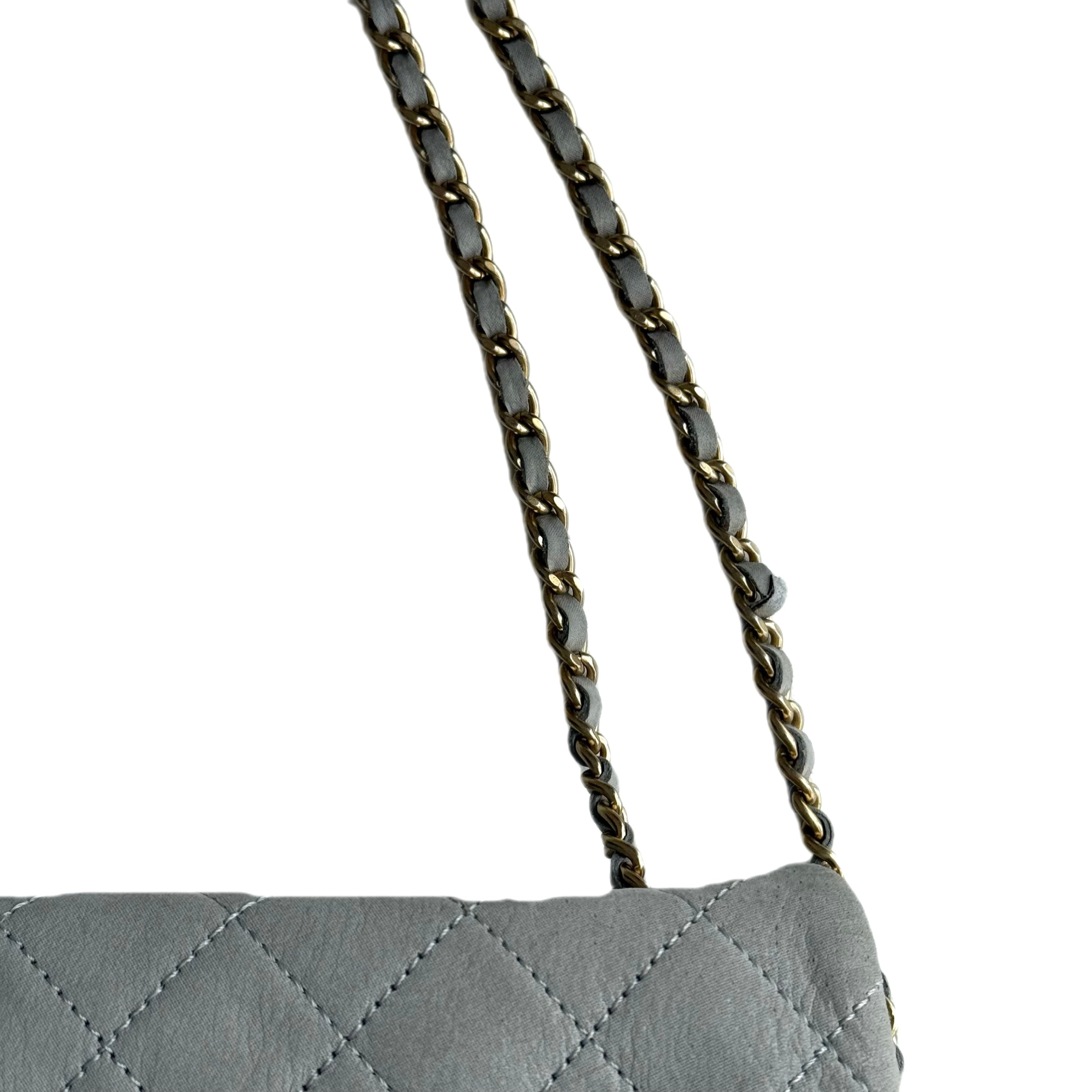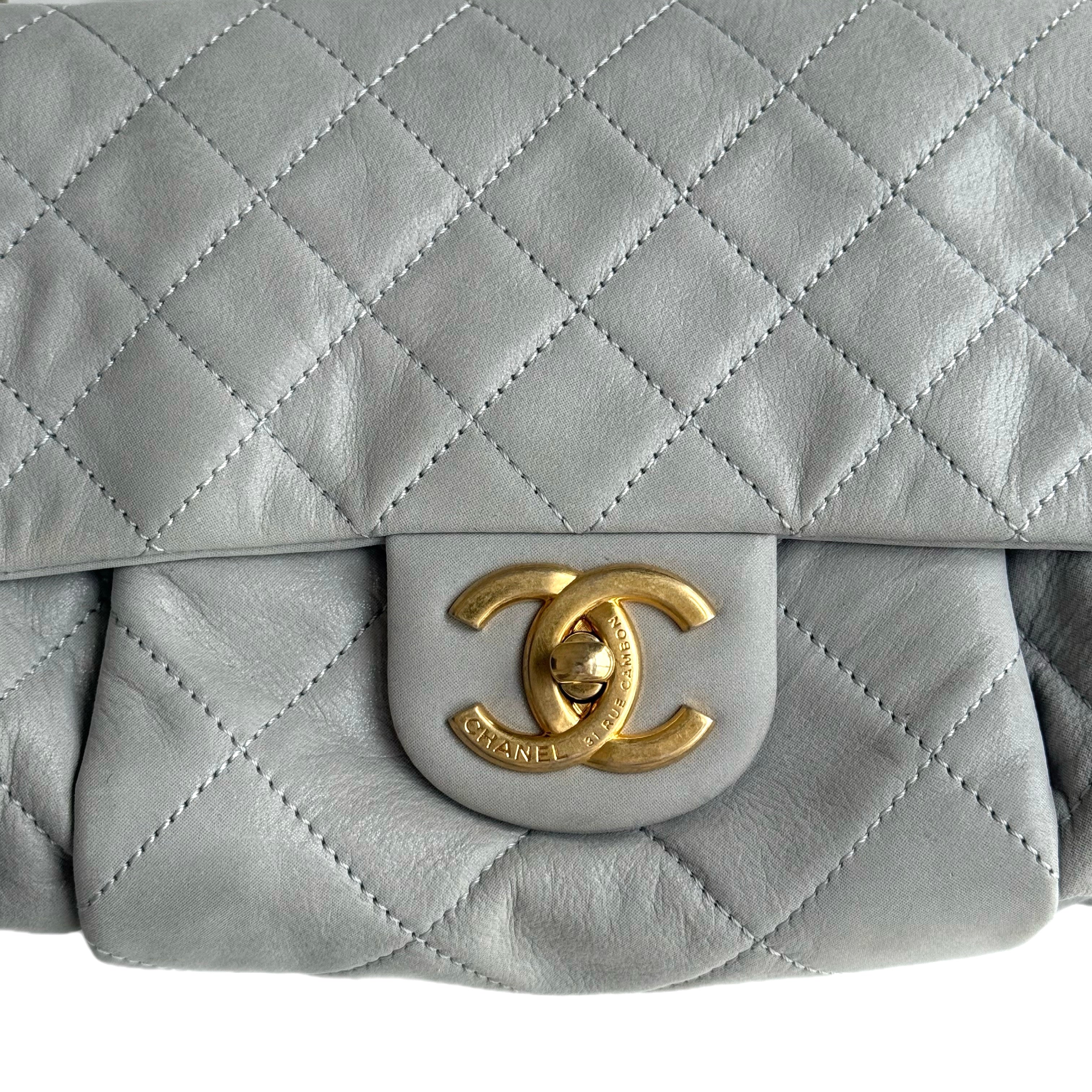 シャネル CC キルティング フラップ ショルダーバッグ グレー ラムスキン