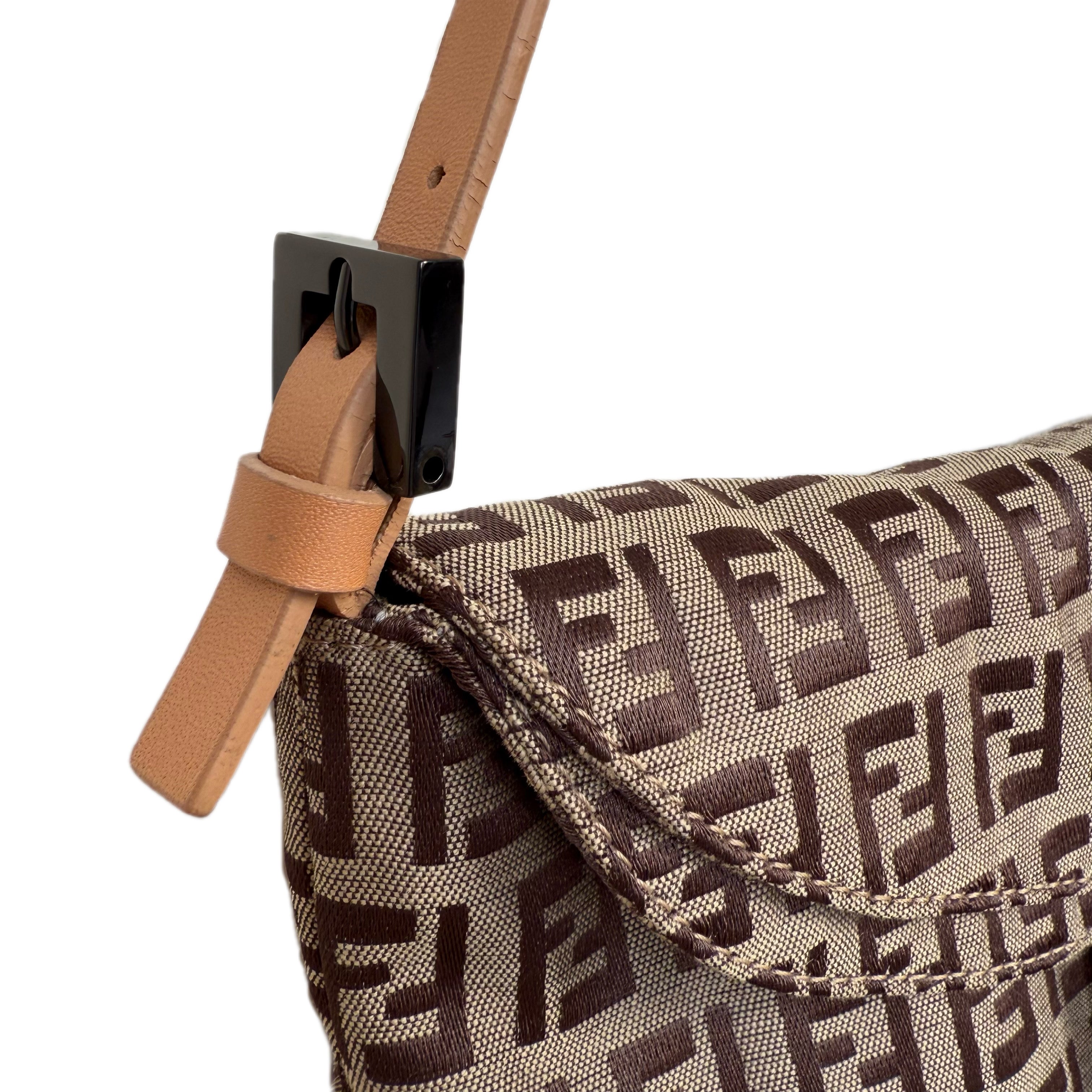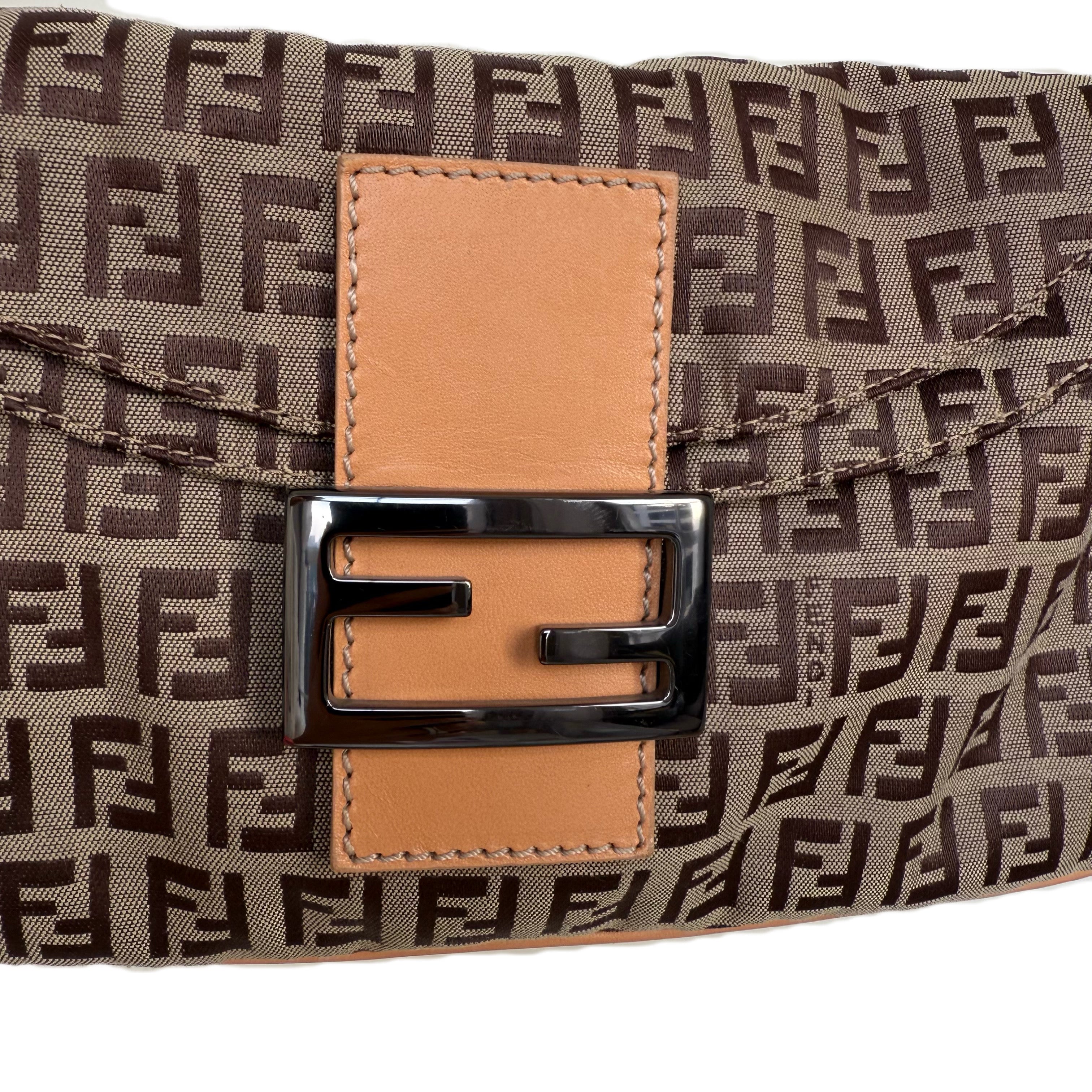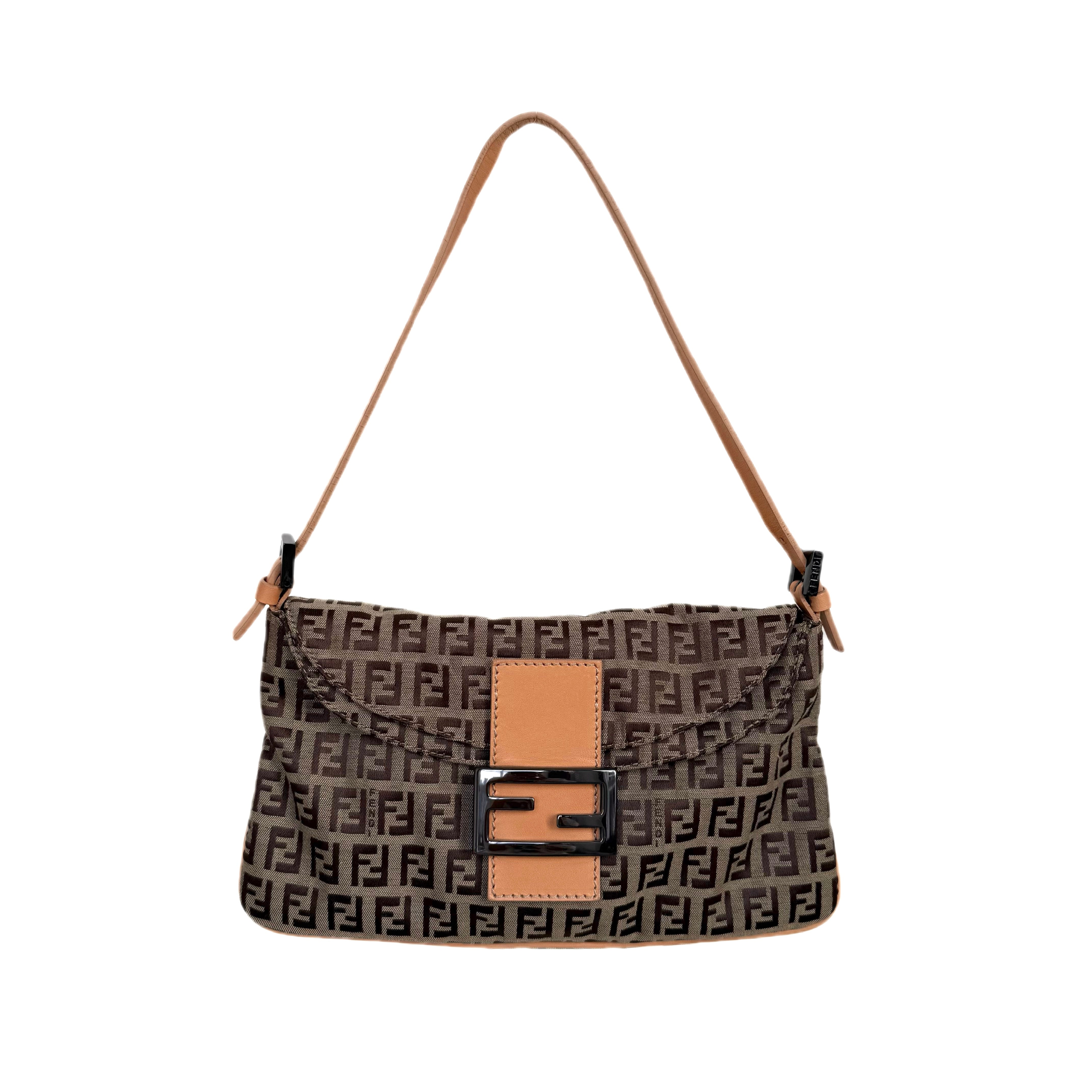 フェンディ ズッキーノ キャンバス バゲット ショルダーバッグ ブラウン&ブラック