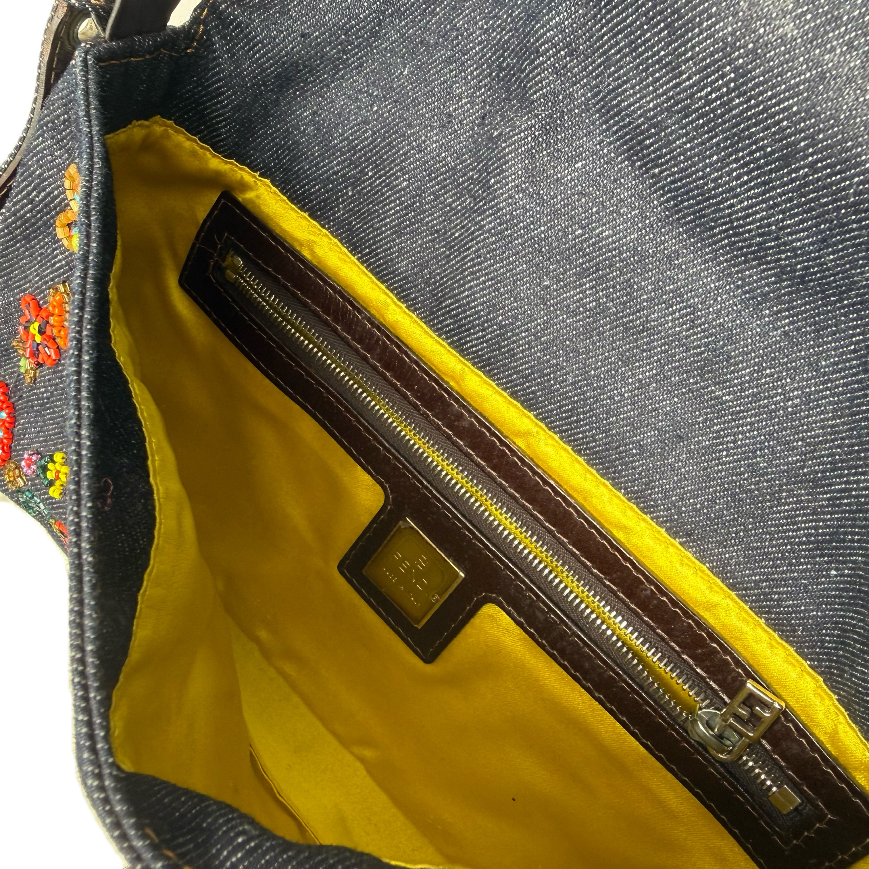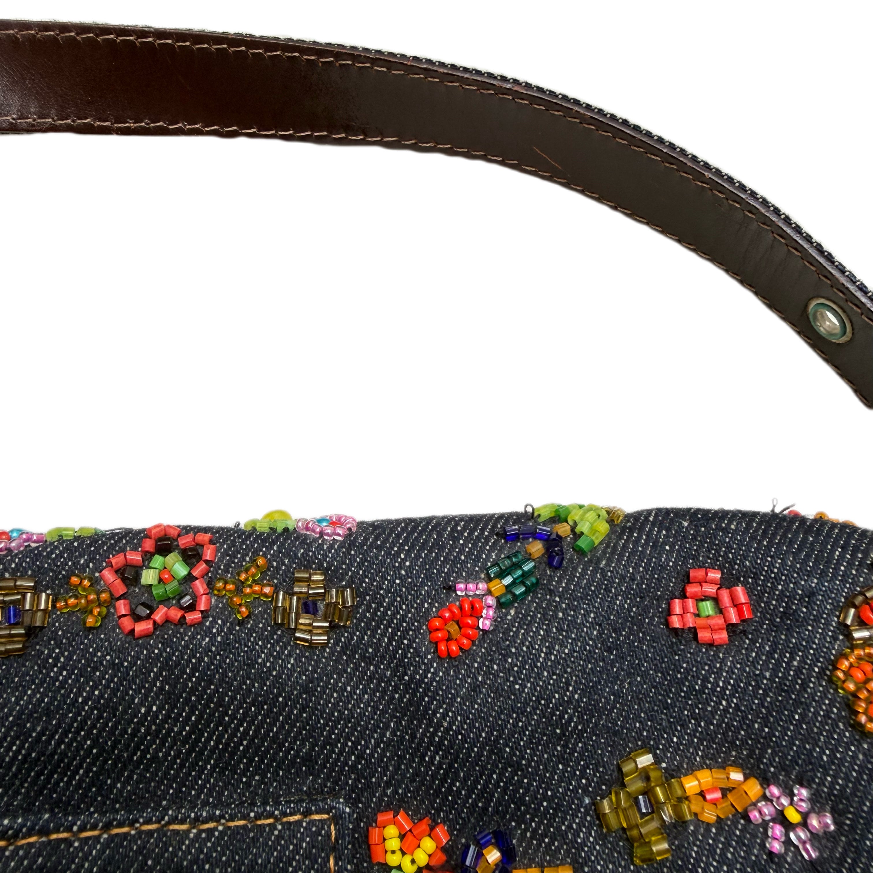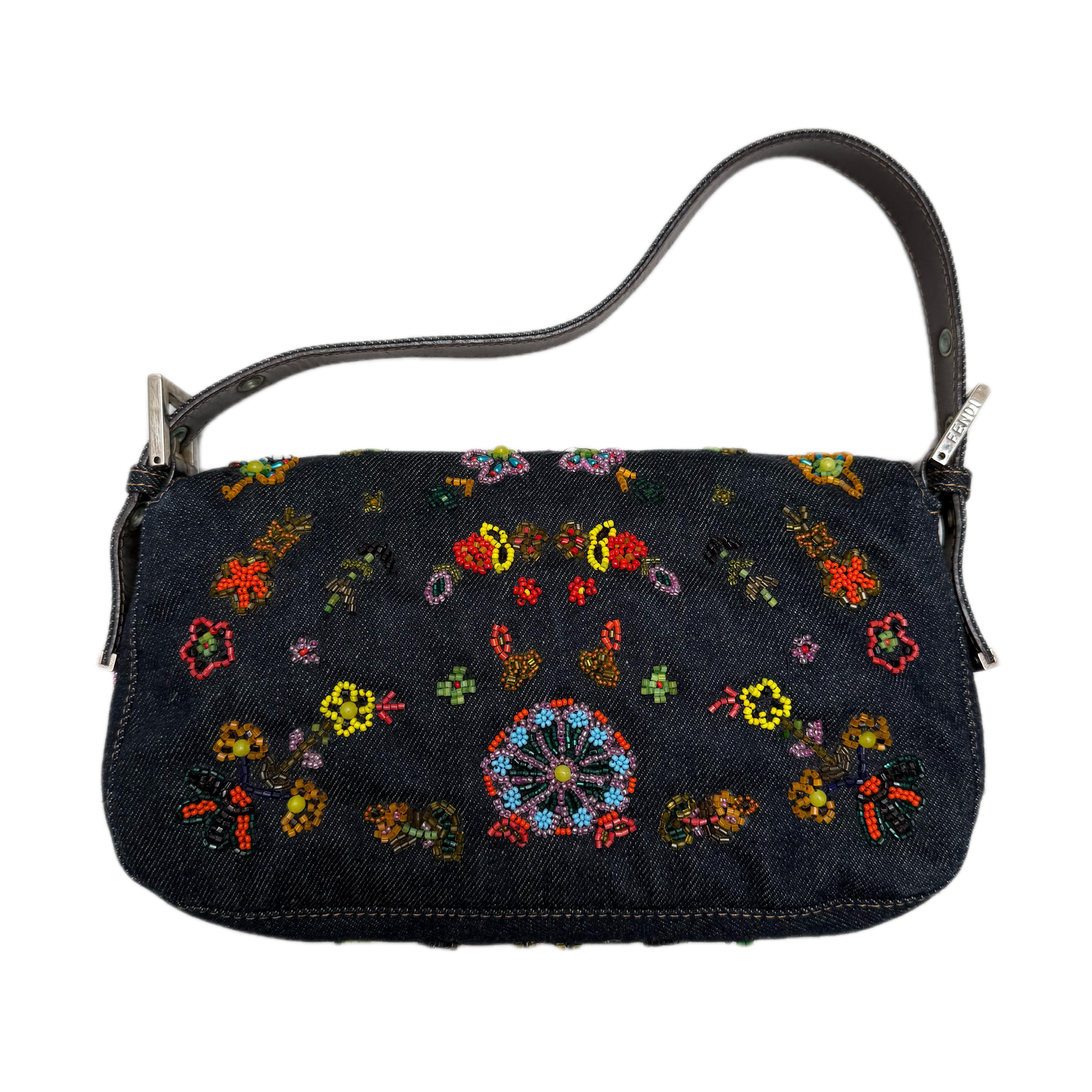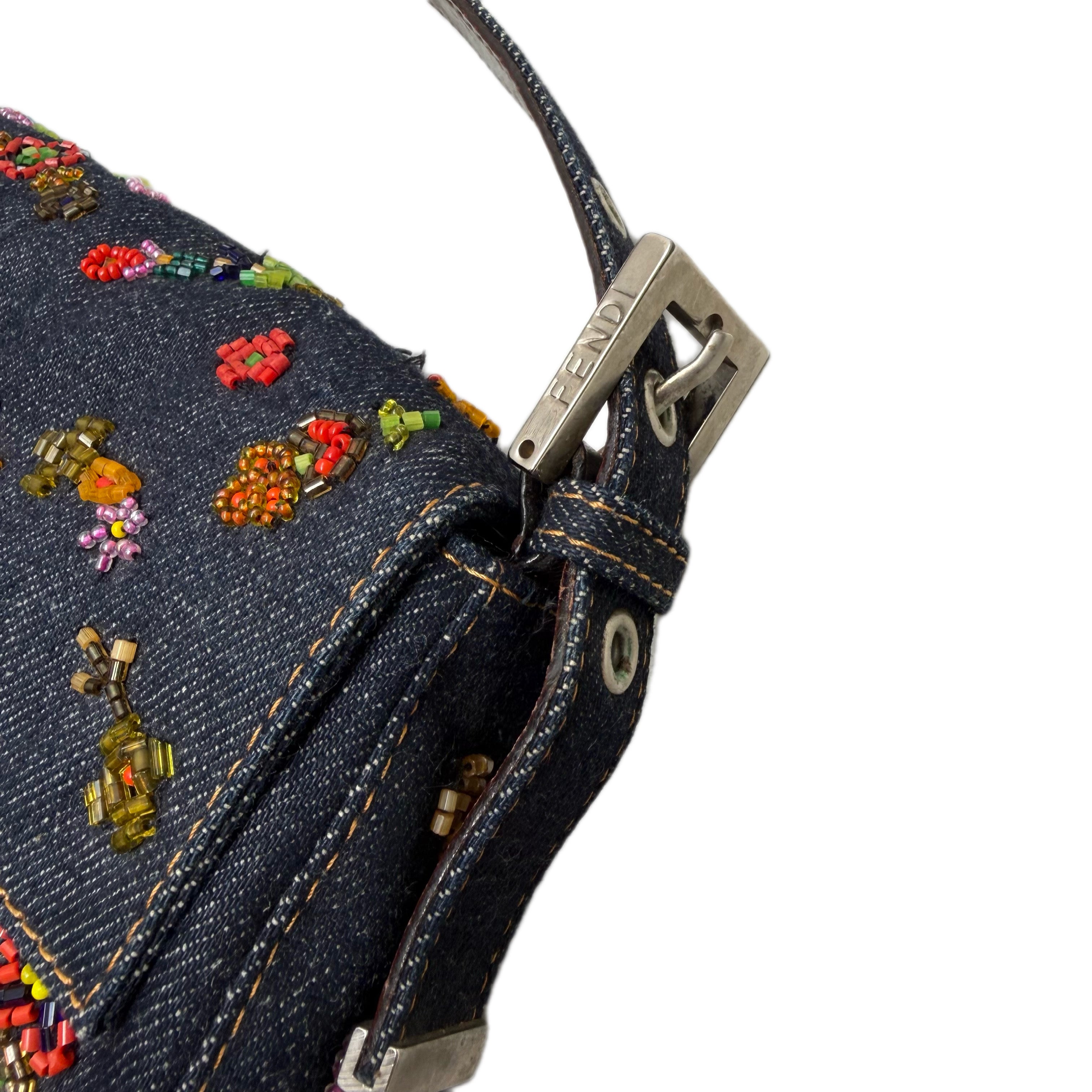 フェンディ デニム フローラル ビーズ バゲットバッグ