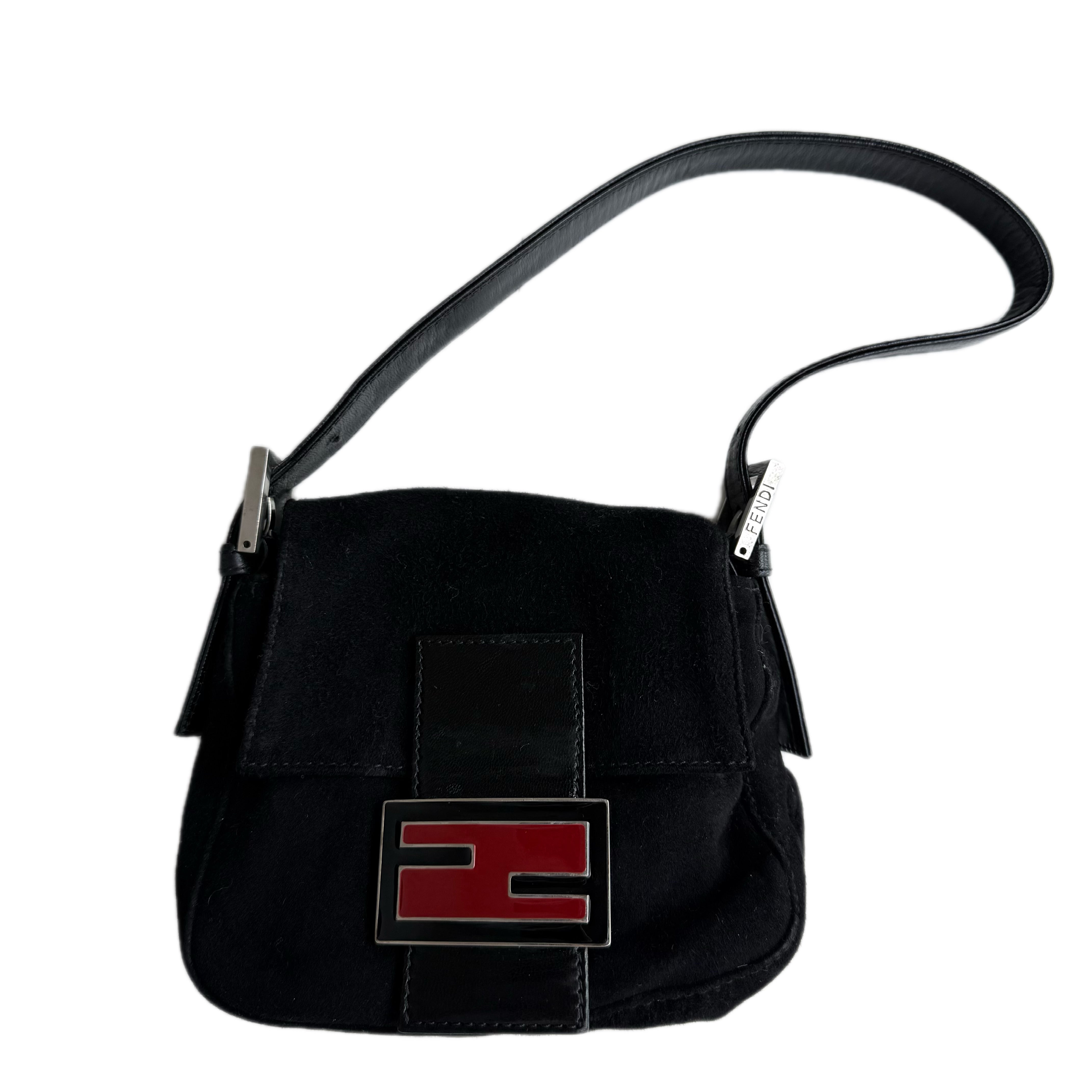 フェンディ バゲット スエード ブラック レッド ショルダーバッグ