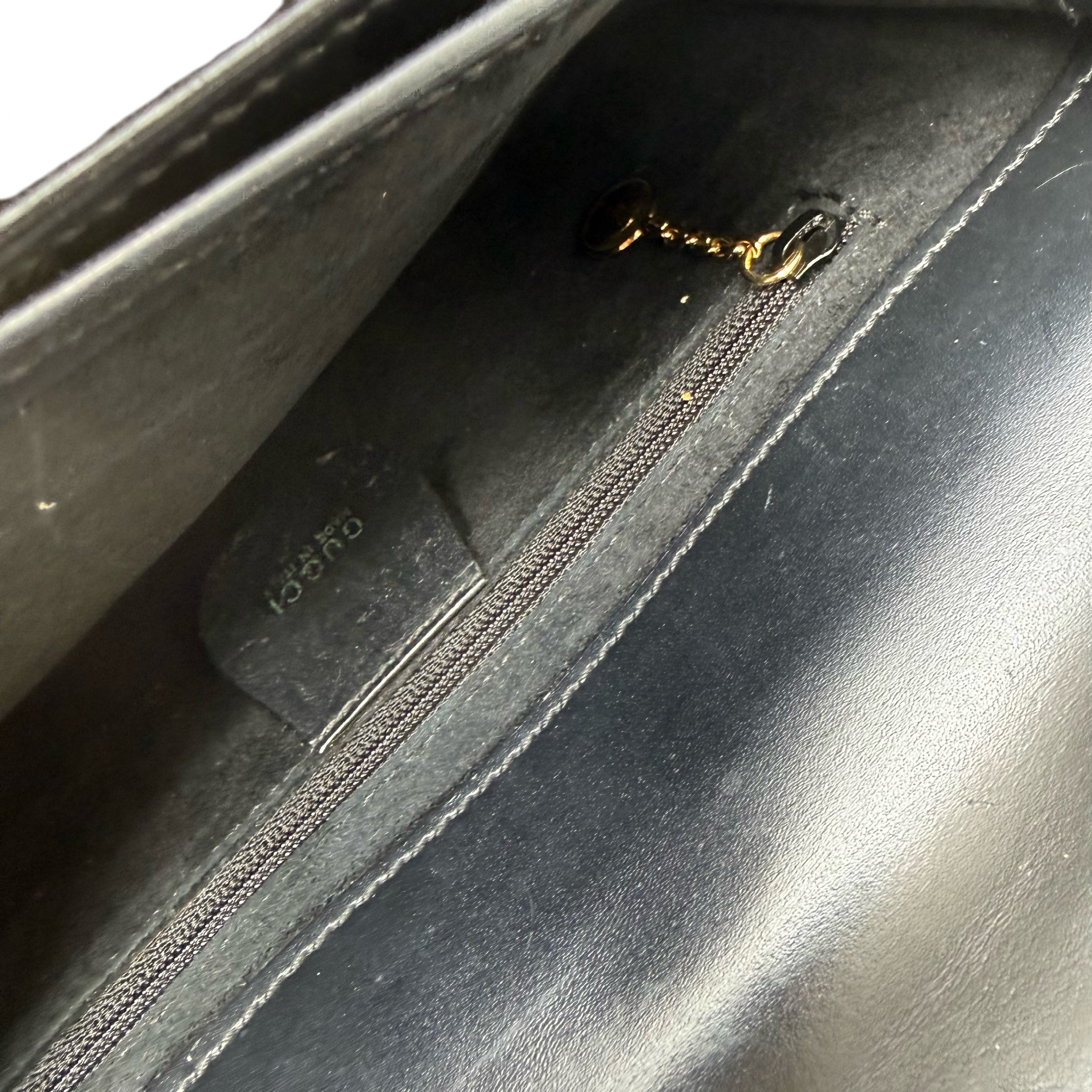 グッチ ブラックレザー ホーボー ショルダーバッグ