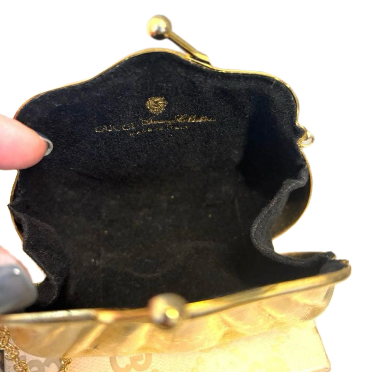 ヴィンテージ グッチ ブラック スエード バッグ(ゴールドトーン フレーム 金具付き)