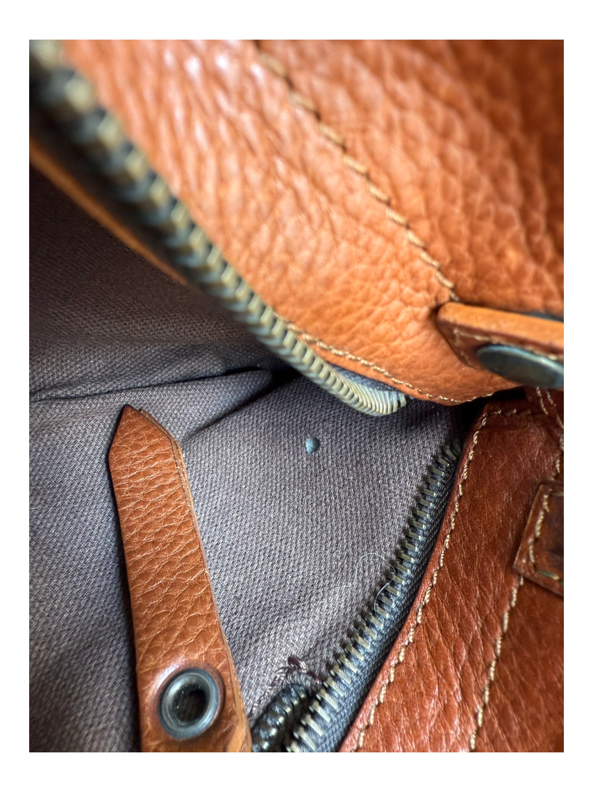 Good condition with some visible signs of use on the exterior, interior, and hardware. Overall well maintained. There is a small hole on the interior; please refer to the last photo for details.