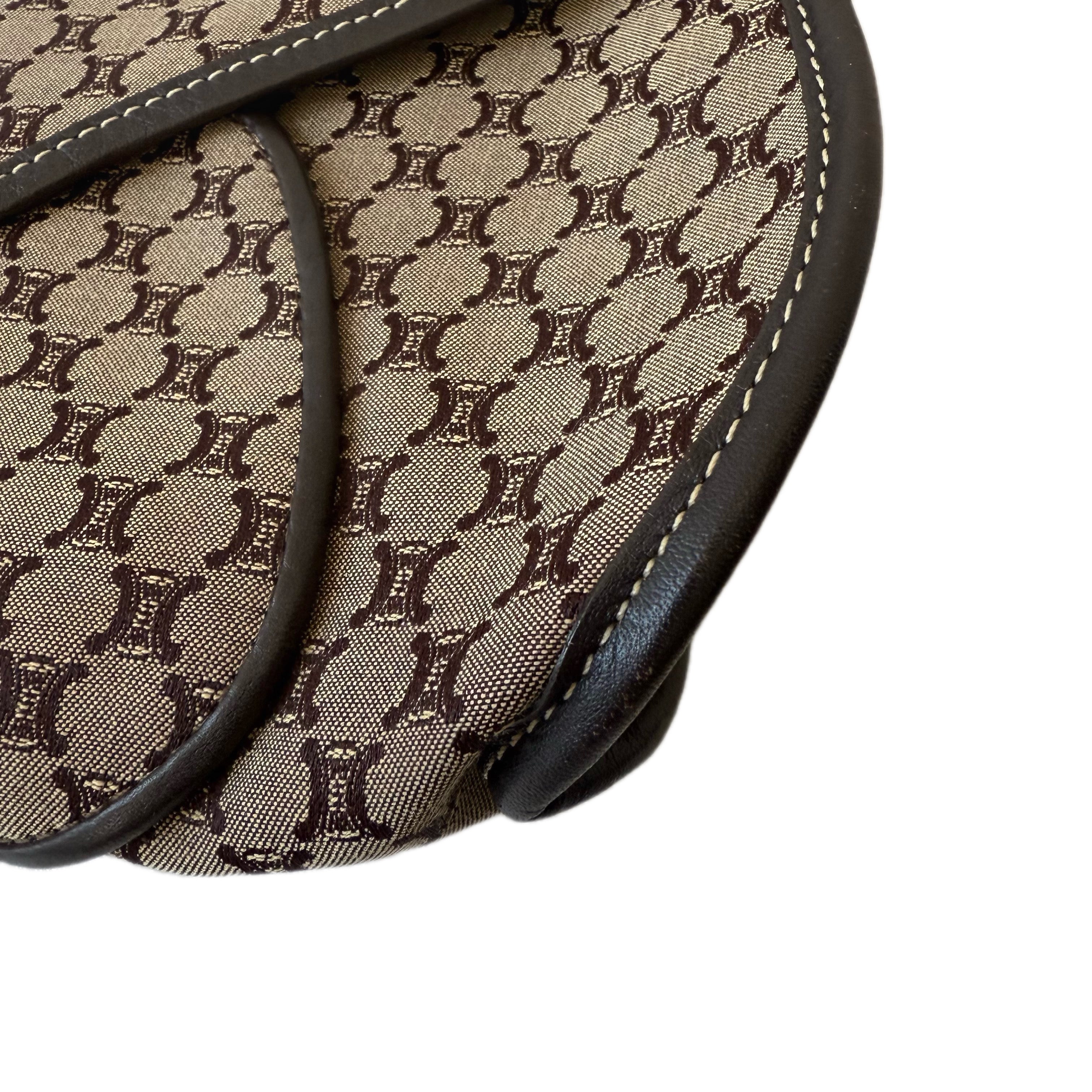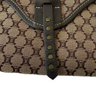 Céline Macadam Canvas Shoulder Bag in Brown with Black Leather Trim