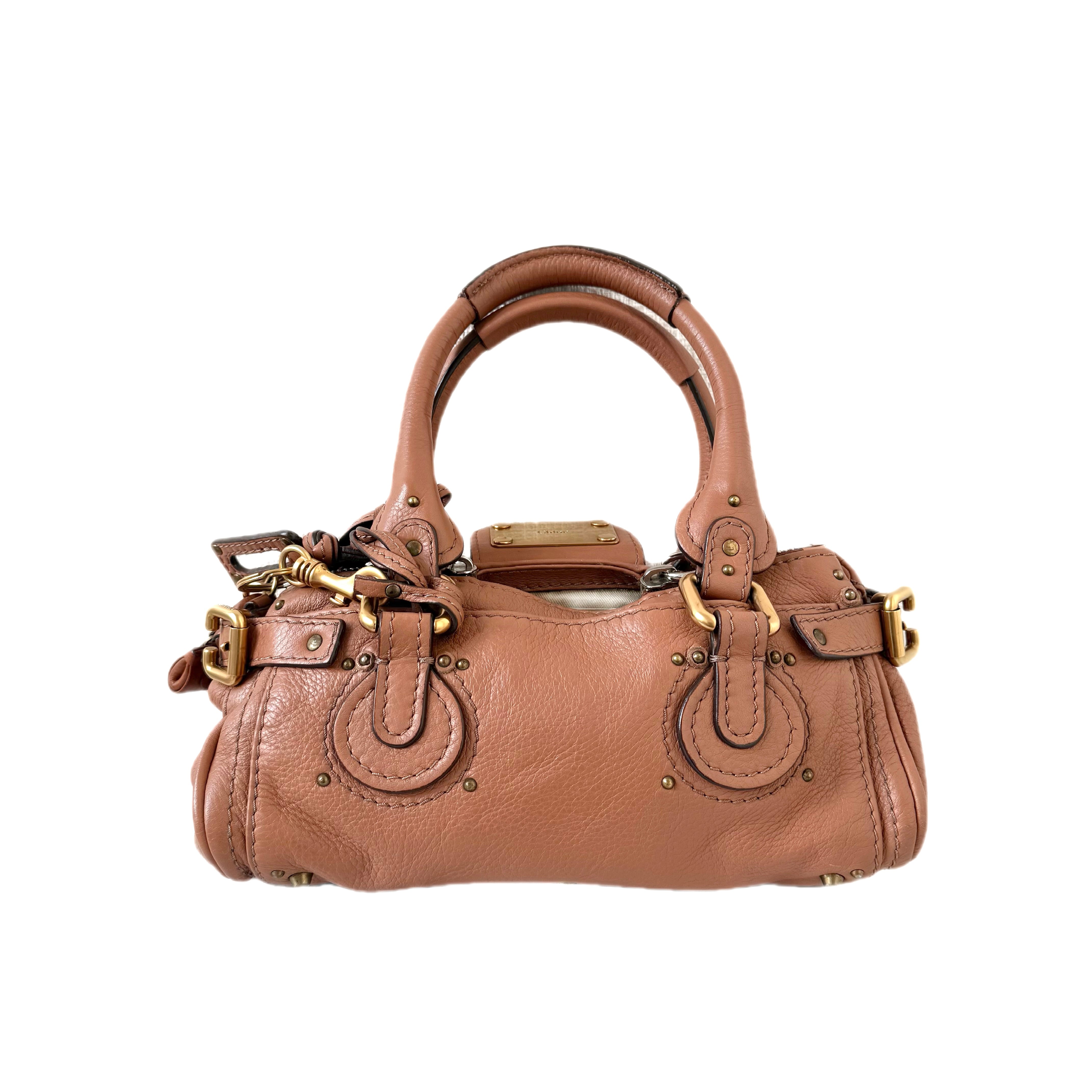 Chloé Paddington Mini leather shoulder bag with two charms. Iconic Y2K silhouette featuring bold hardware and collectible detailing.