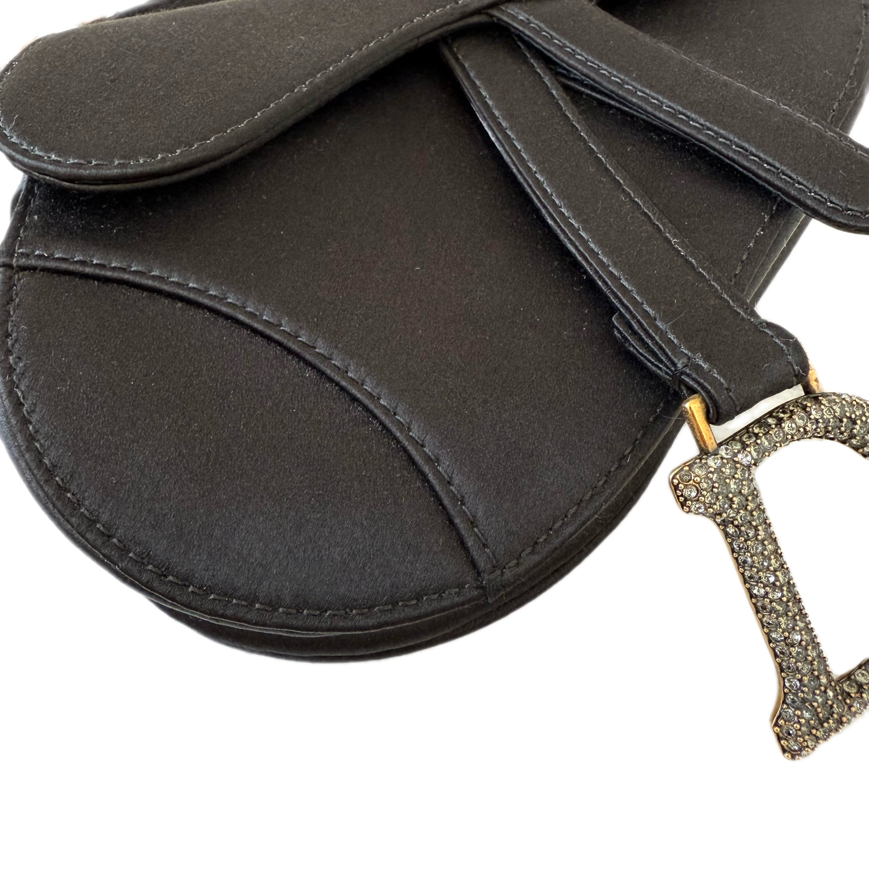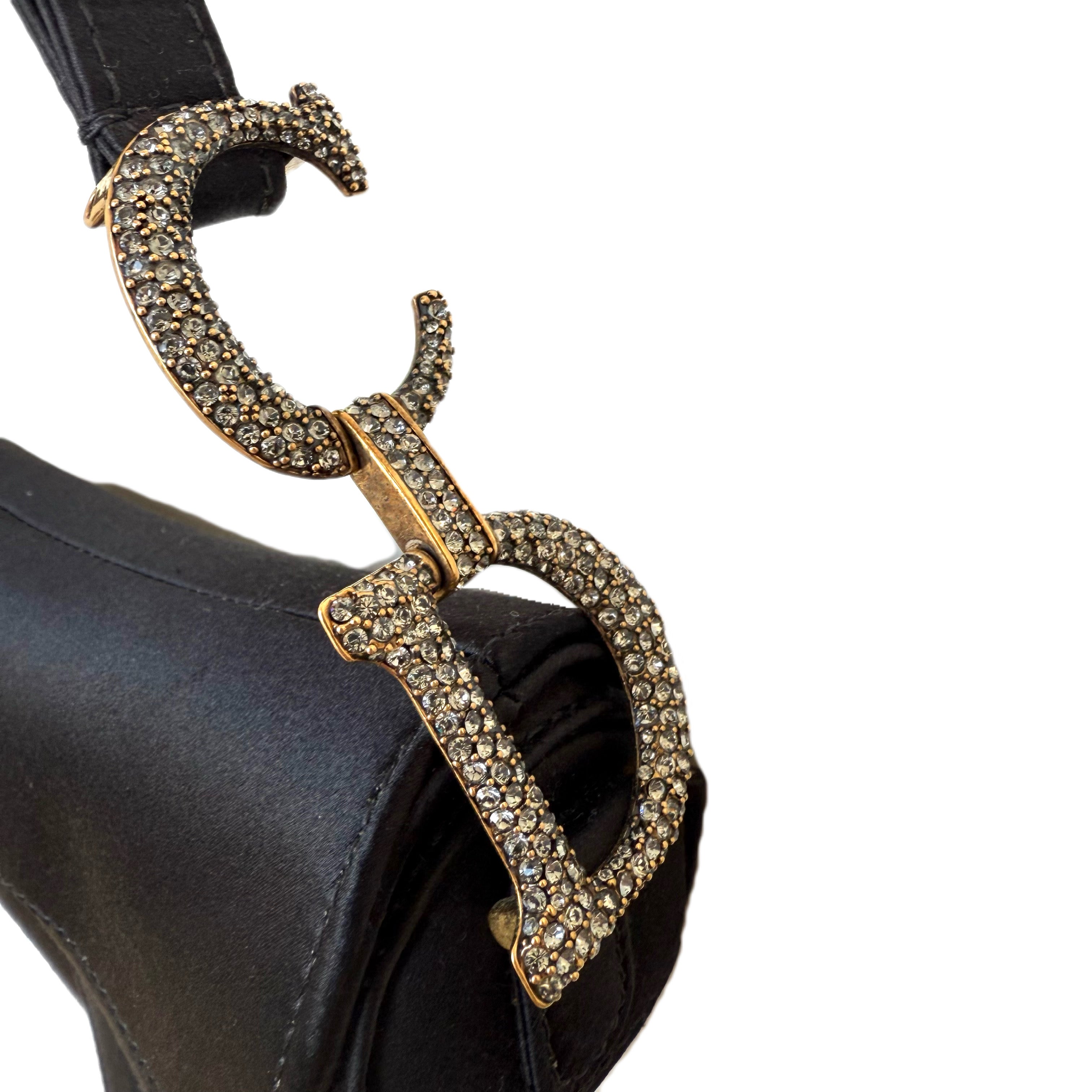 Dior Mini Saddle Bag in Satin with Rhinestone Embellishment