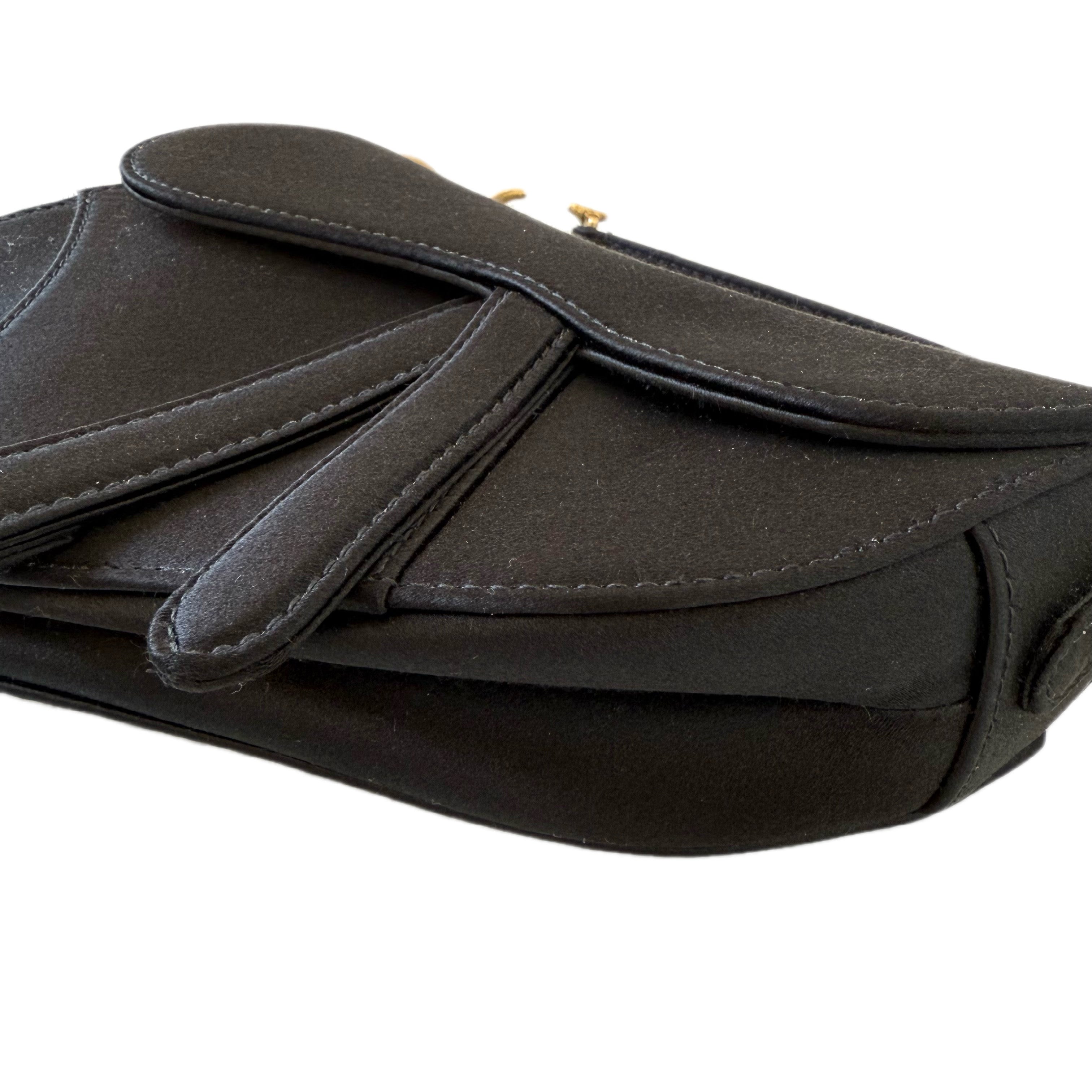 Dior Mini Saddle Bag crafted in satin with refined rhinestone detailing. A rare statement piece highlighting Dior’s iconic Saddle silhouette and timeless elegance.